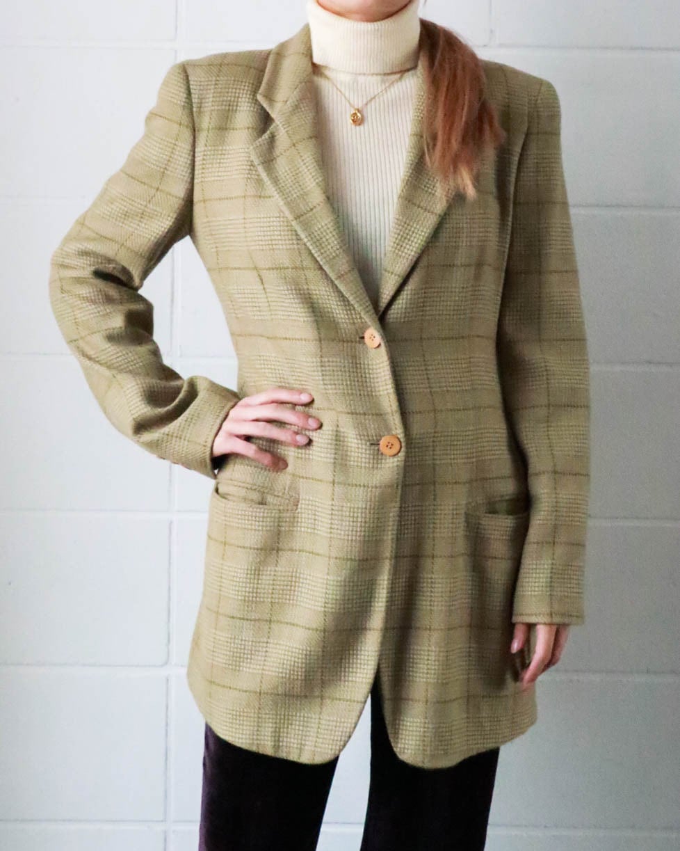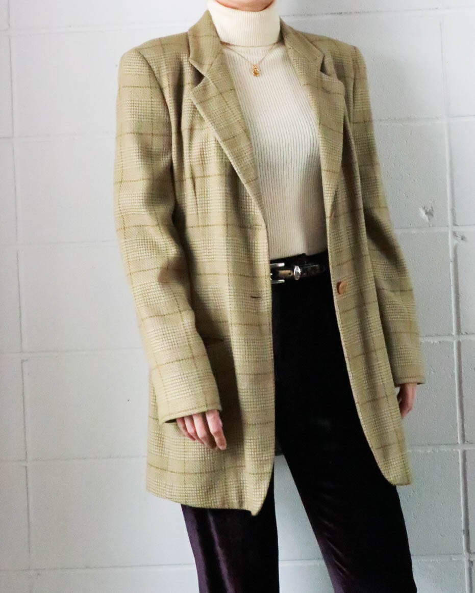 モード&エレガントスタイルにかかせないグレンチェックジャケット。
