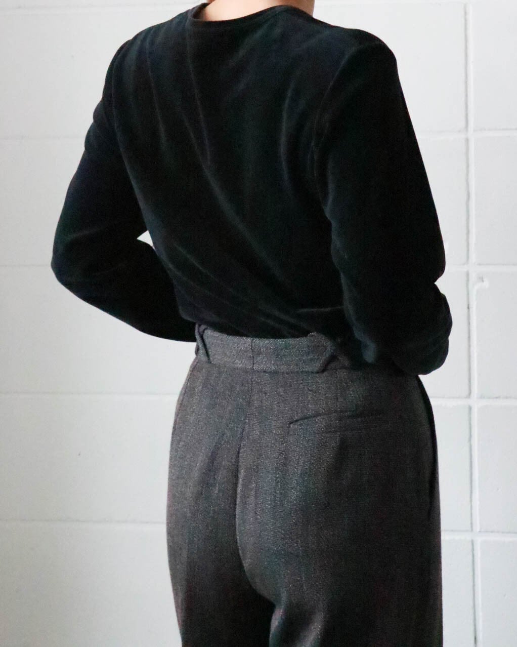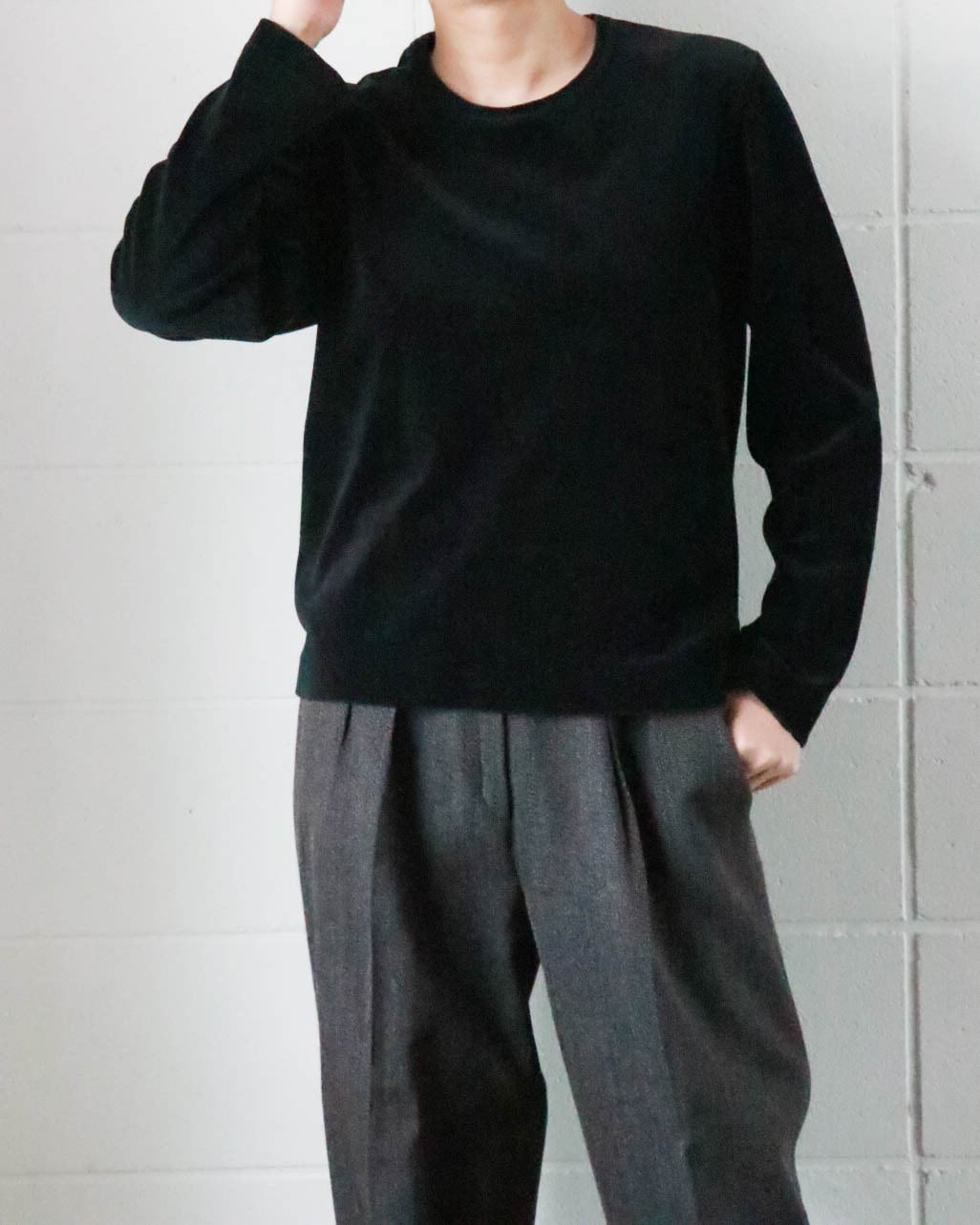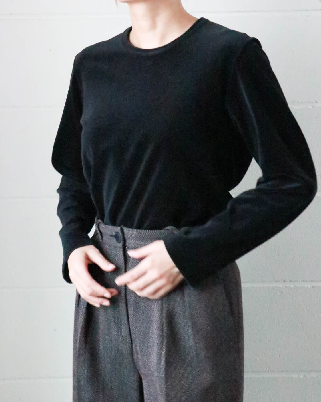 80sのギャルソンのベロアトップスが入荷。シンプルなクルーネックのトップスで、万能なベーシックアイテムです。