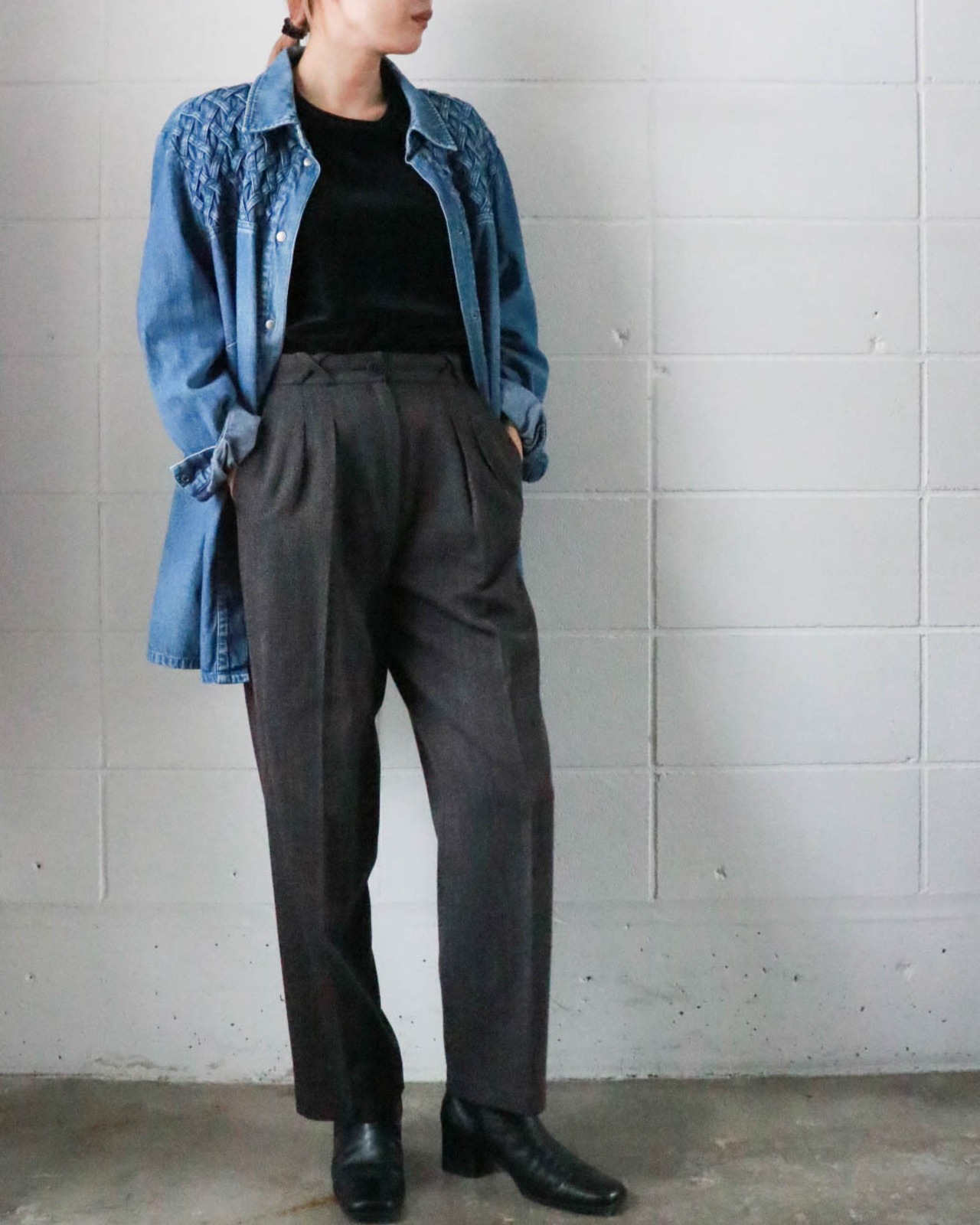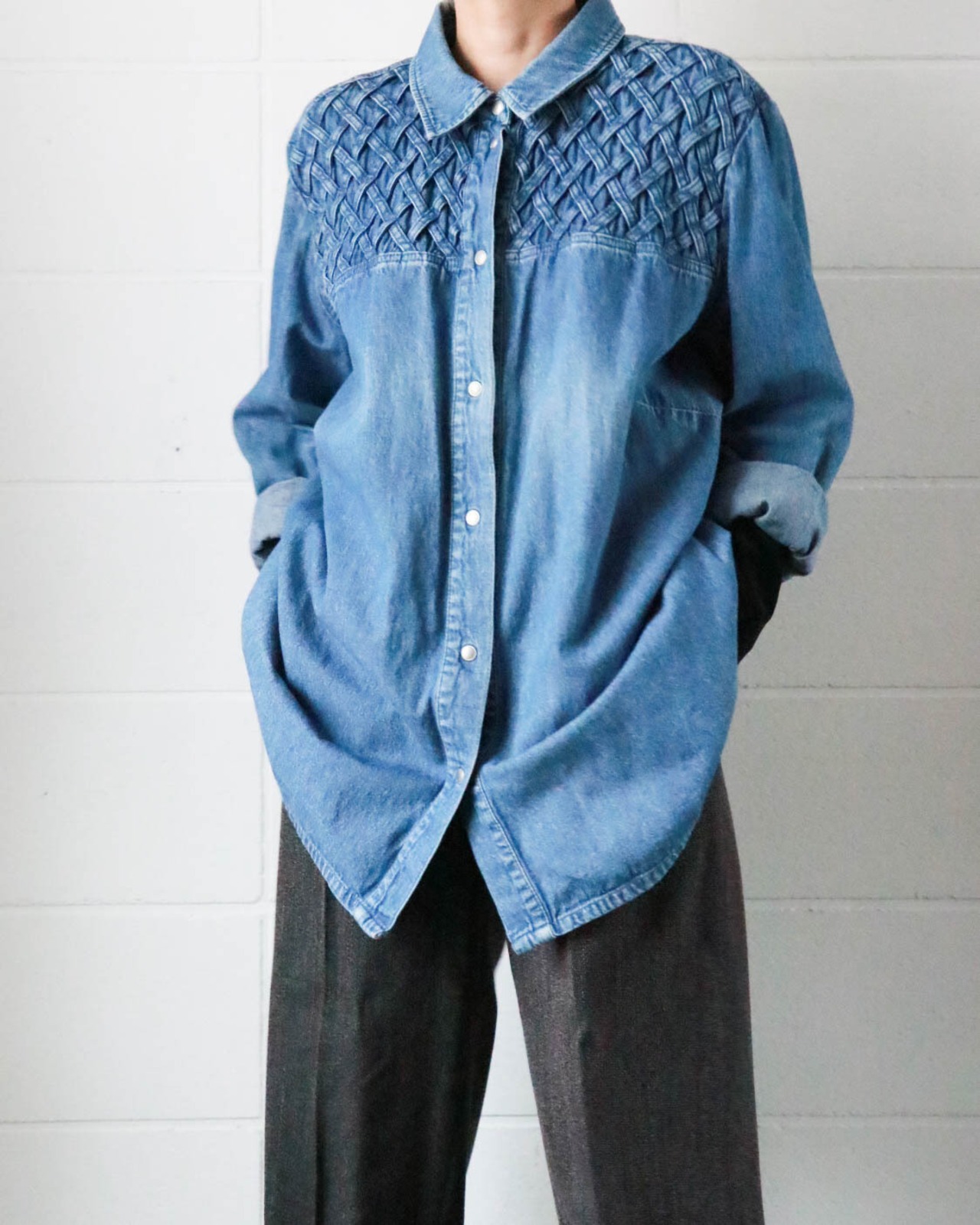 繊細に編み込まれたデニムの表情が存在感を放つデニムシャツが入荷。程よくゆとりのあるシルエットが抜け感があり羽織としても、デニムシャツを主役にチュニックっぽくしても◎幅広いコーディネートに馴染むデニムシャツもヴィンテージで個性を出して気分を上げたい。