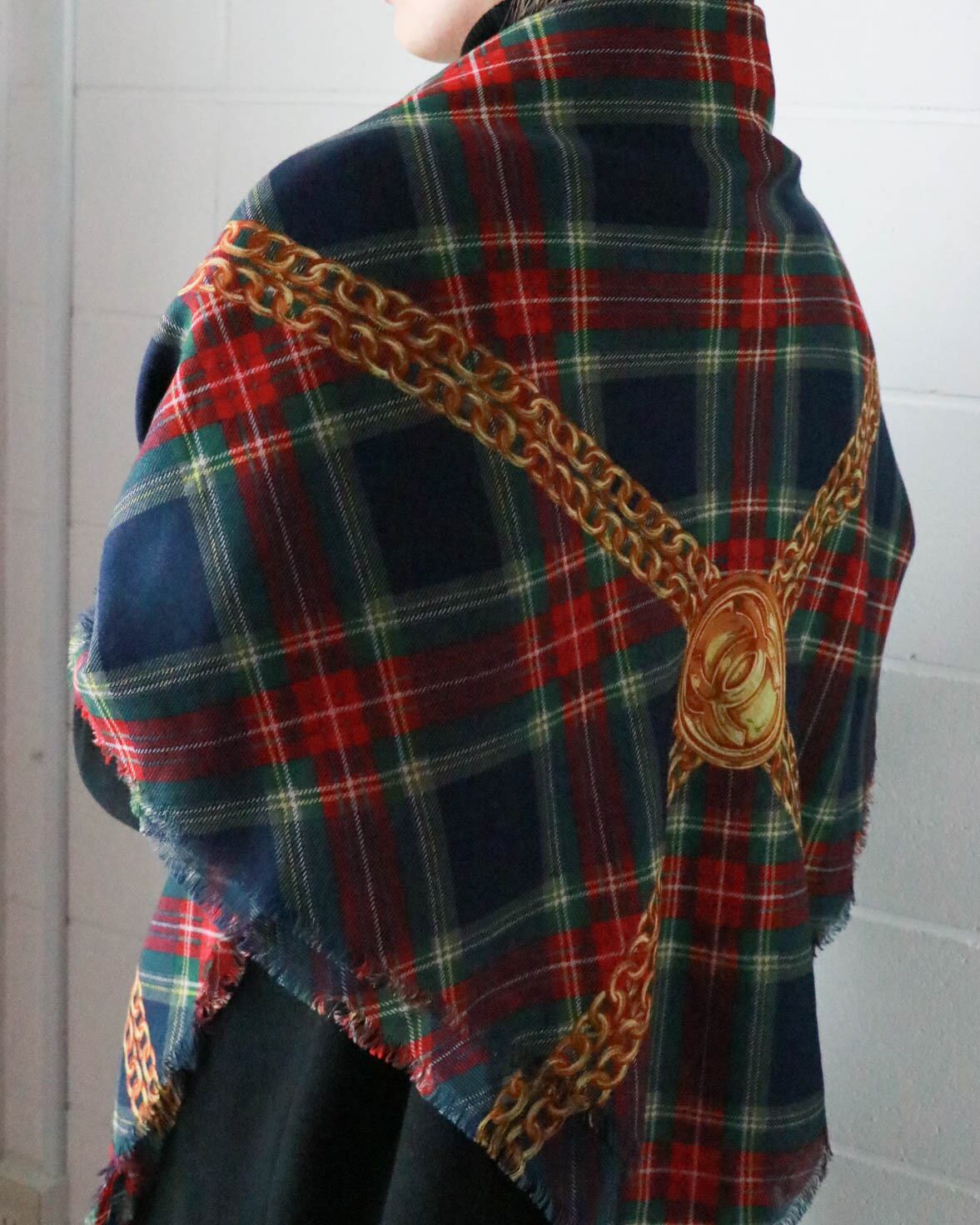 CHANEL cashmere × silk check stall