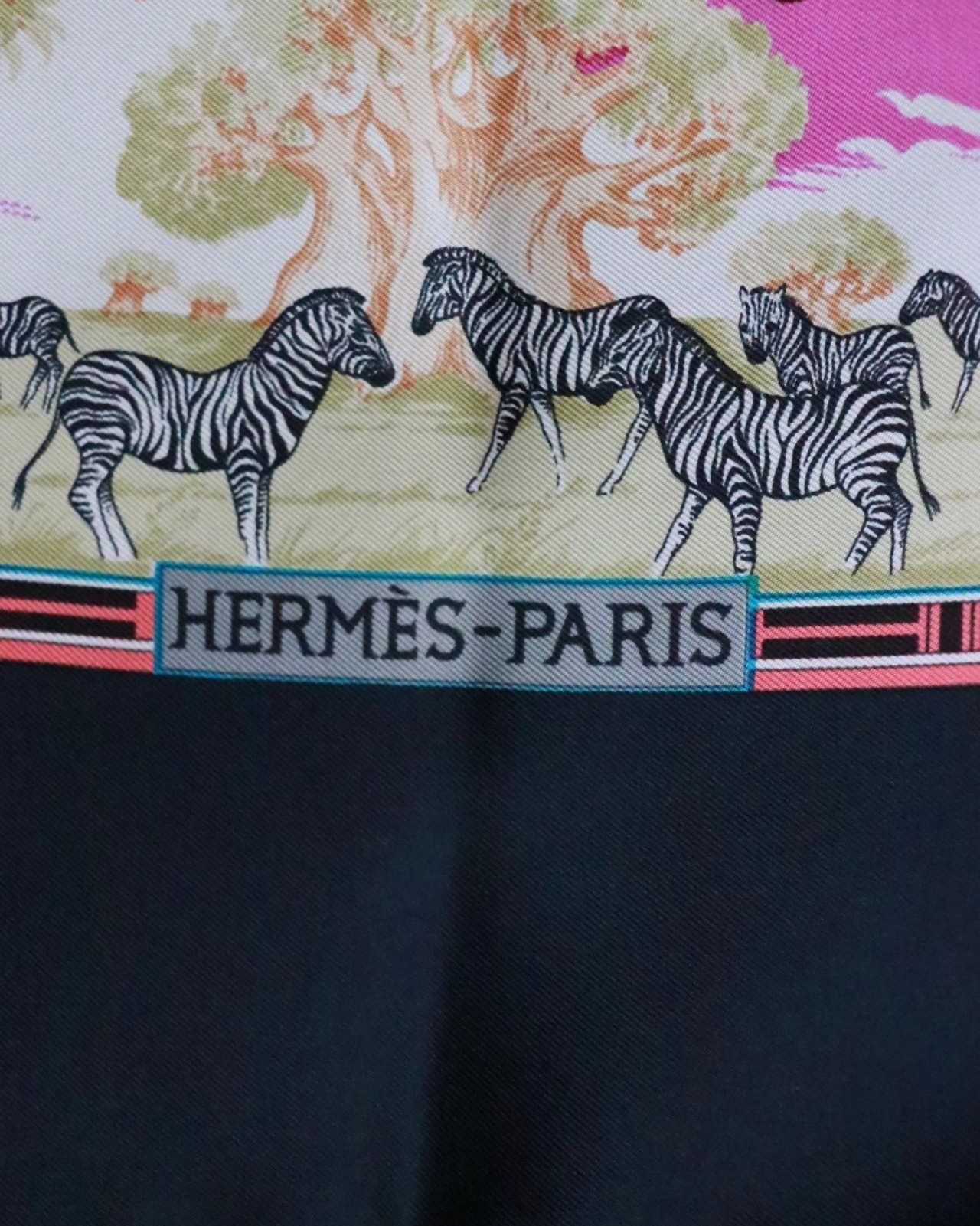 艶やかなシルクに描かれた、鮮やかなサファリモチーフが印象的なエルメスのスカーフが入荷。ピンクやターコイズの彩りが顔まわりを華やかにしてくれ、モノトーンにも映える一点です。