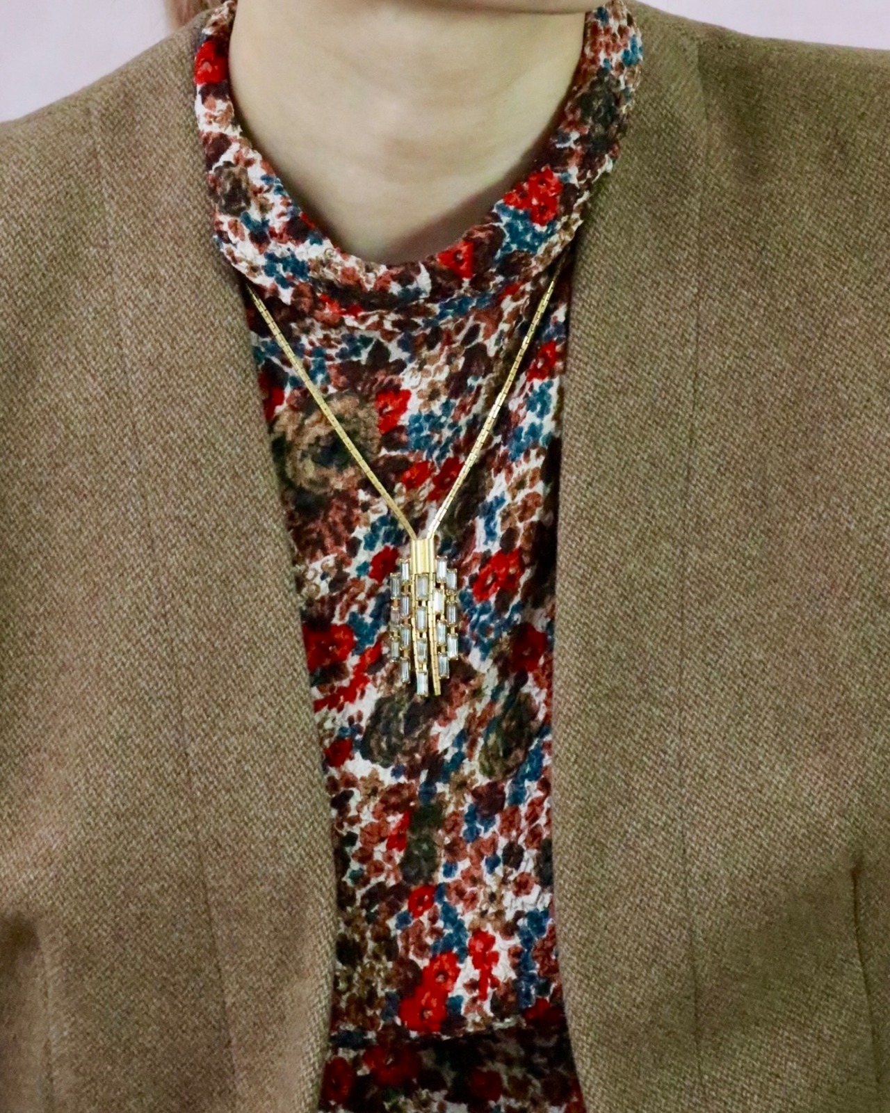 ラインストーンのフリンジデザインがかわいいネックレス。ヴィンテージならではの個性と主張のあるアイテムはアクセサリーならとりれやすい。