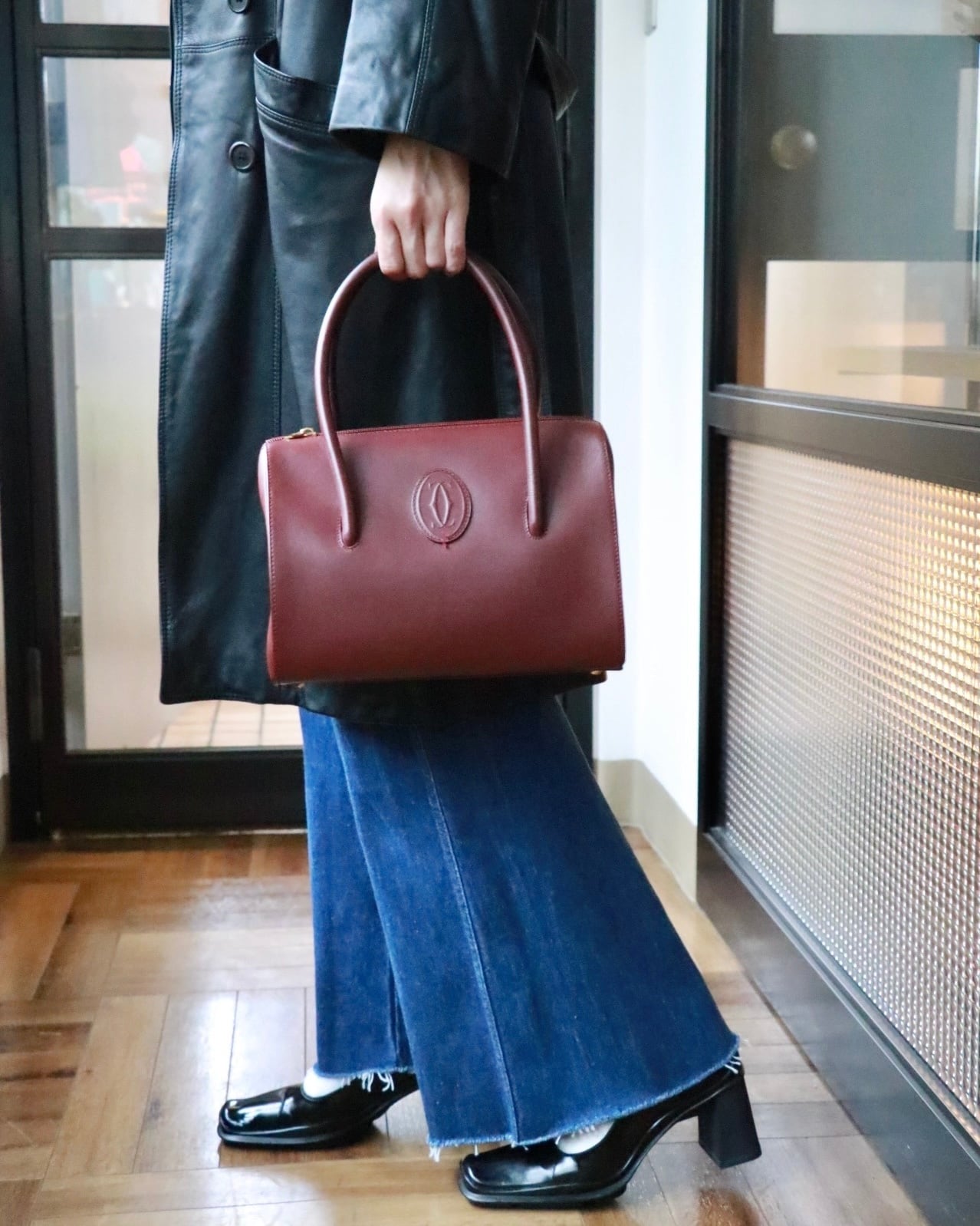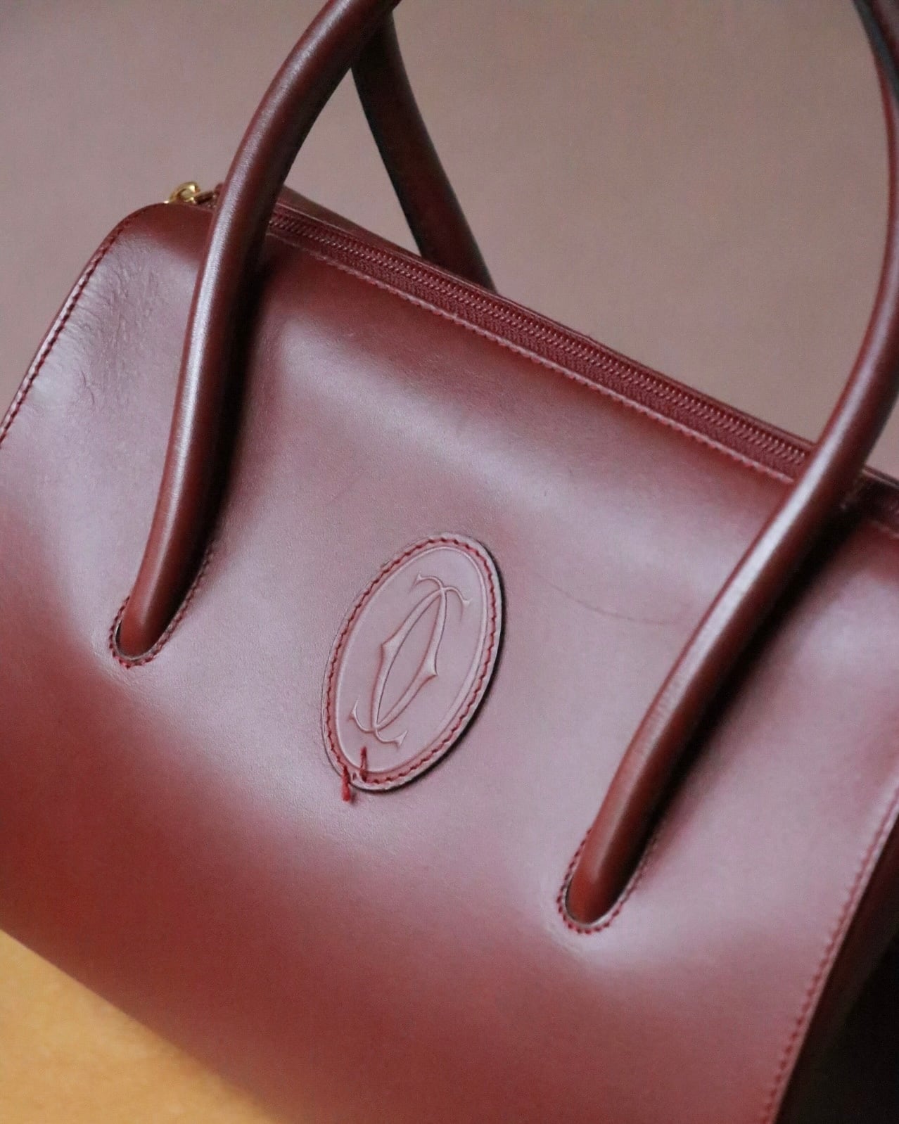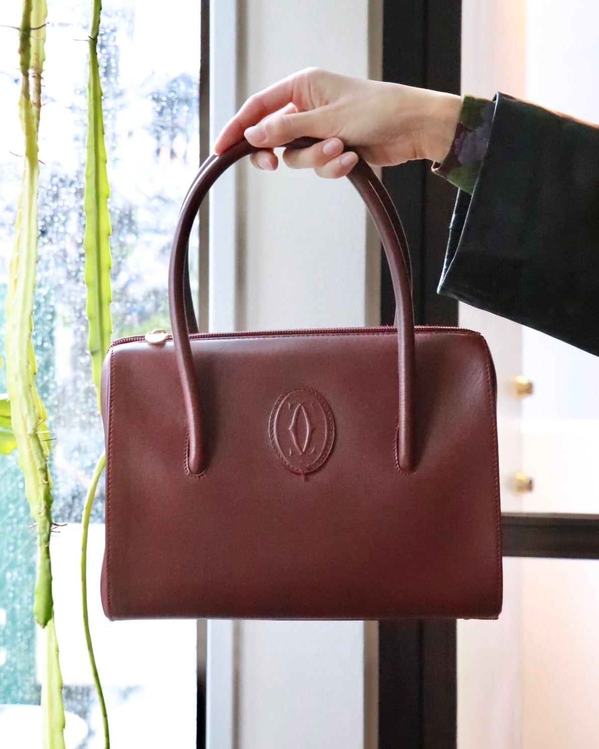 1995年製カルティエバッグ。上品なルックスにボストン型の申し分のない容量。
