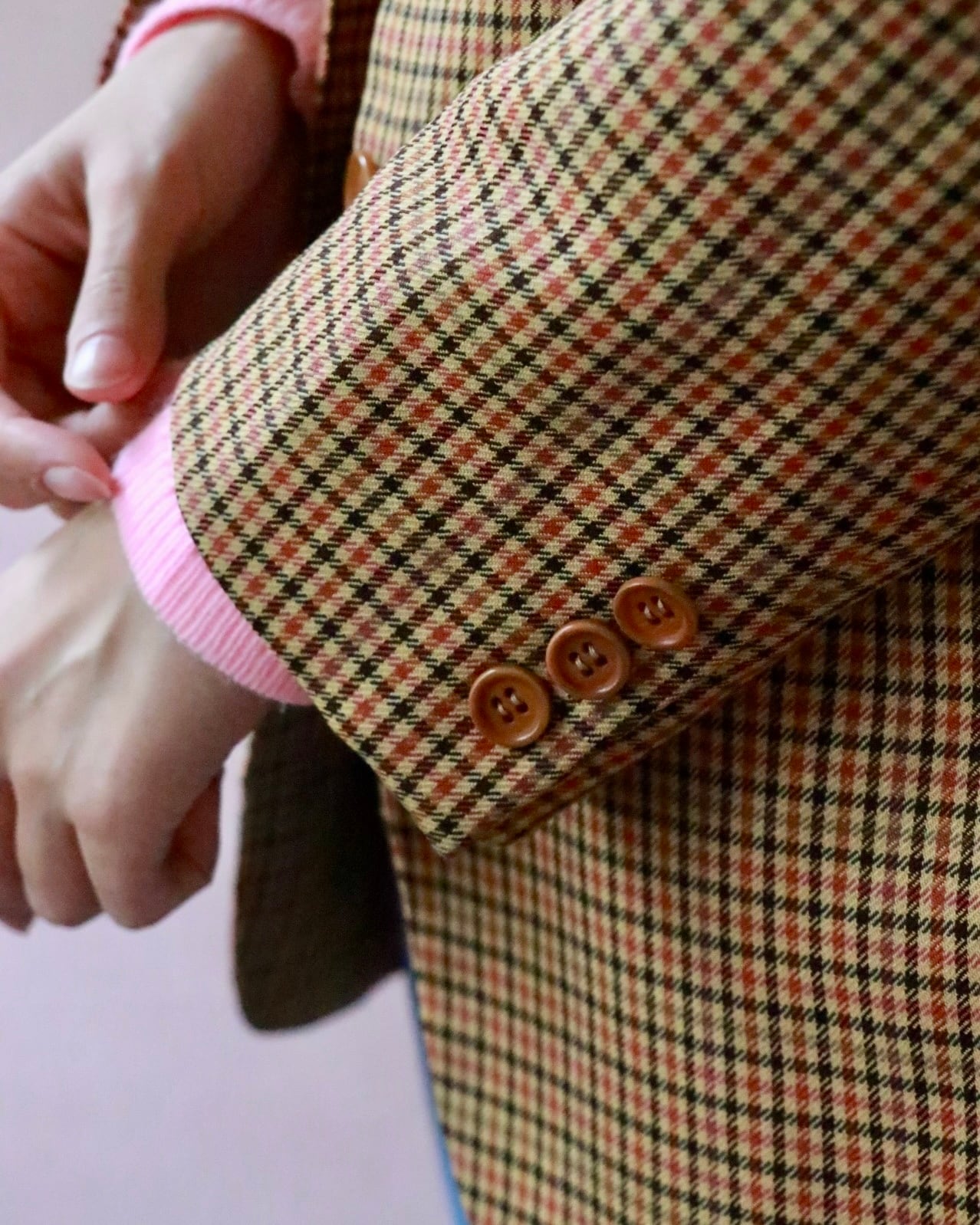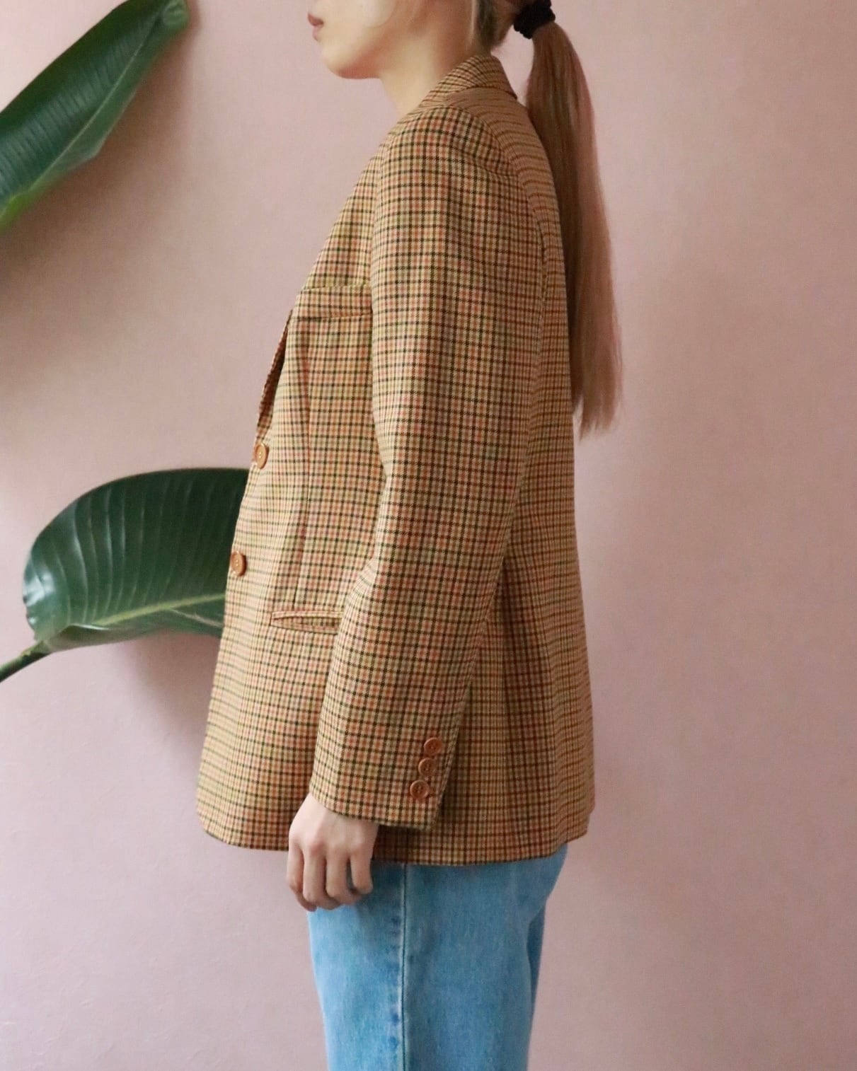 チェック柄でかっちりとした形がエレガントさを演出し、コーディネートを格上げしてくれる。肌寒い季節に活躍してくれる重すぎないカラーと上質なウール素材も丁度良い。