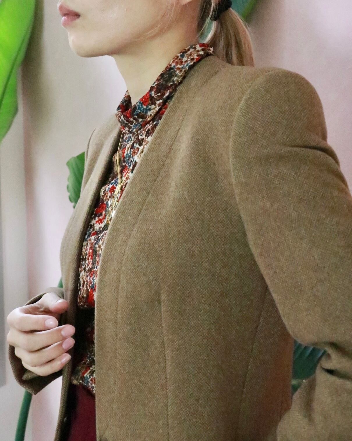 ハンサムさとフェミニンさが入り混じった着る人によって表情を変える一着です。