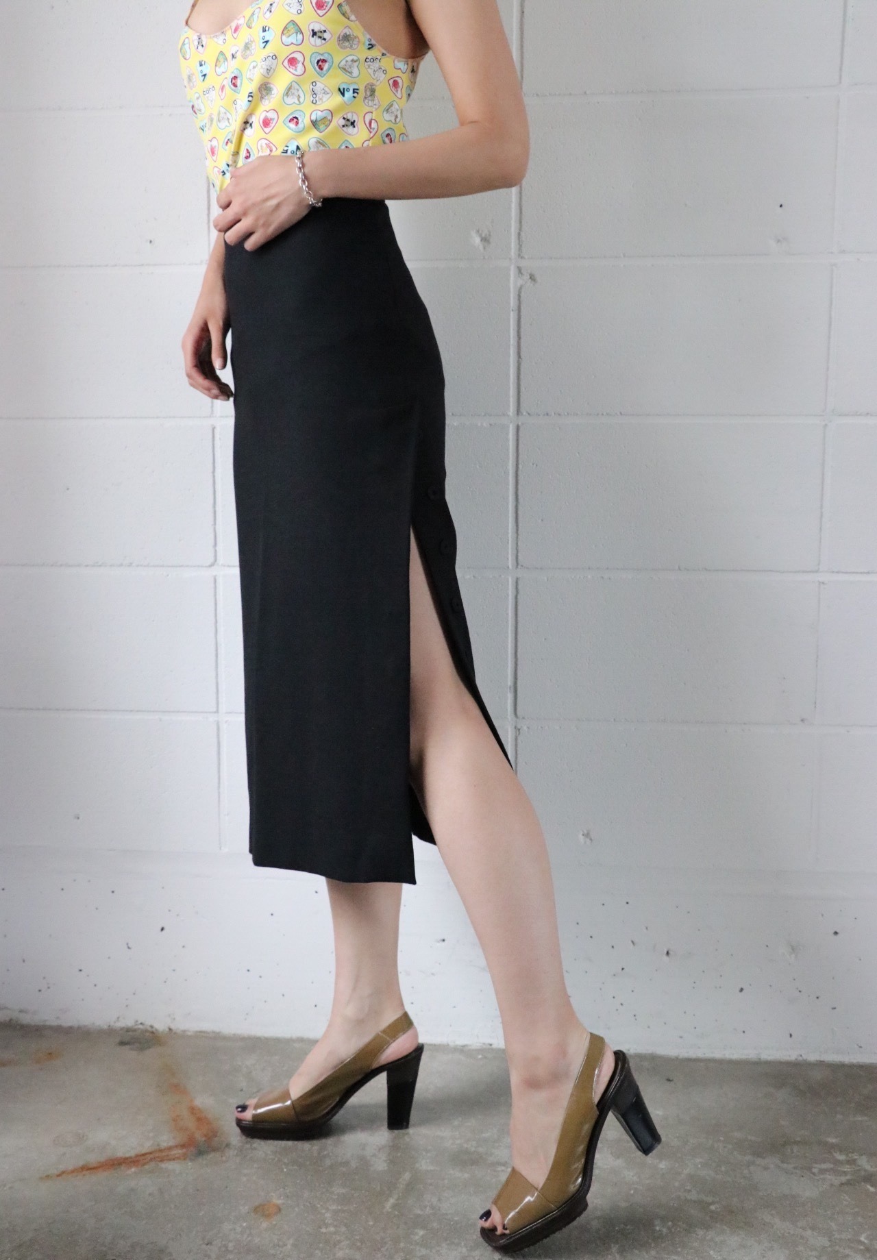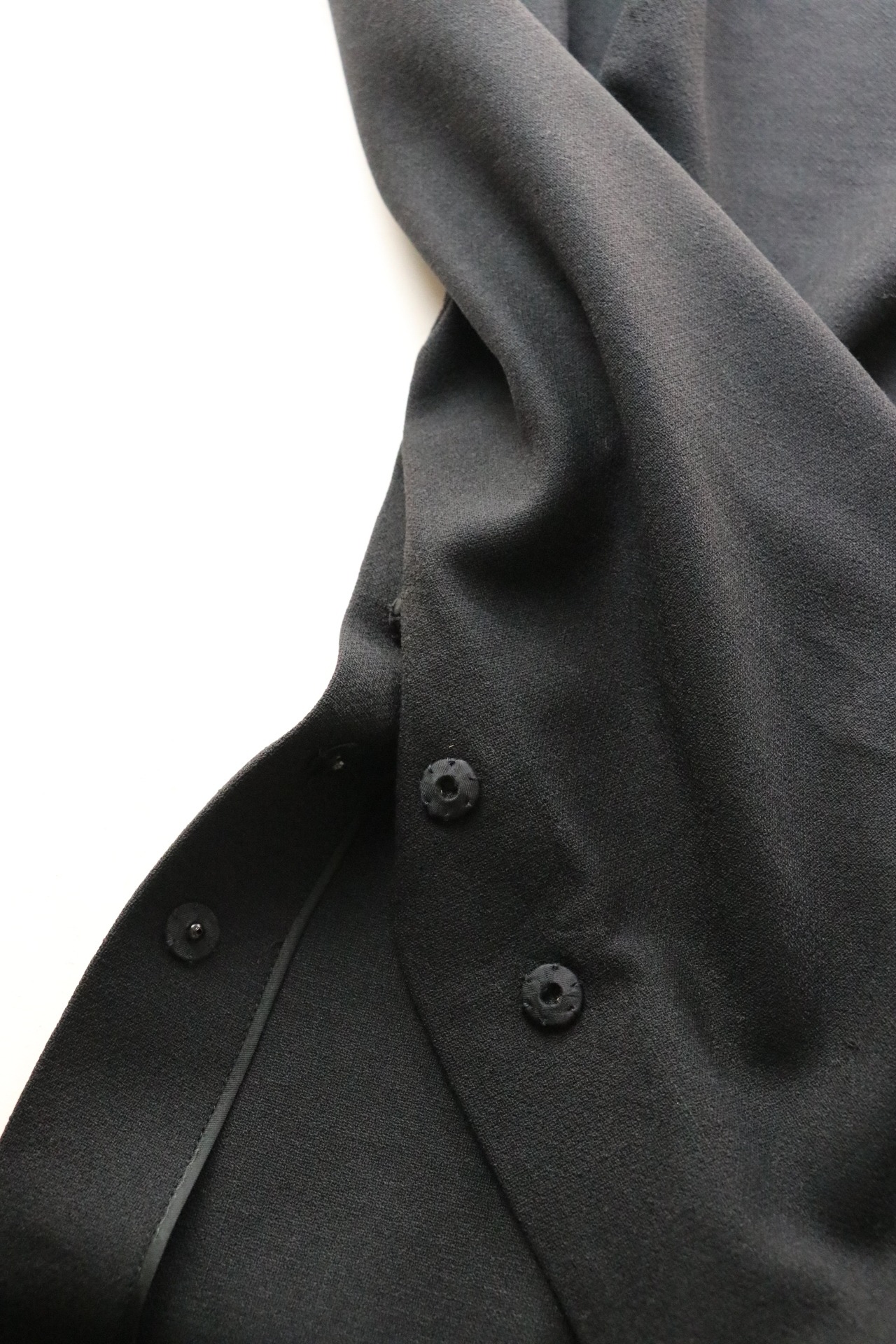 スリットはボタンが6個施され浅くも深くも