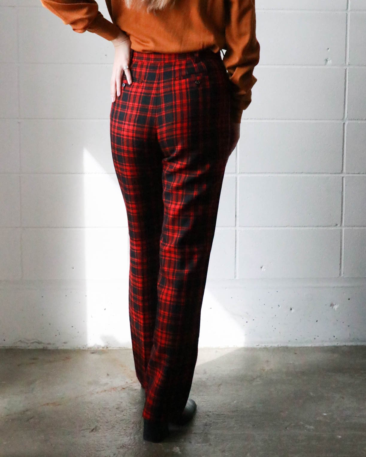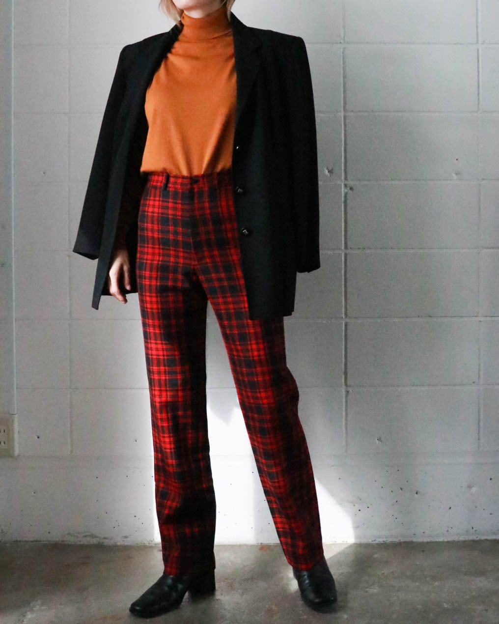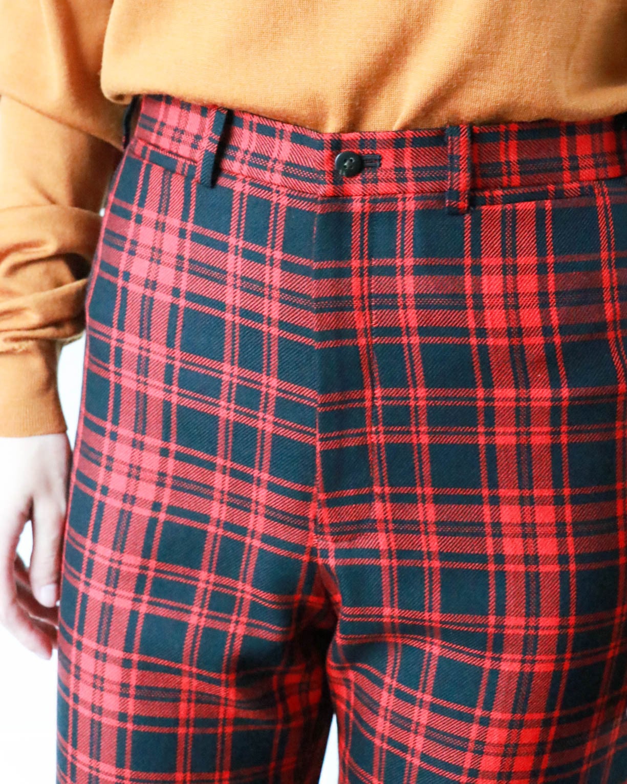 ラルフローレンのクラシックなレッドチェックパンツ。美しいストレートシルエットでスタイリングの主役になる一本。普段のコーデにアクセントを加えたい方におすすです。