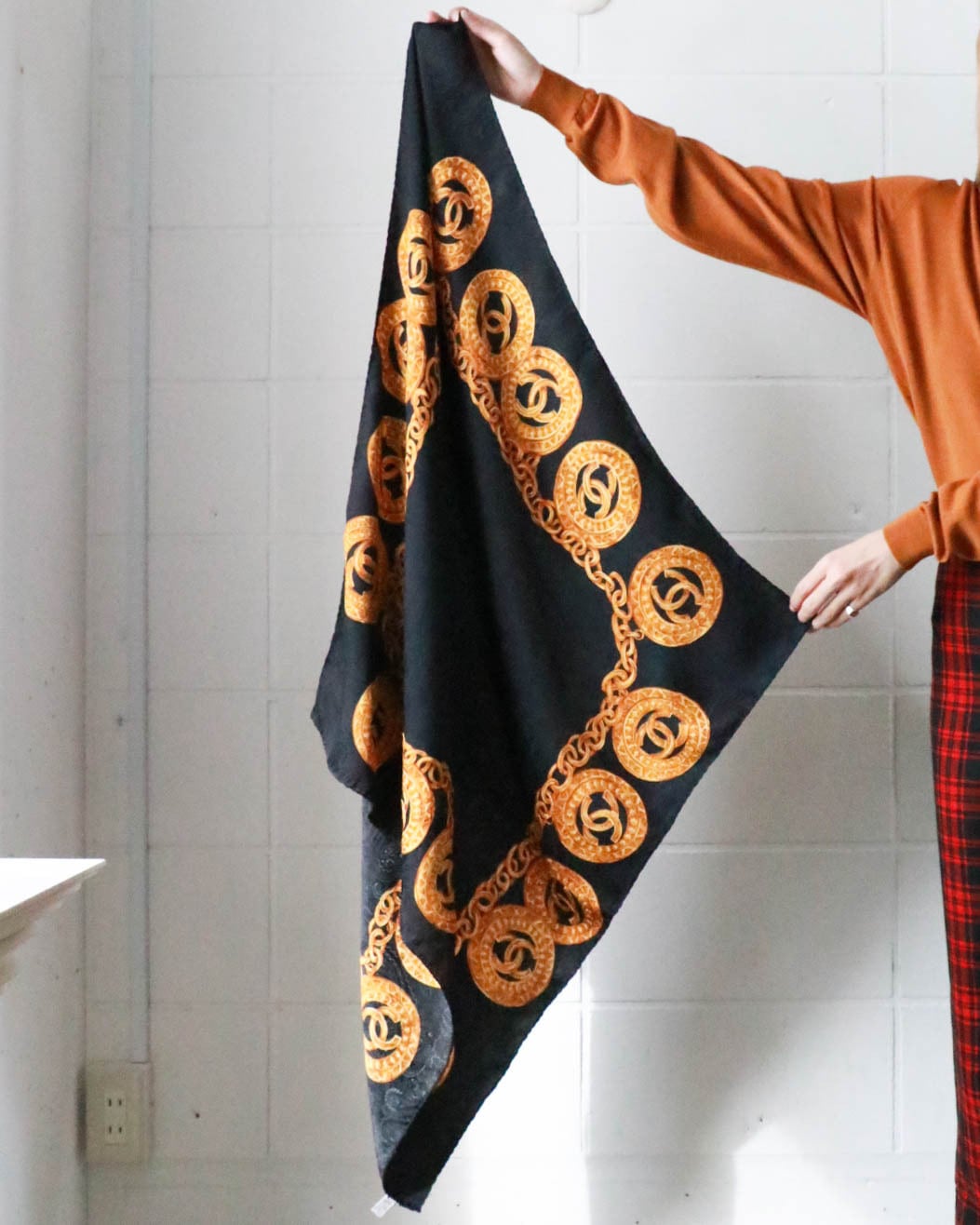 柔らかくしなやかな上質シルクを使用したシャネルのスカーフ。