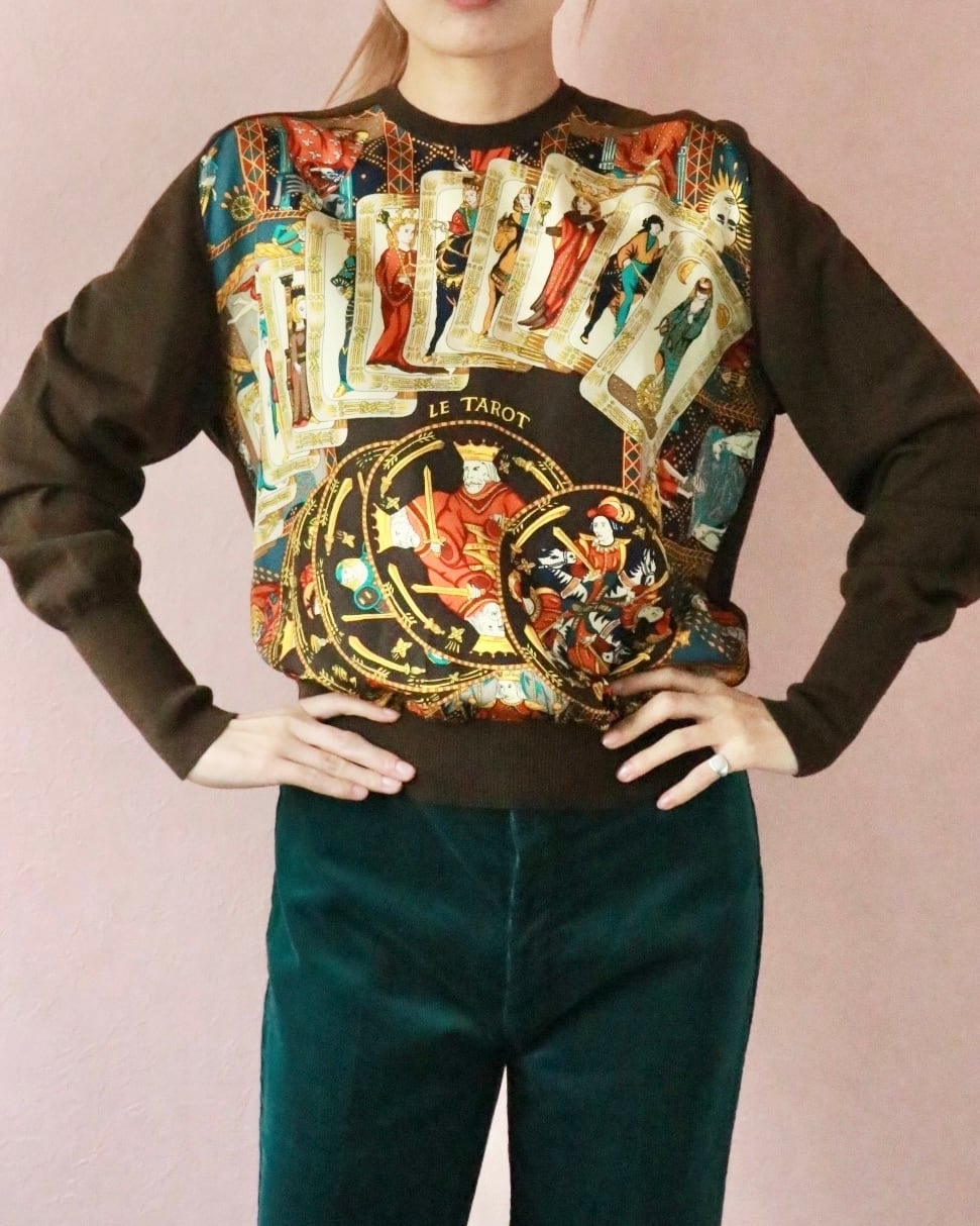 前身頃がシルク素材でウールに囲まれた独特のデザインはエルメスならでは。