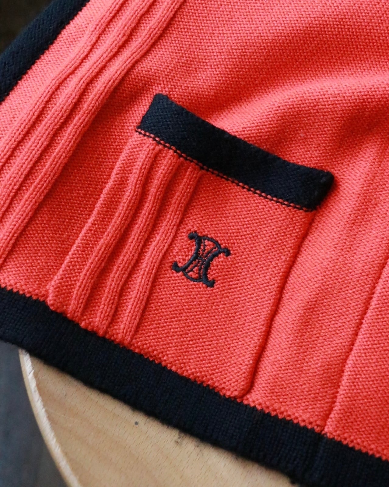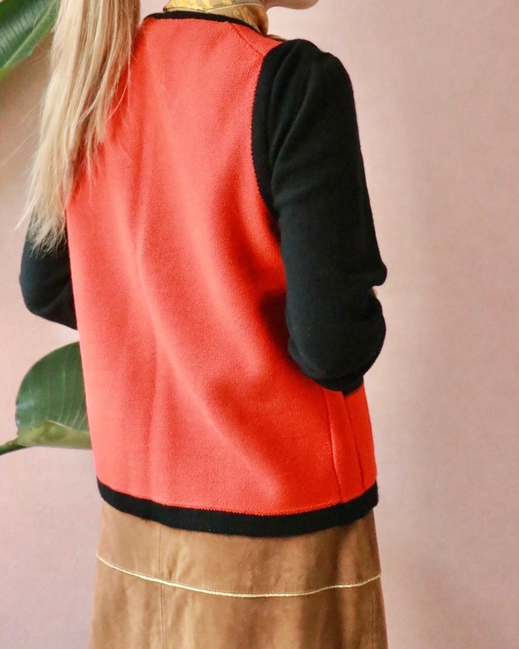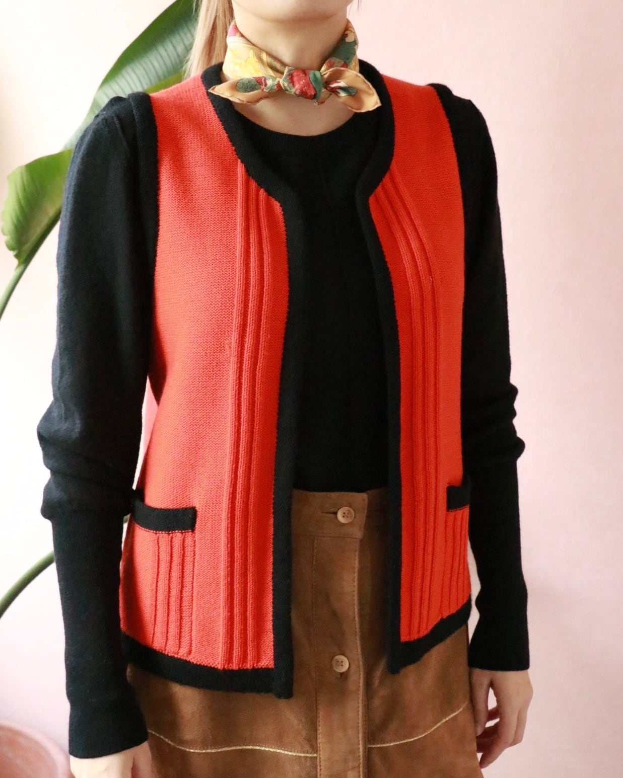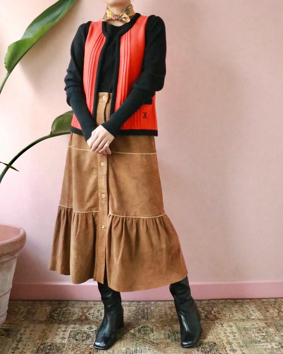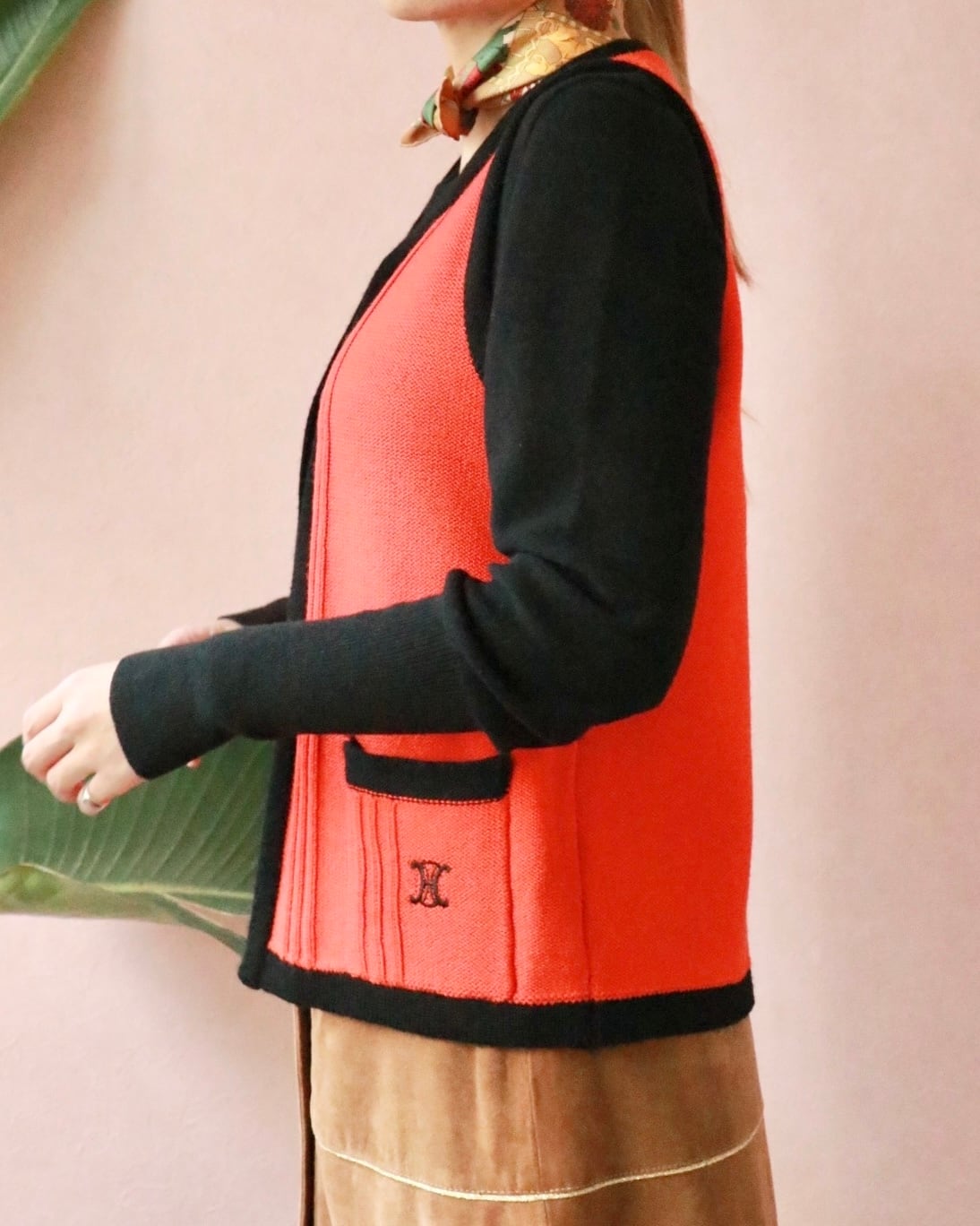 ビビッドなオレンジカラーが目を引くウールニットジレ。