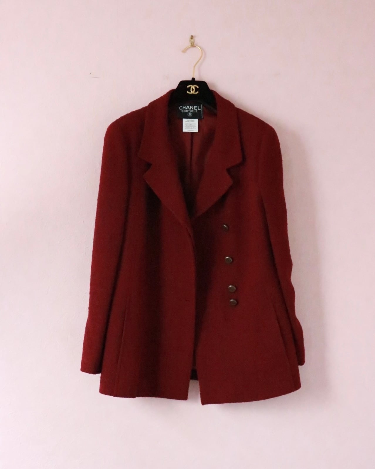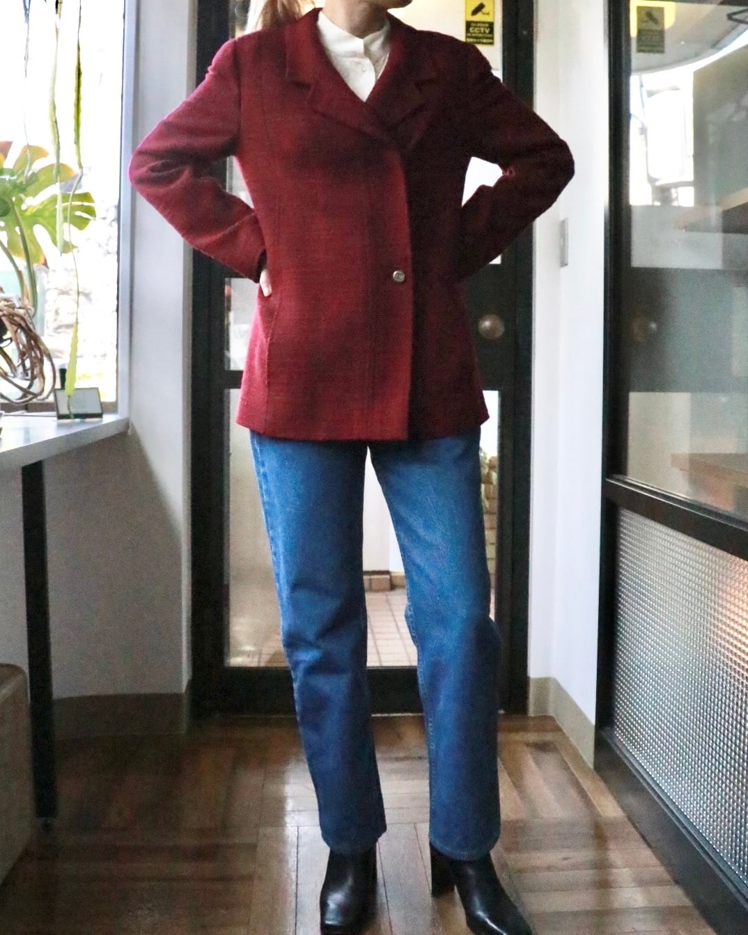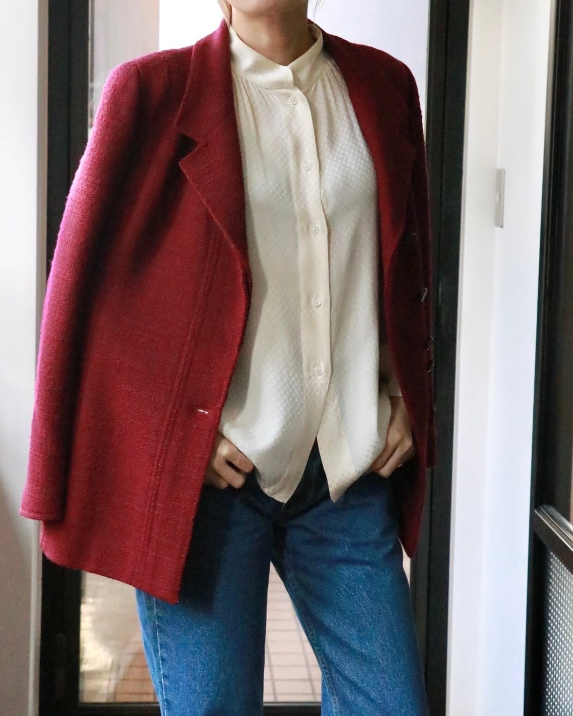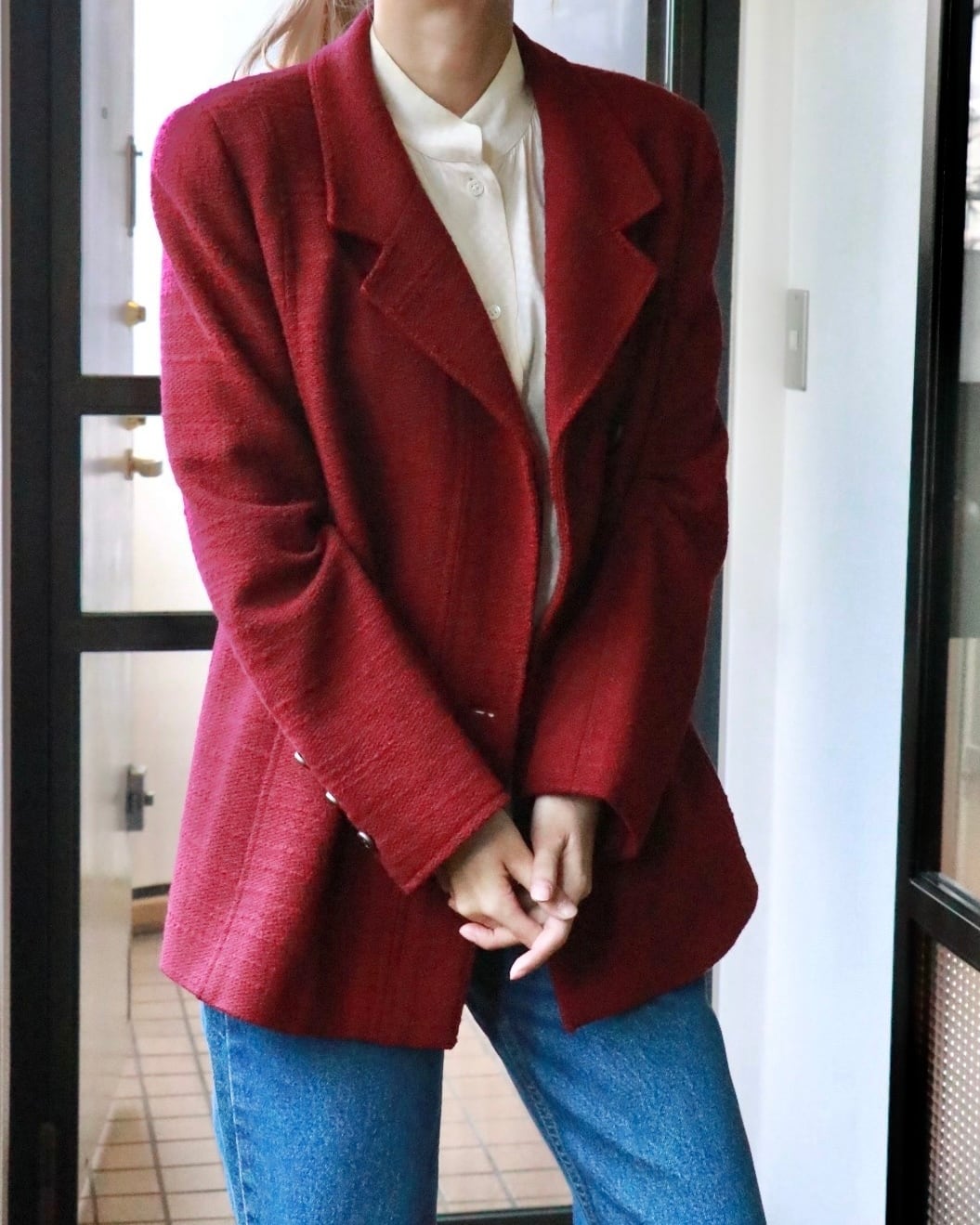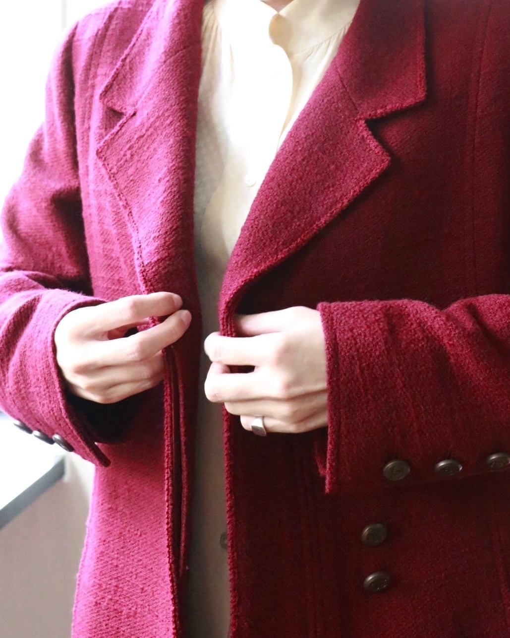 ダブルデザインですがフロントは一つボタンですっきりとシンプルな見せ方はさすがです。