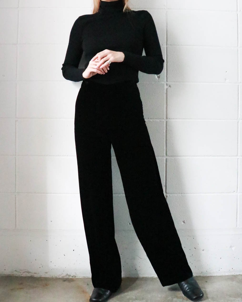毎シーズン秋冬になると着たくなるベロアアイテム。程よいワイドパンツでストライプデザインが美シルエットをさらに引き立ててくれます。かっちりとしたジャケットや綺麗目シャツなどと合わせてメリハリあるコーディネートを楽しむのもオススメです!