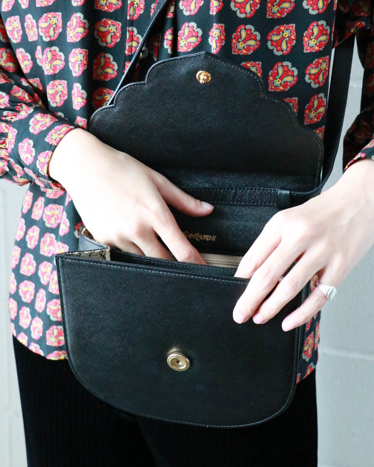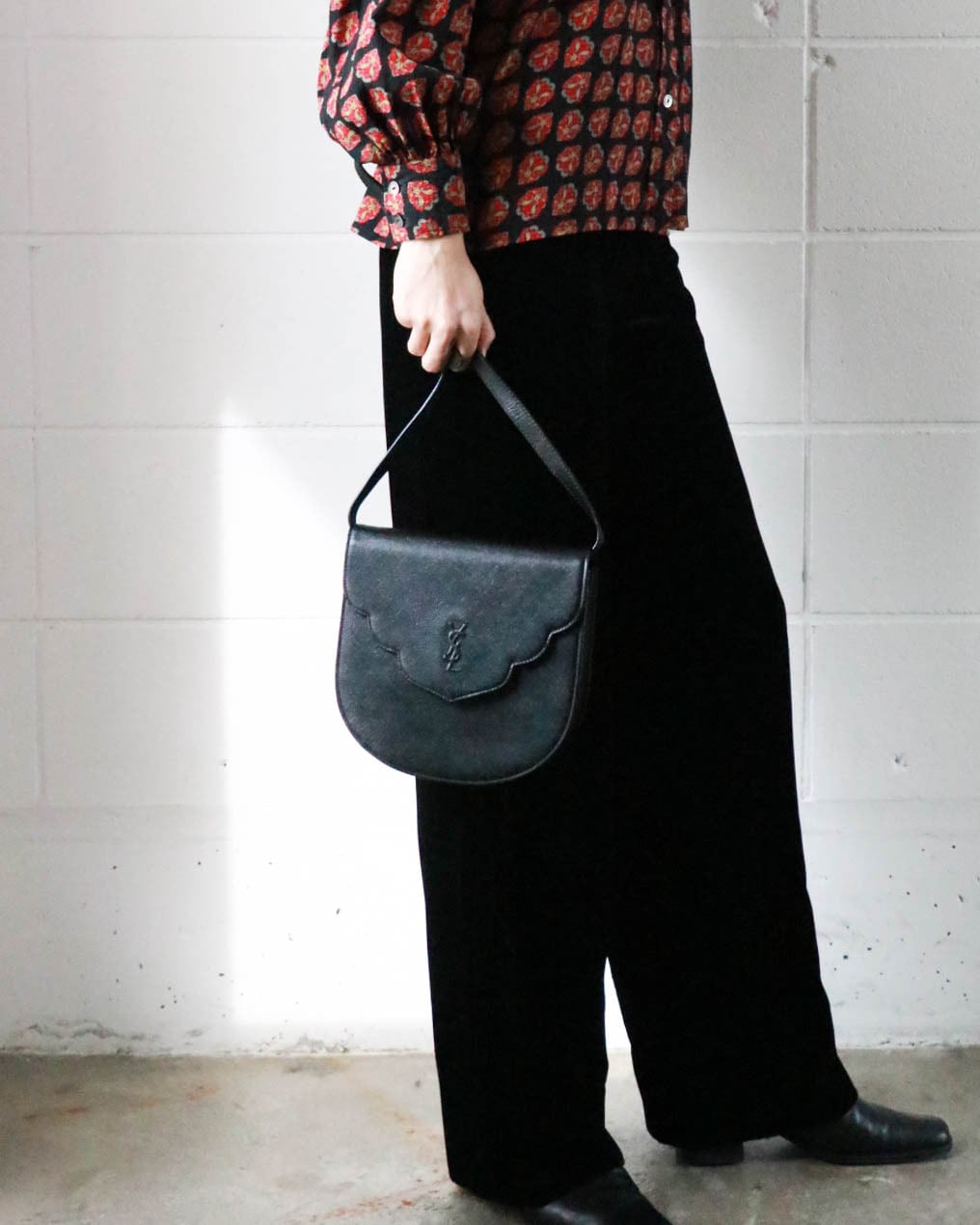 マットな質感の型押しレザー。フラップのスカラップデザインがほんわかとした可愛らしさを生み出す。クラシックでありながら愛らしくカジュアルからドレススタイルまで幅広く馴染みます。使い込むほどに味わいが増す、永く寄り添ってくれるバッグです。