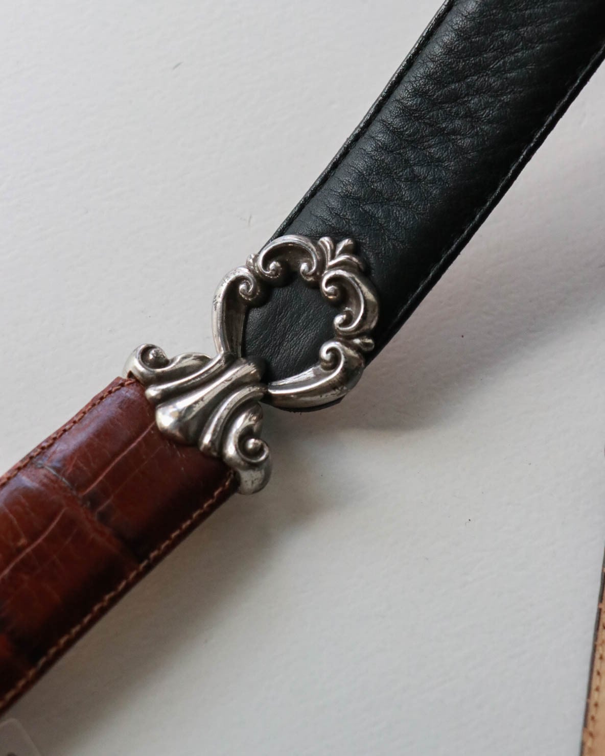 スタンダードな太さで、ブラウン×ブラックのコンビネーションがどんなコーディネートにも合わせやすい。普段のファッションにヴィンテージのベルトをプラスして個性を楽しんでみてはいかがでしょうか。