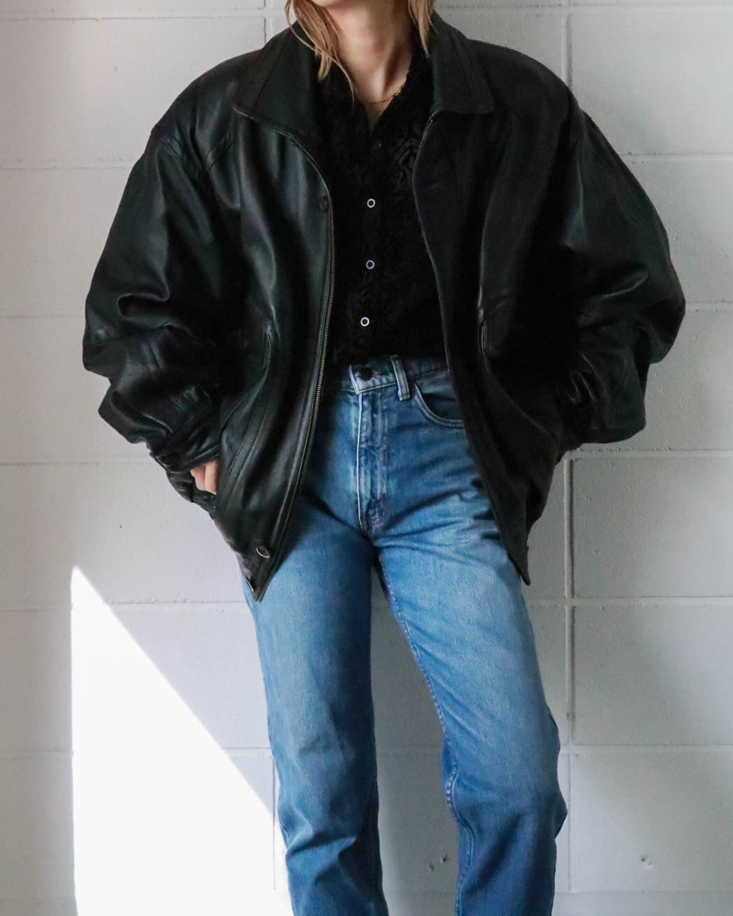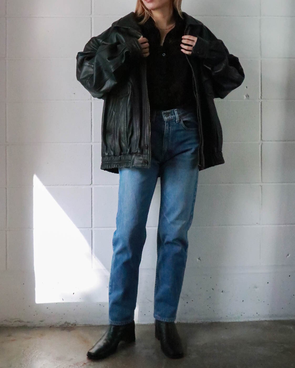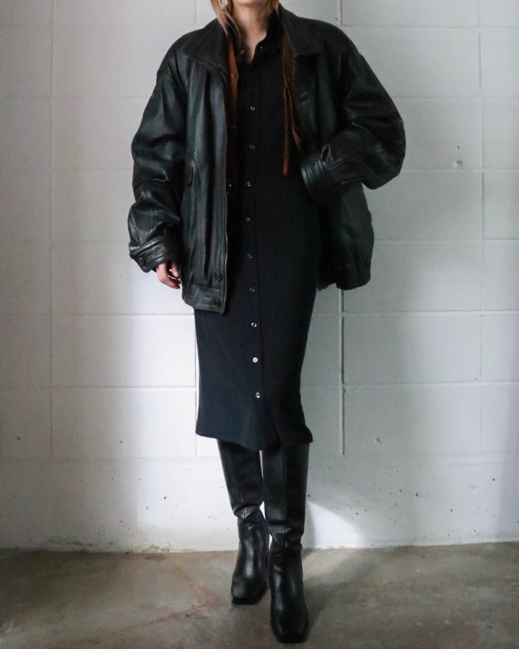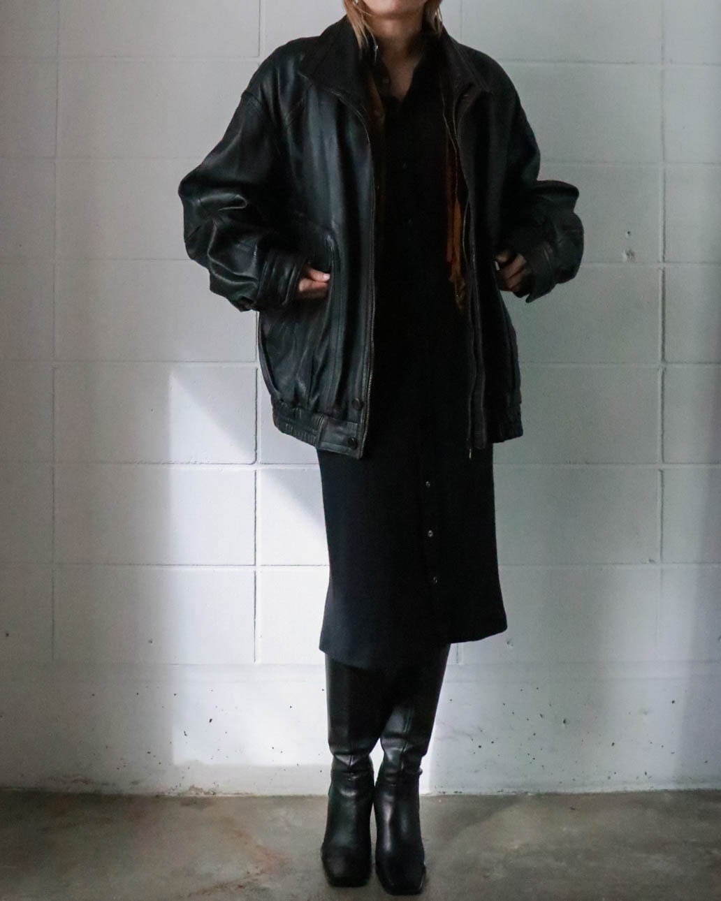 ヴィンテージのレザーブルゾンが入荷。オーバーサイズのシルエットが今っぽく、さっと羽織るだけでこなれた印象に。オールブラックに襟元やポケットにブラウンレザーを組み合わせたデザインがさりげないアクセント。ベーシックカラーのゆったりアウターはインナーも合わせやすく、AWシーズン大活躍すること間違いなし。