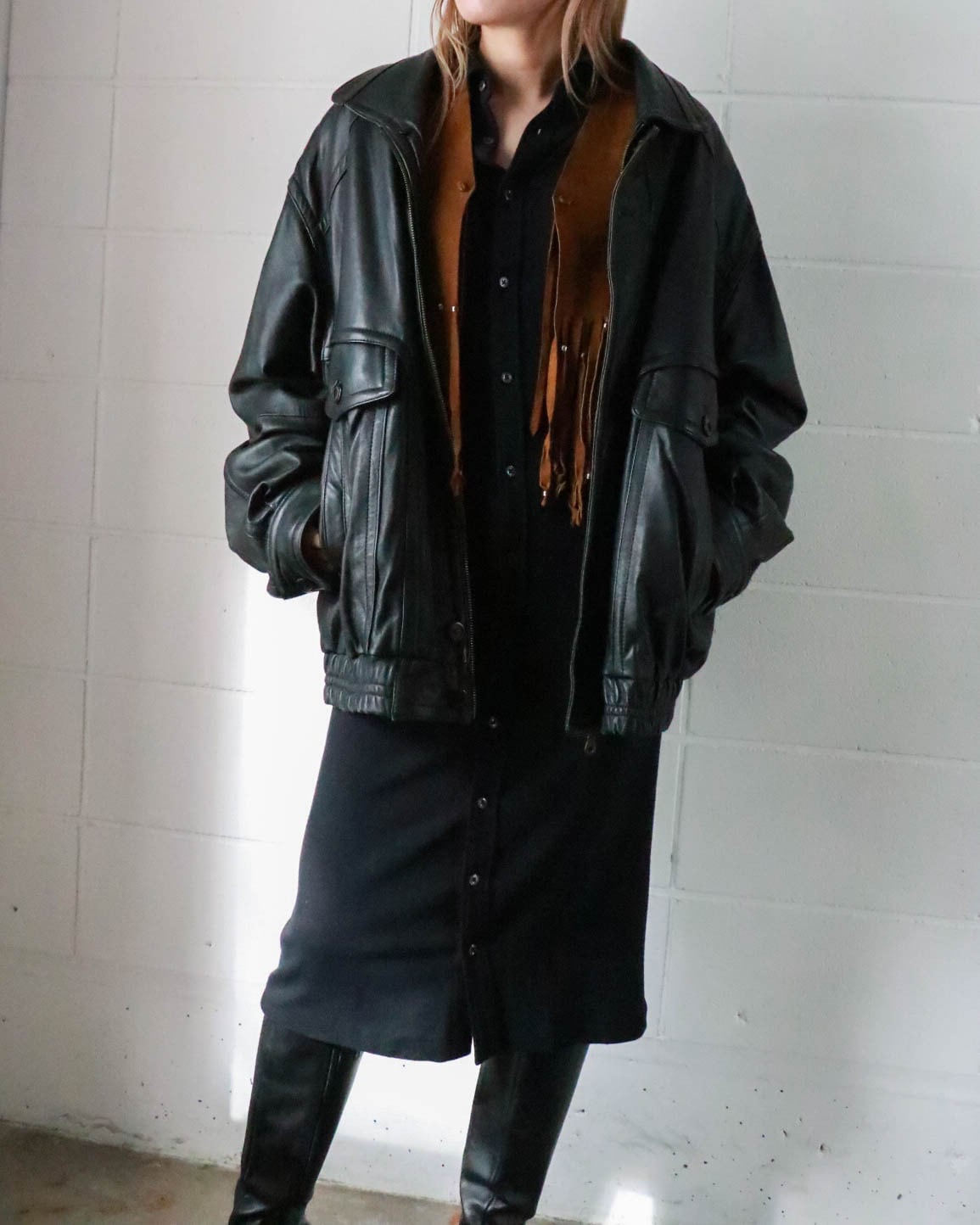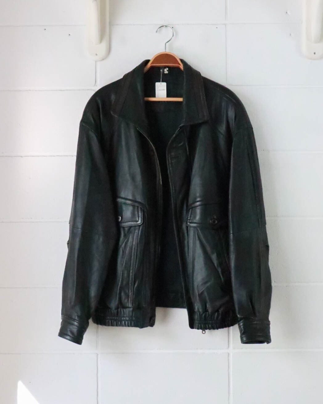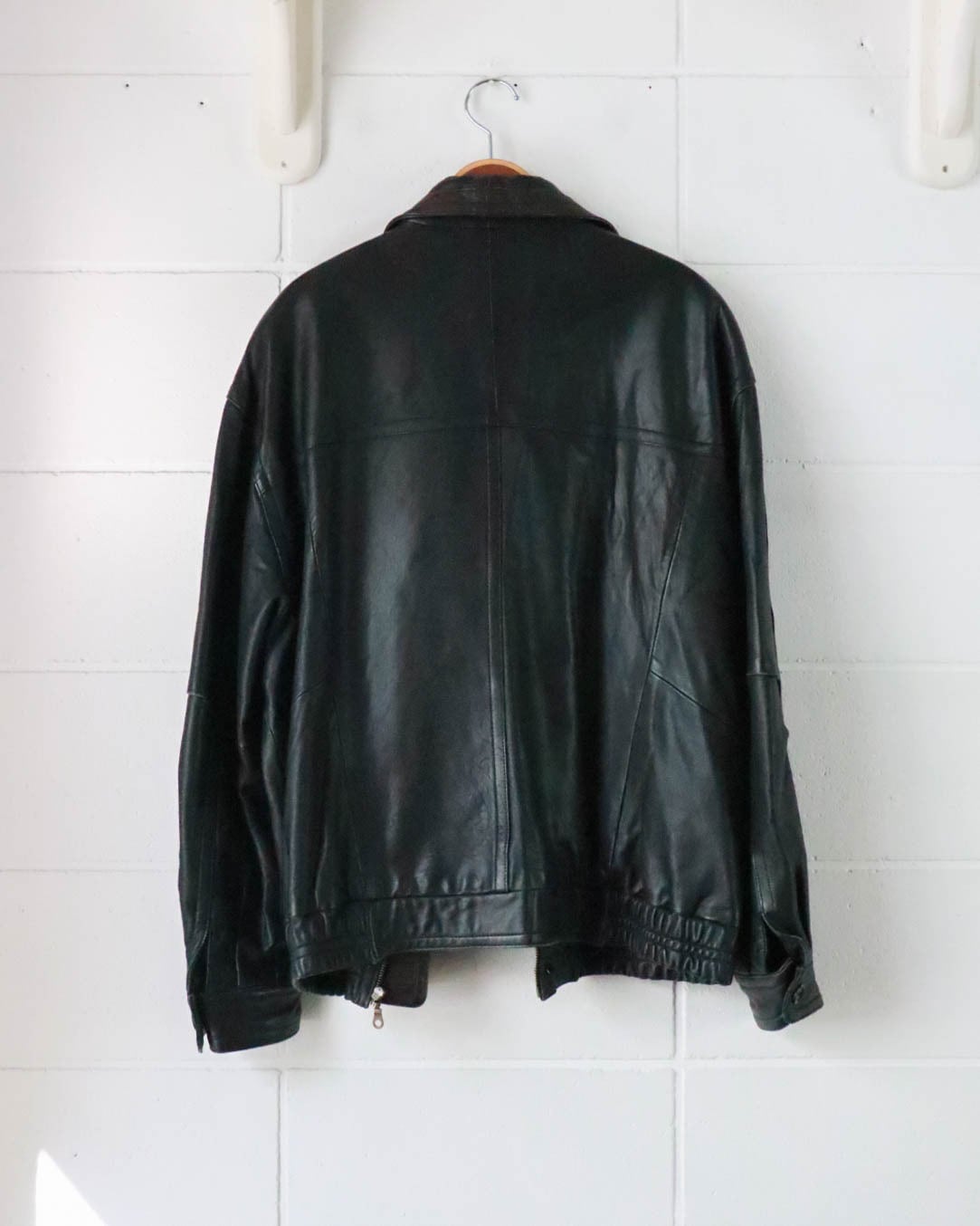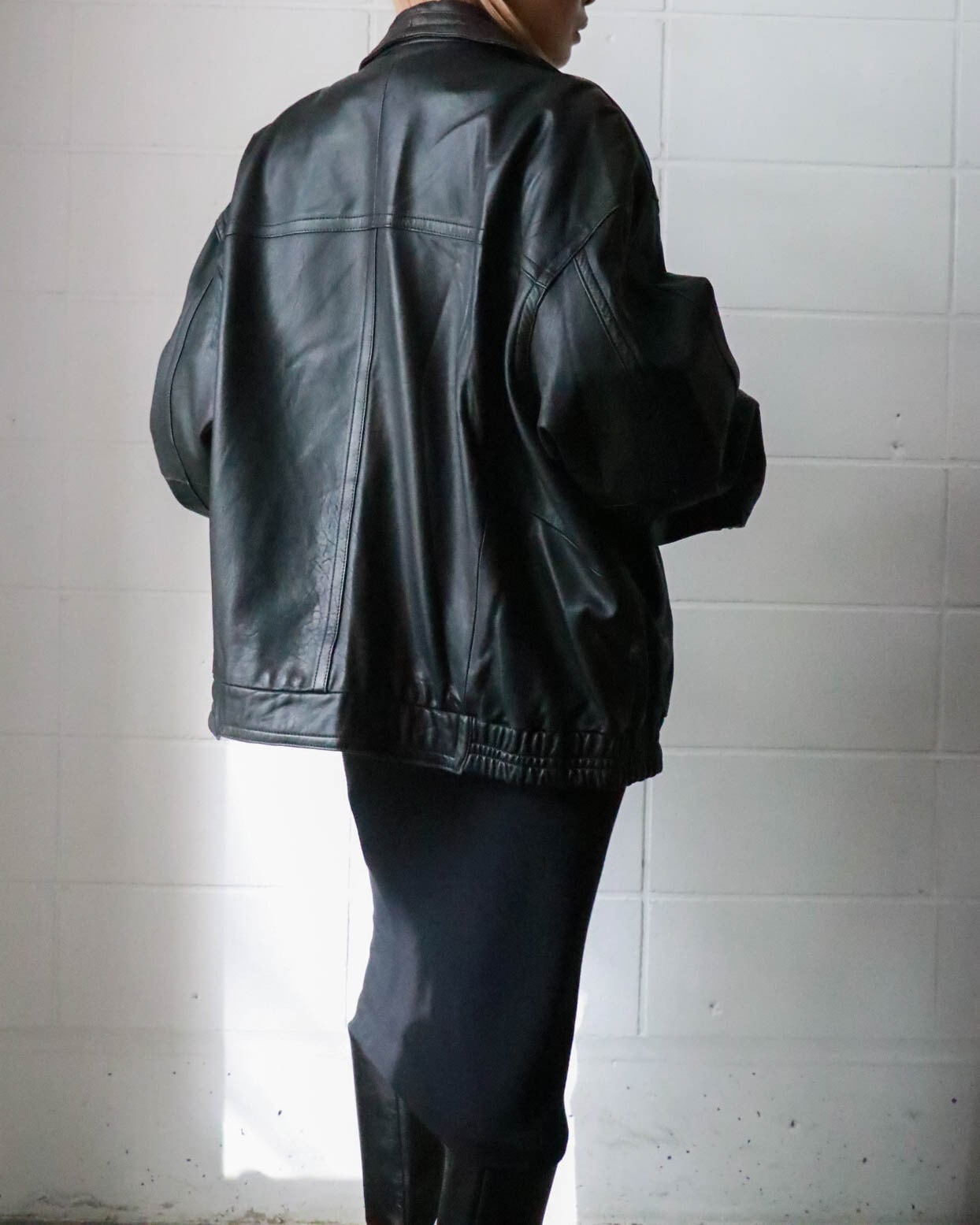 ヴィンテージのレザーブルゾンが入荷。オーバーサイズのシルエットが今っぽく、さっと羽織るだけでこなれた印象に。オールブラックに襟元やポケットにブラウンレザーを組み合わせたデザインがさりげないアクセント。ベーシックカラーのゆったりアウターはインナーも合わせやすく、AWシーズン大活躍すること間違いなし。