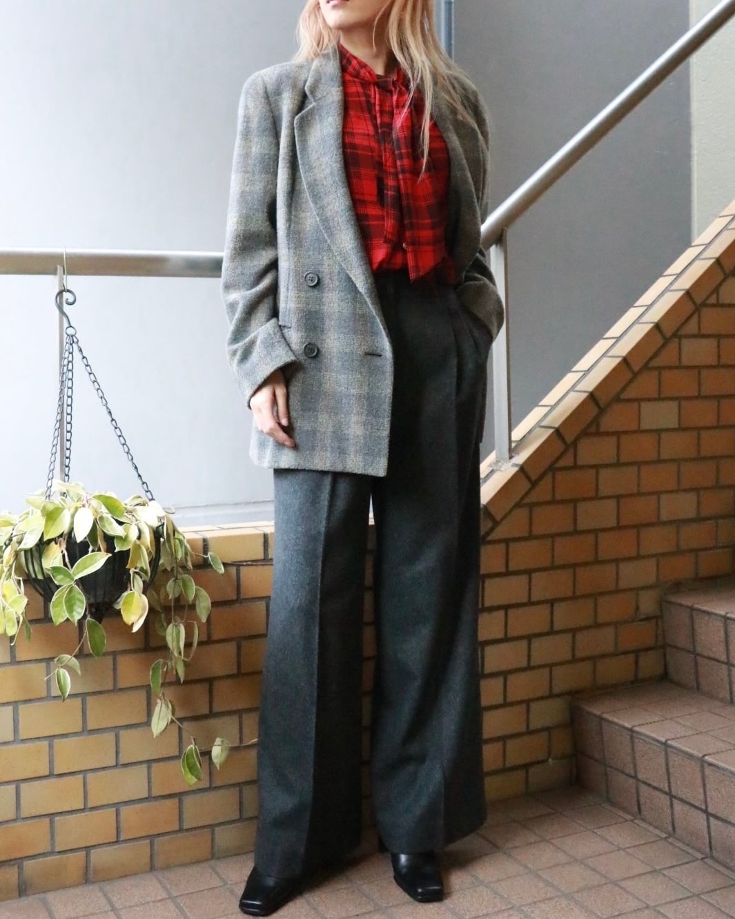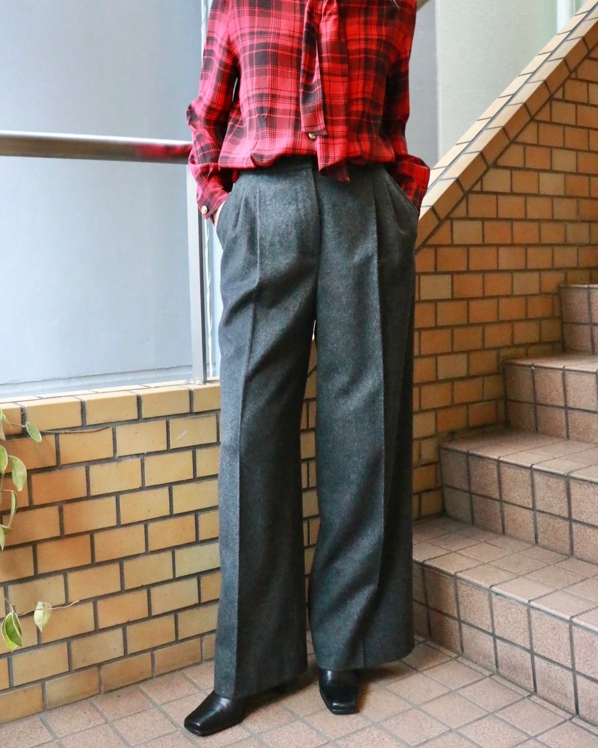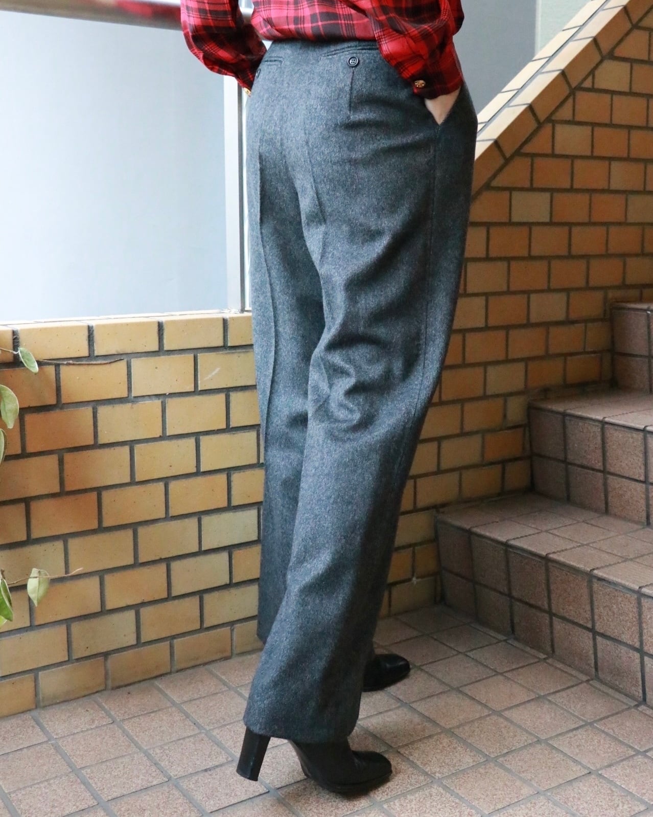 マックスマーラのチャコールグレーパンツ。