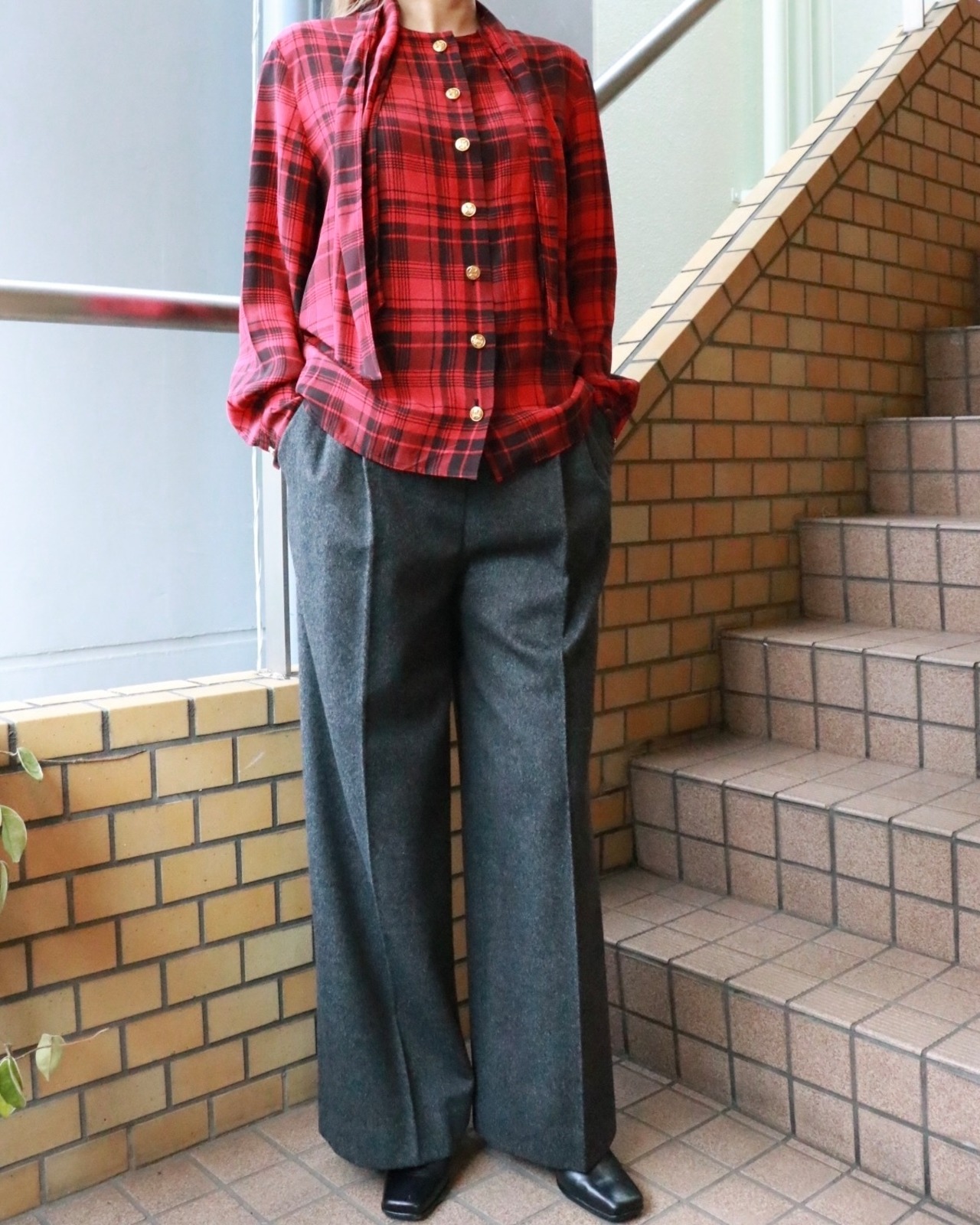 女性のワードローブに必須なアイテム、ボウタイブラウス。こちらはオールドセリーヌ。