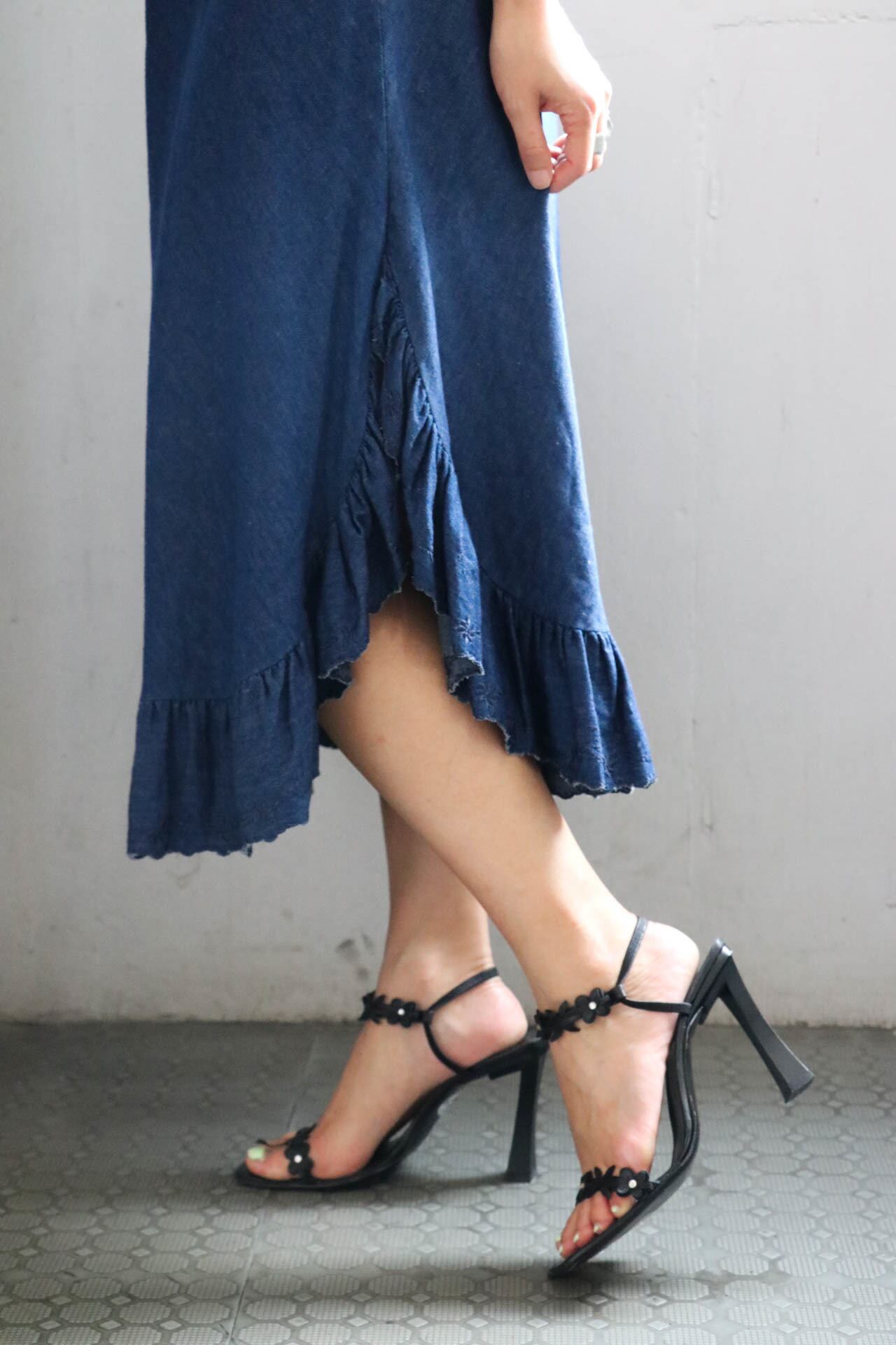 ガーリーかつフェミニンな印象のデニムスカートです。