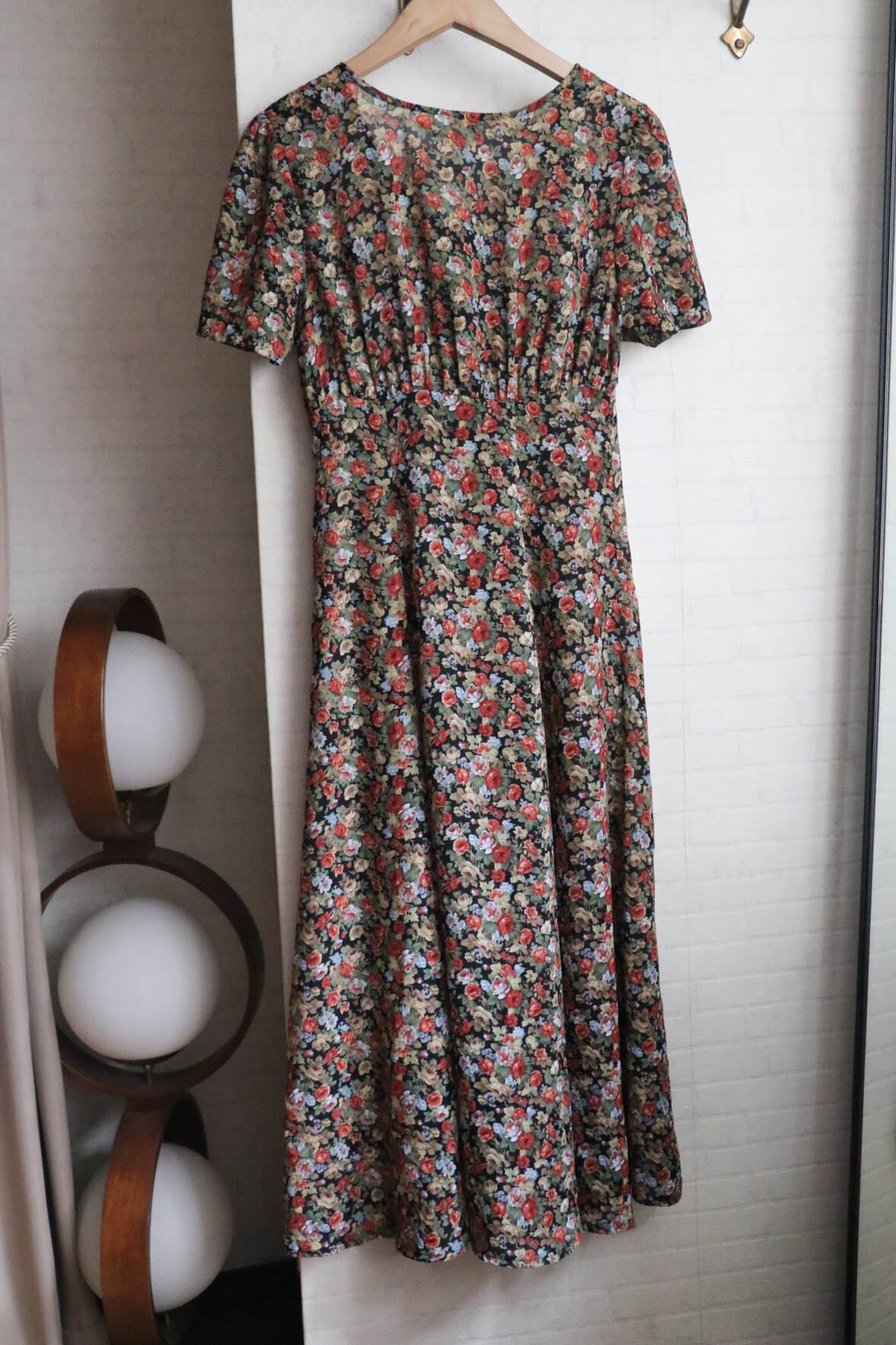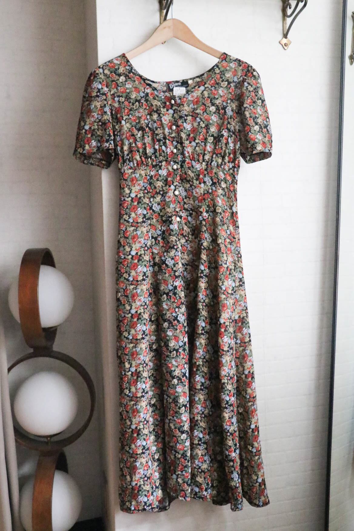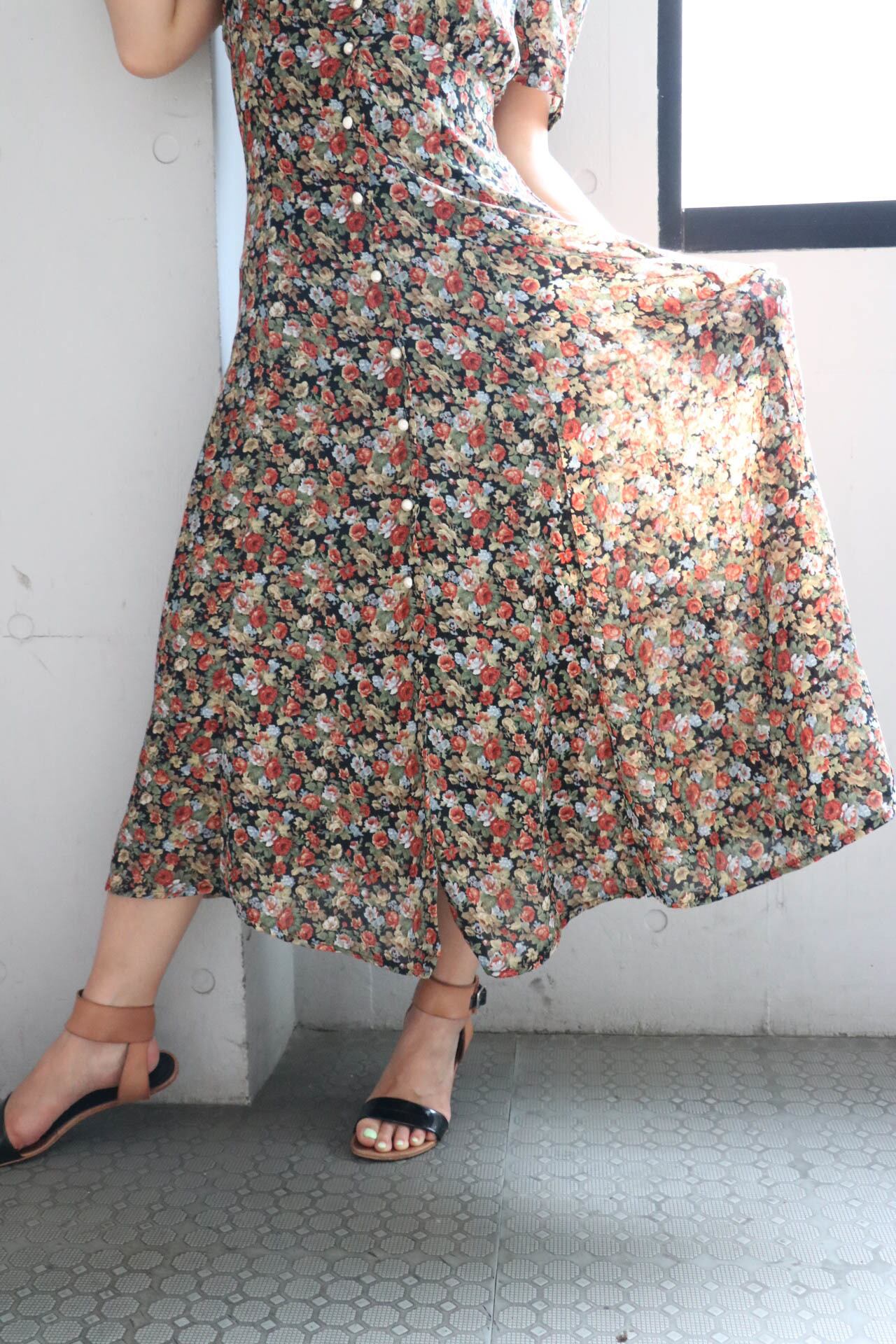 レトロでファンシー感漂う小花柄プリントのマキシドレス