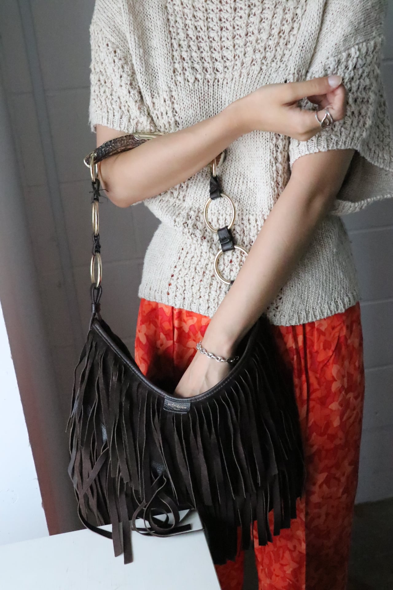 イブサンローランスエードフリンジバッグ
