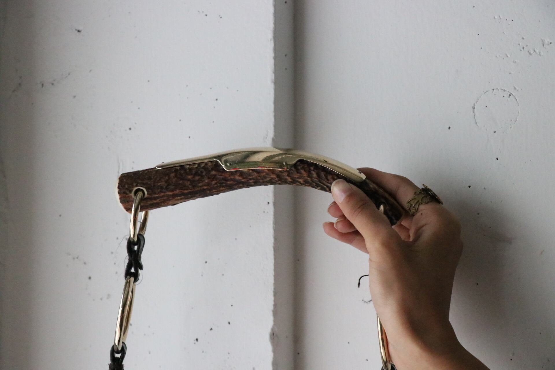 ショルダーにはシックな鹿角がインパクトのある一点
