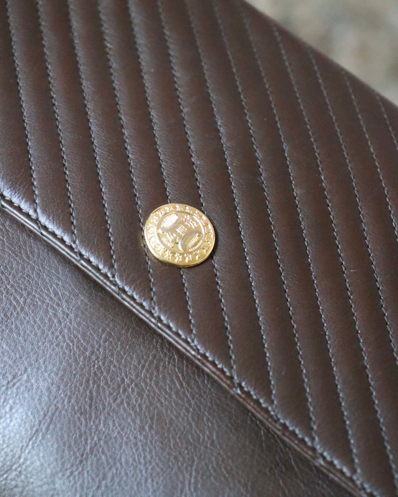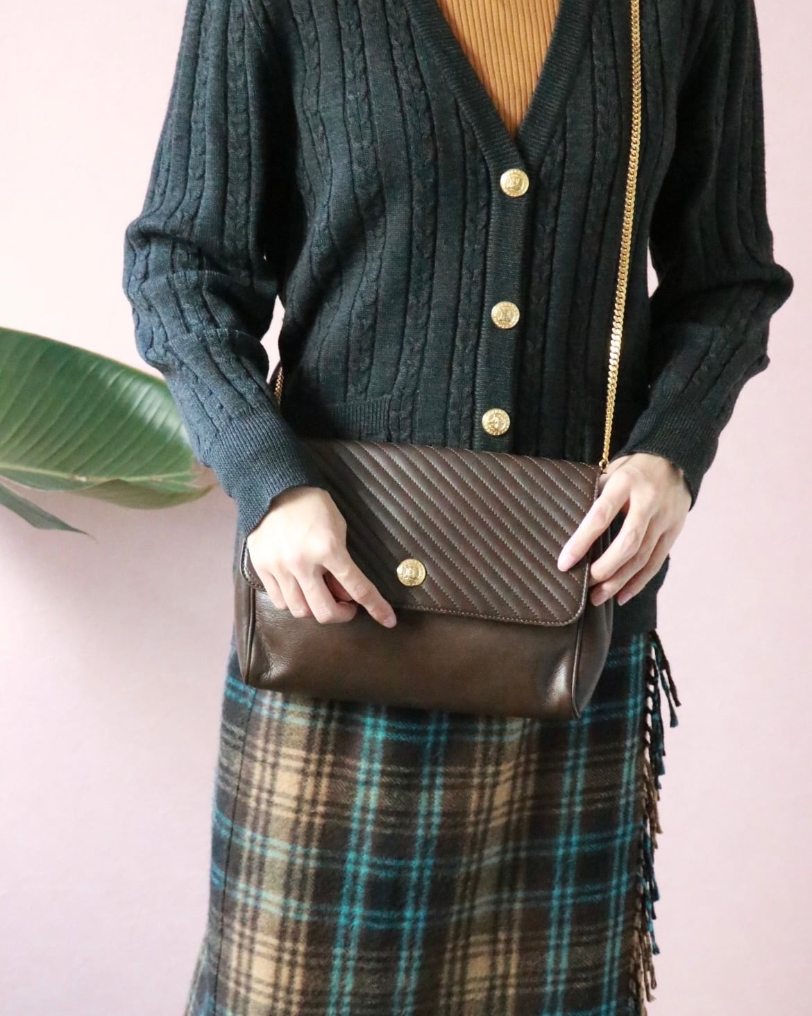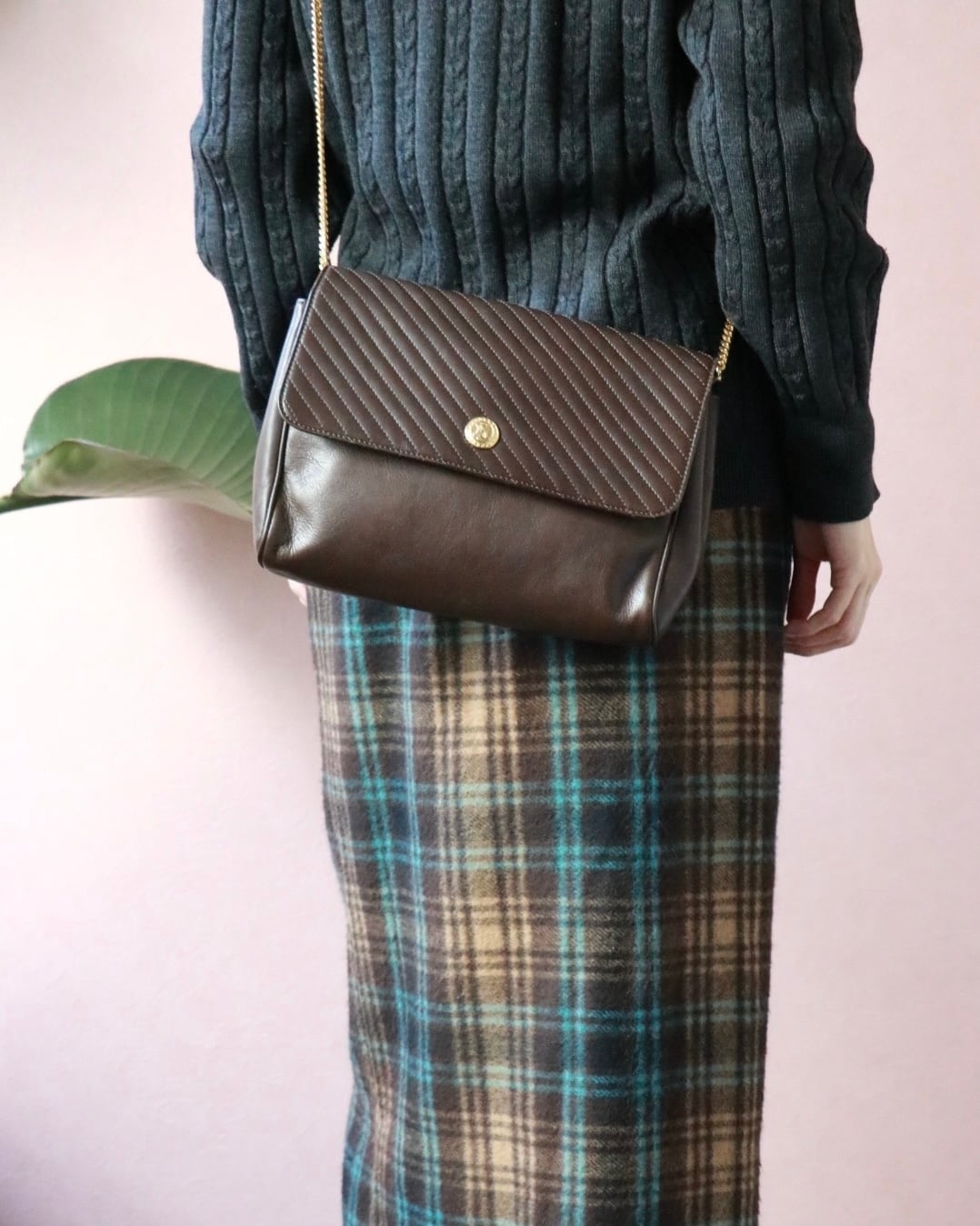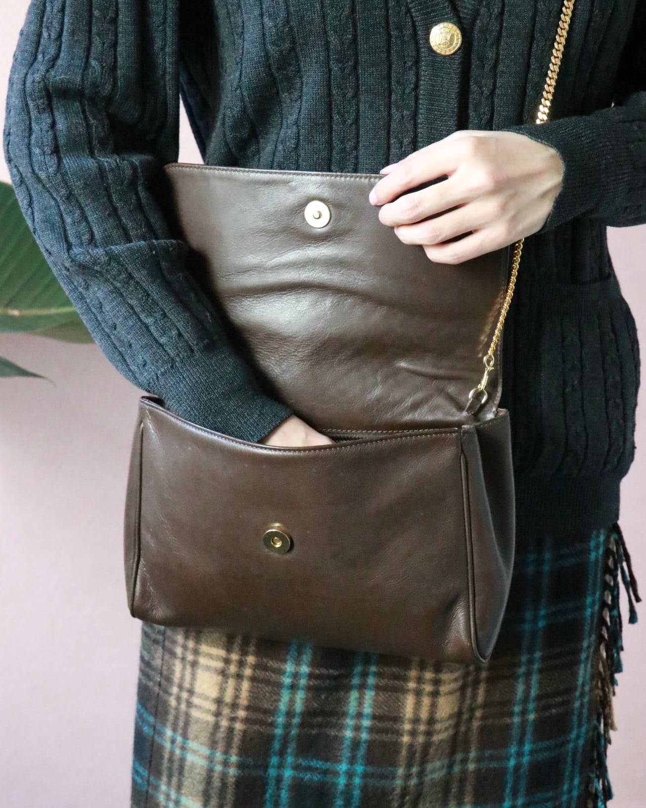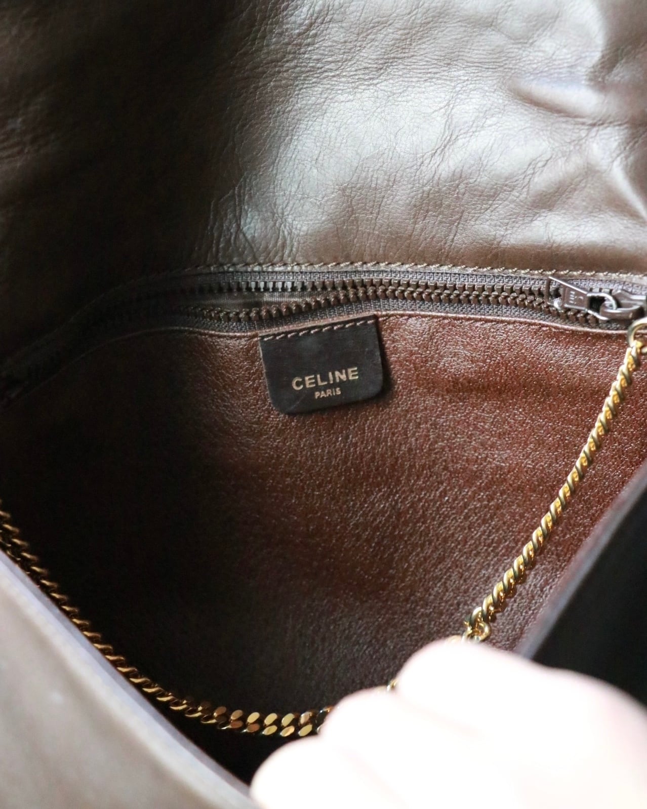 ミニマルなサイズ感がちょうど良いブラウンセリーヌのチェーンバッグ。