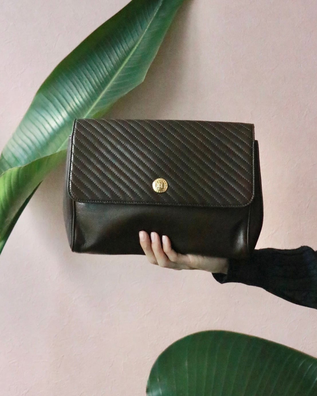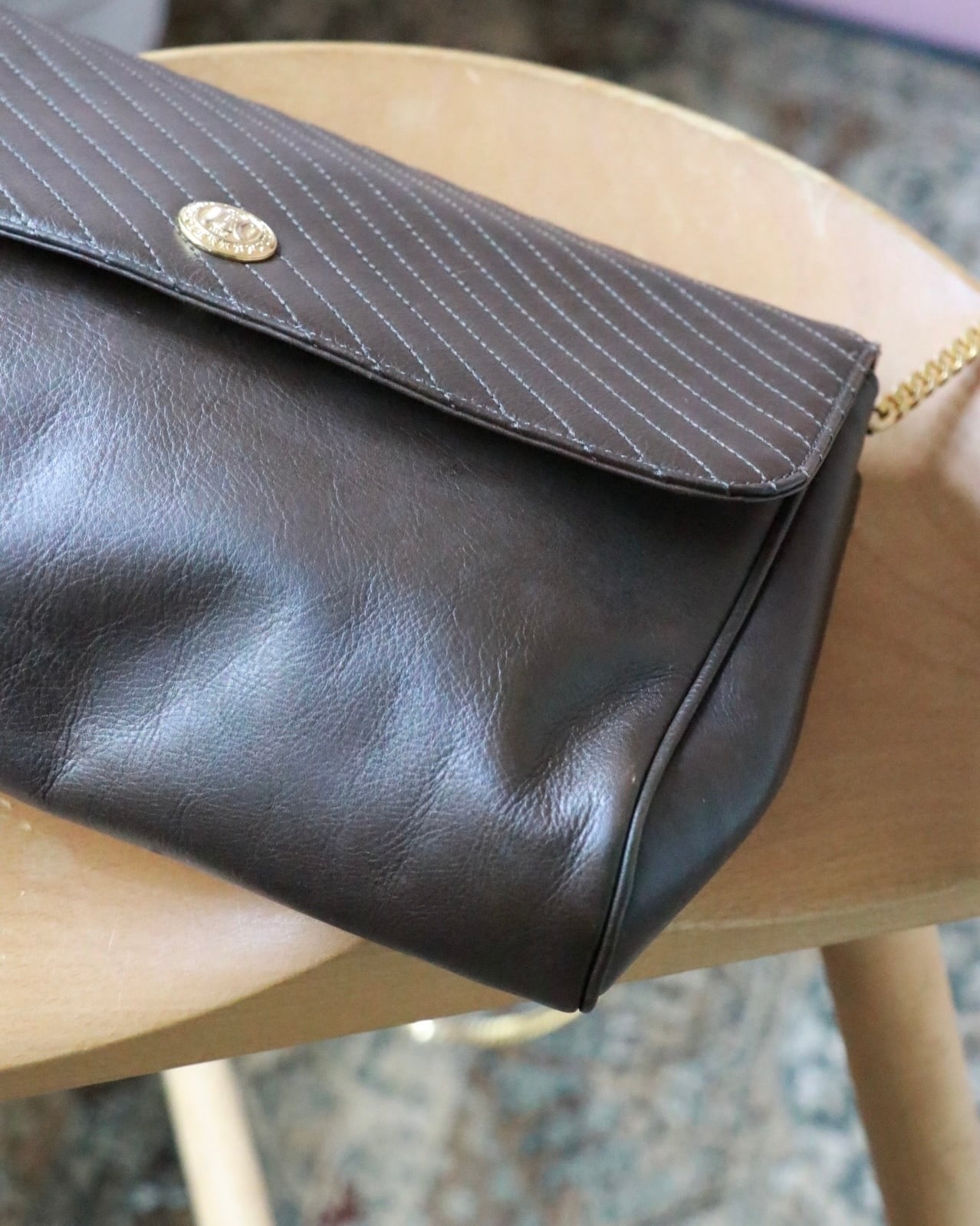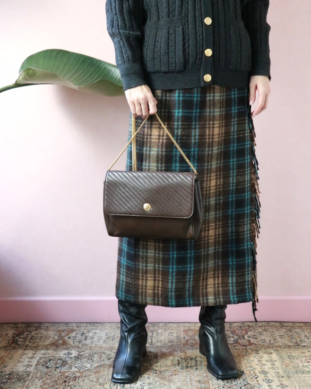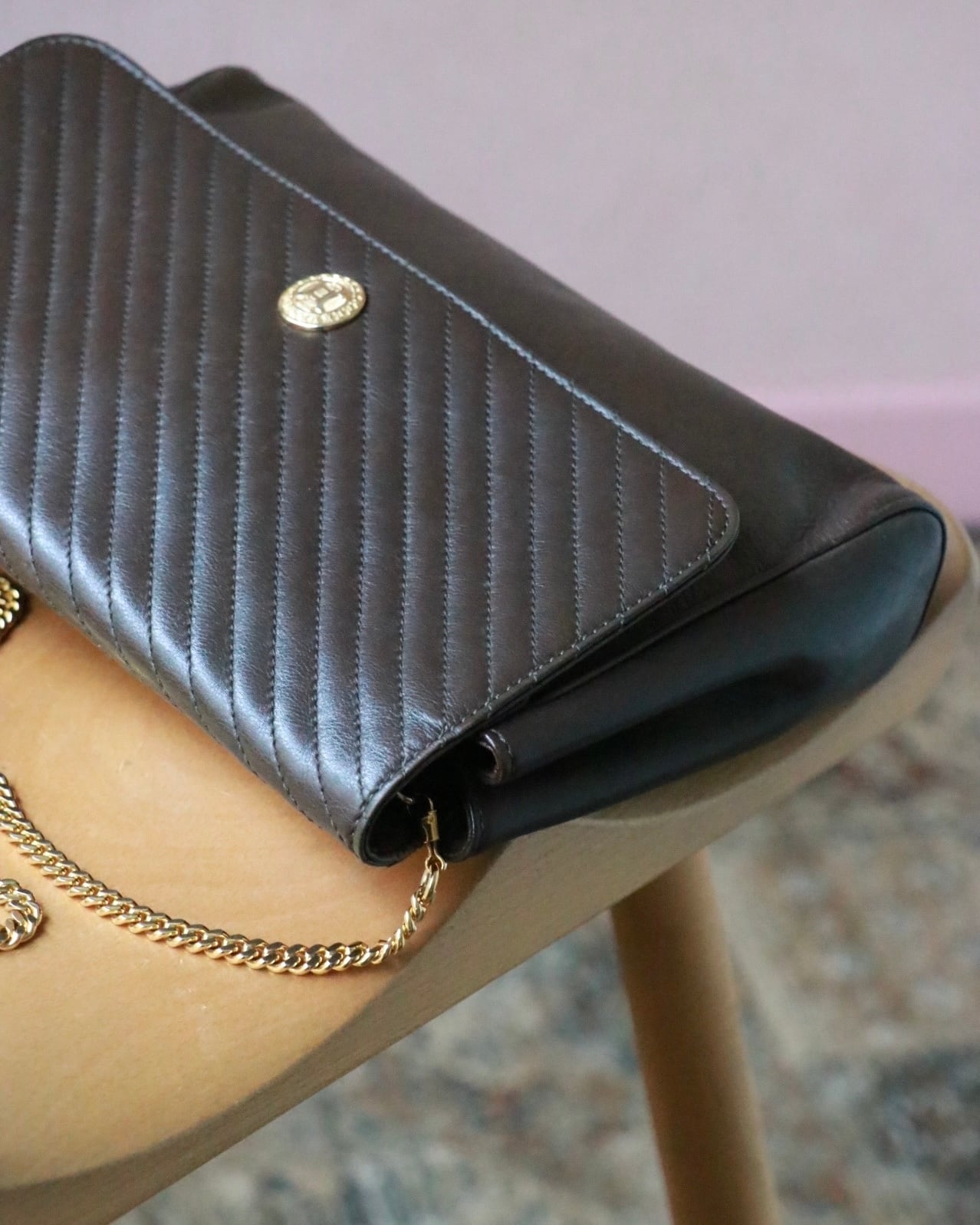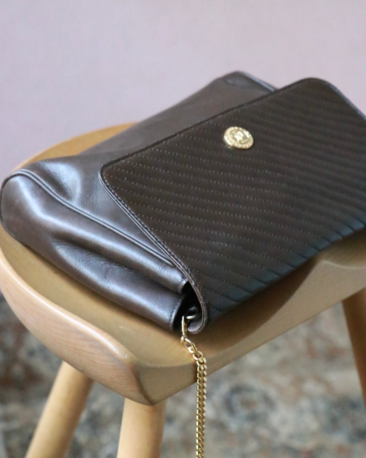 ミニマルなサイズ感がちょうど良いブラウンセリーヌのチェーンバッグ。
