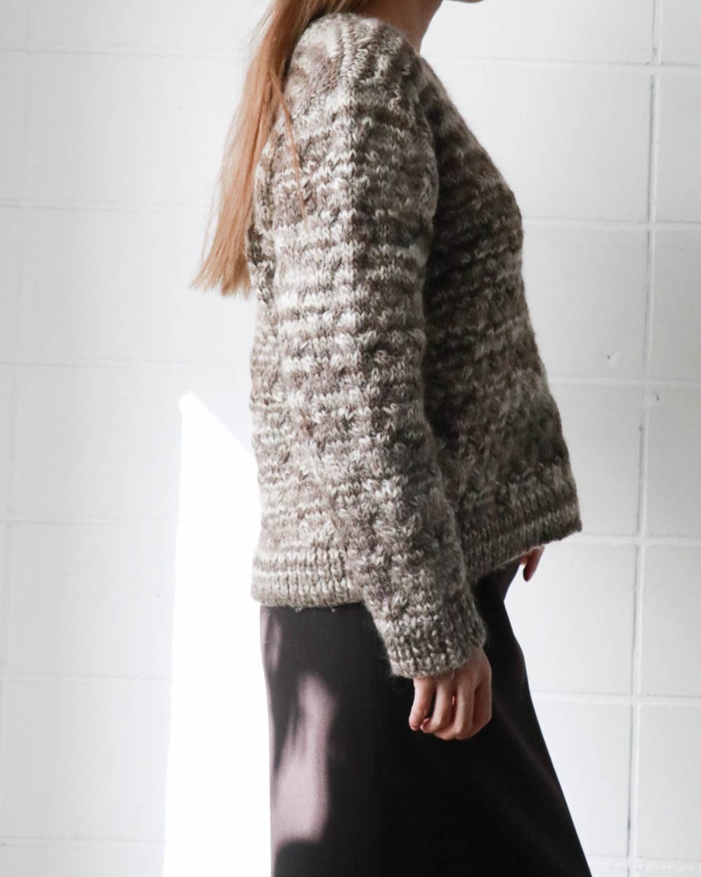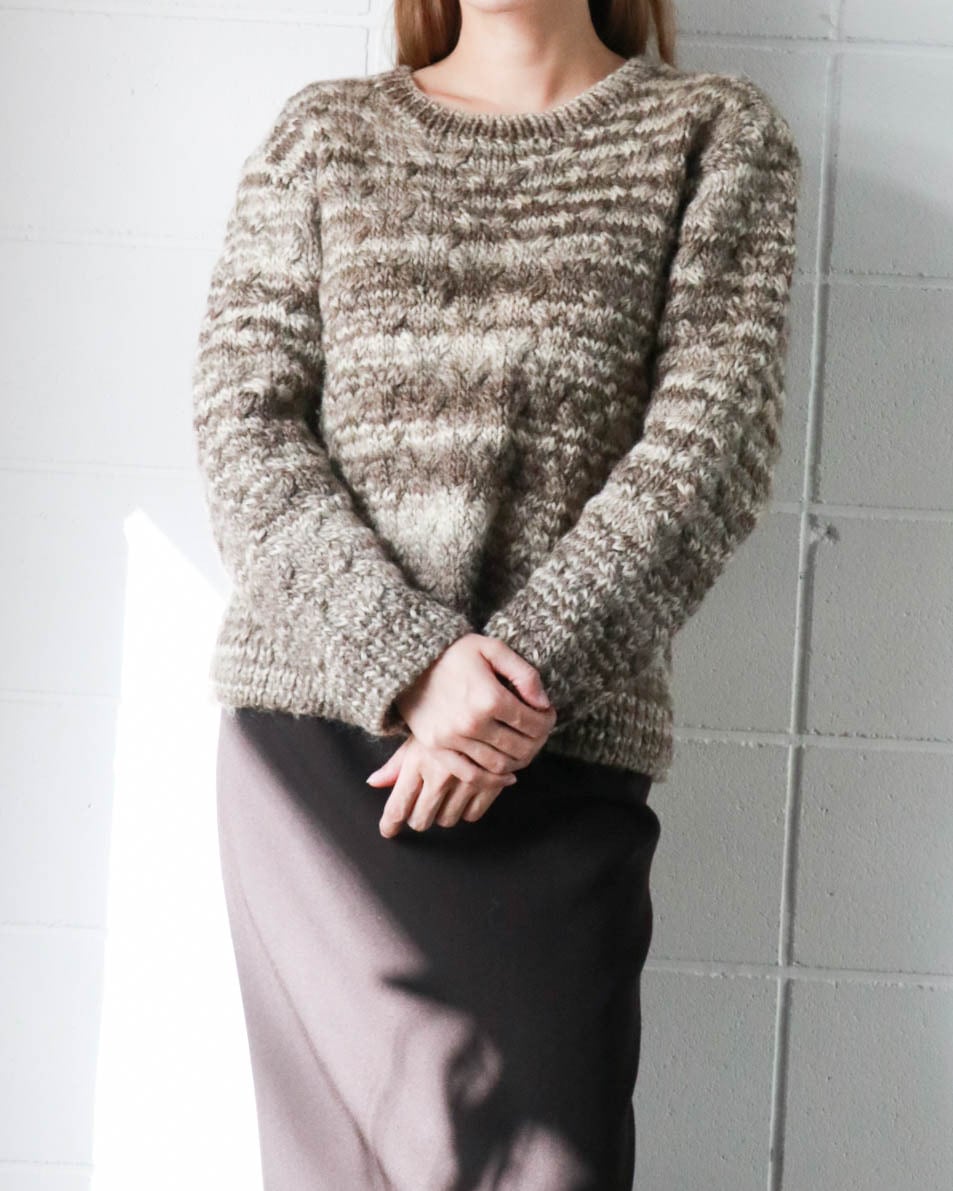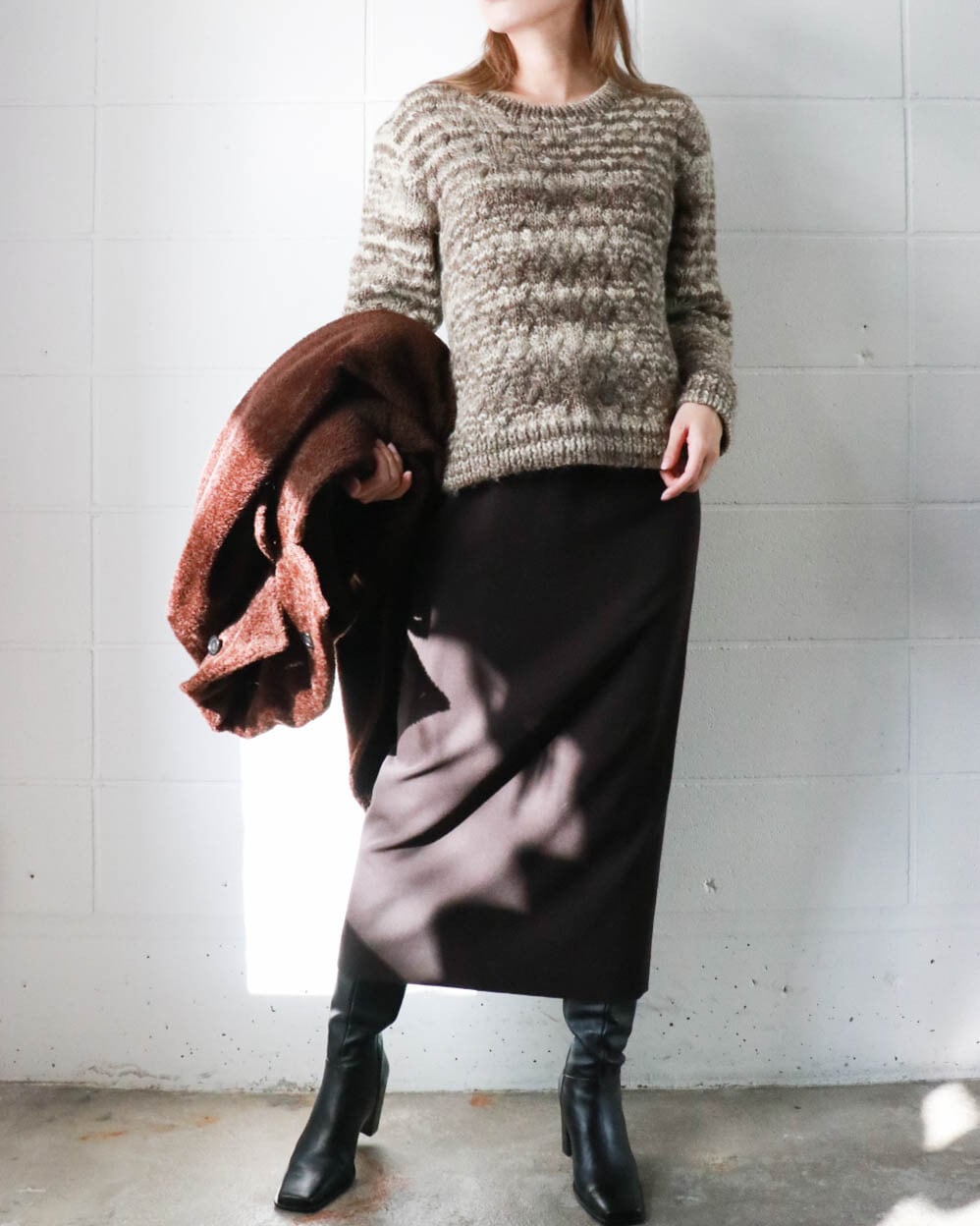 みっちりとした編み目で暖かく包み込んでくれながら襟元は詰まりすぎてないので