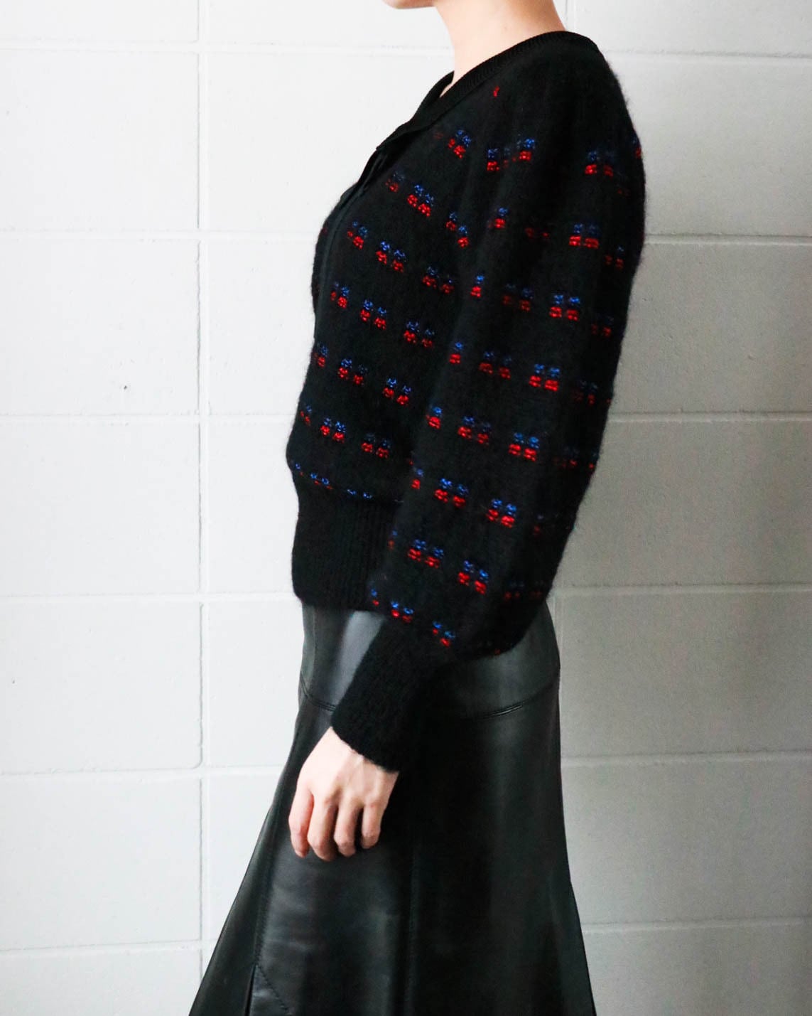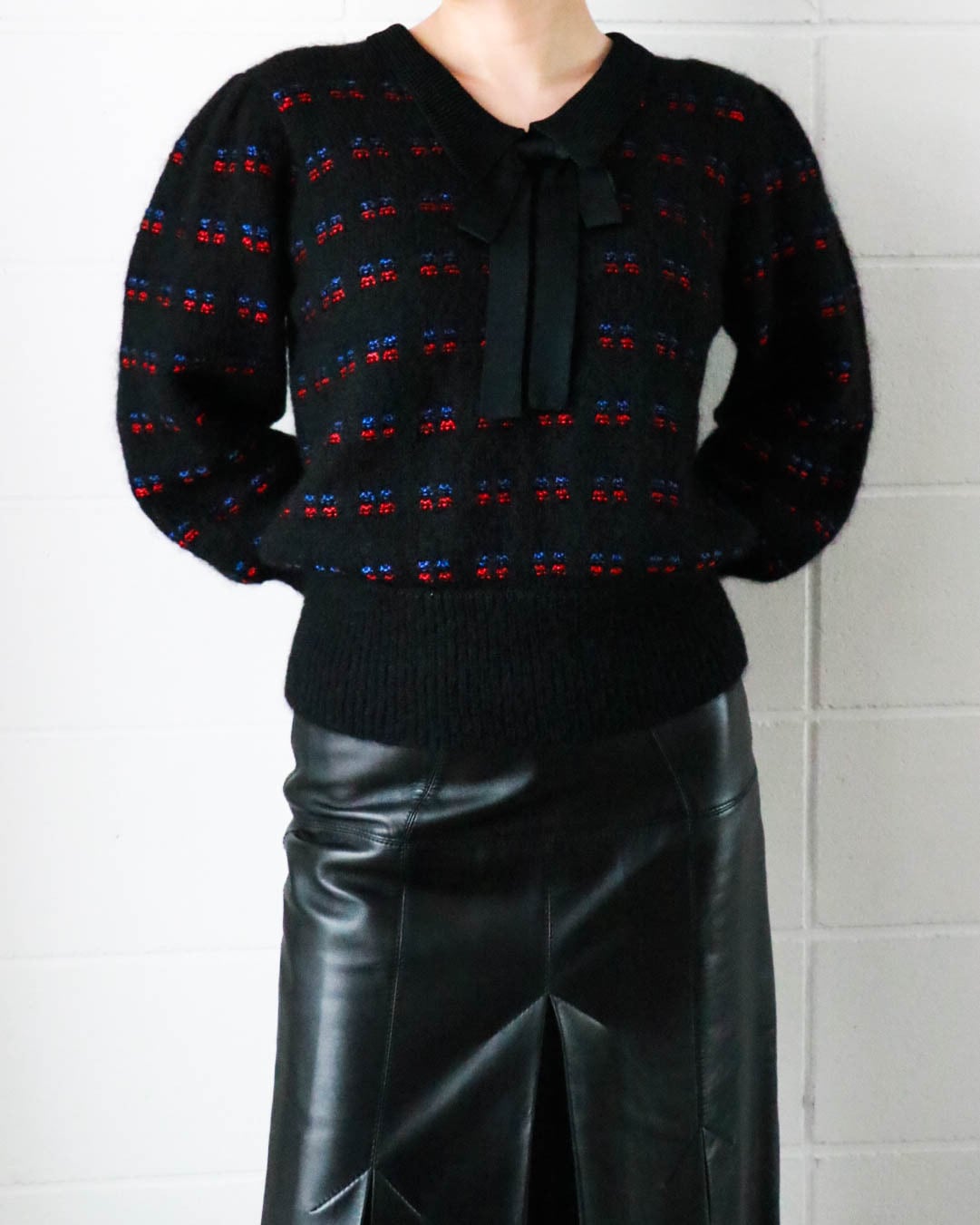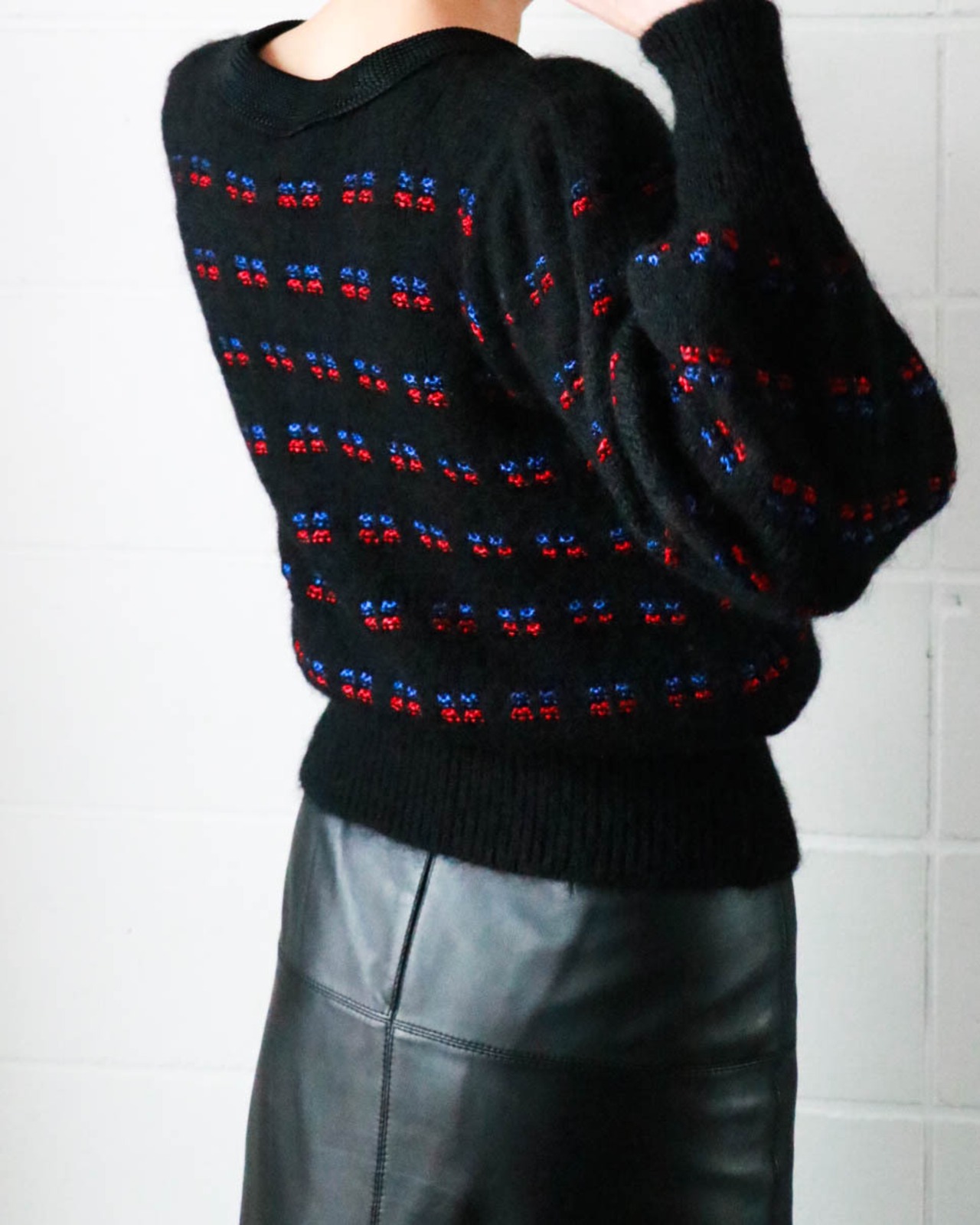 クラシカルな魅力が詰まったYves Saint Laurentのニットが入荷。ブラックニットに映えるレッドとブルーの編み模様が静かな存在感を放ちます。