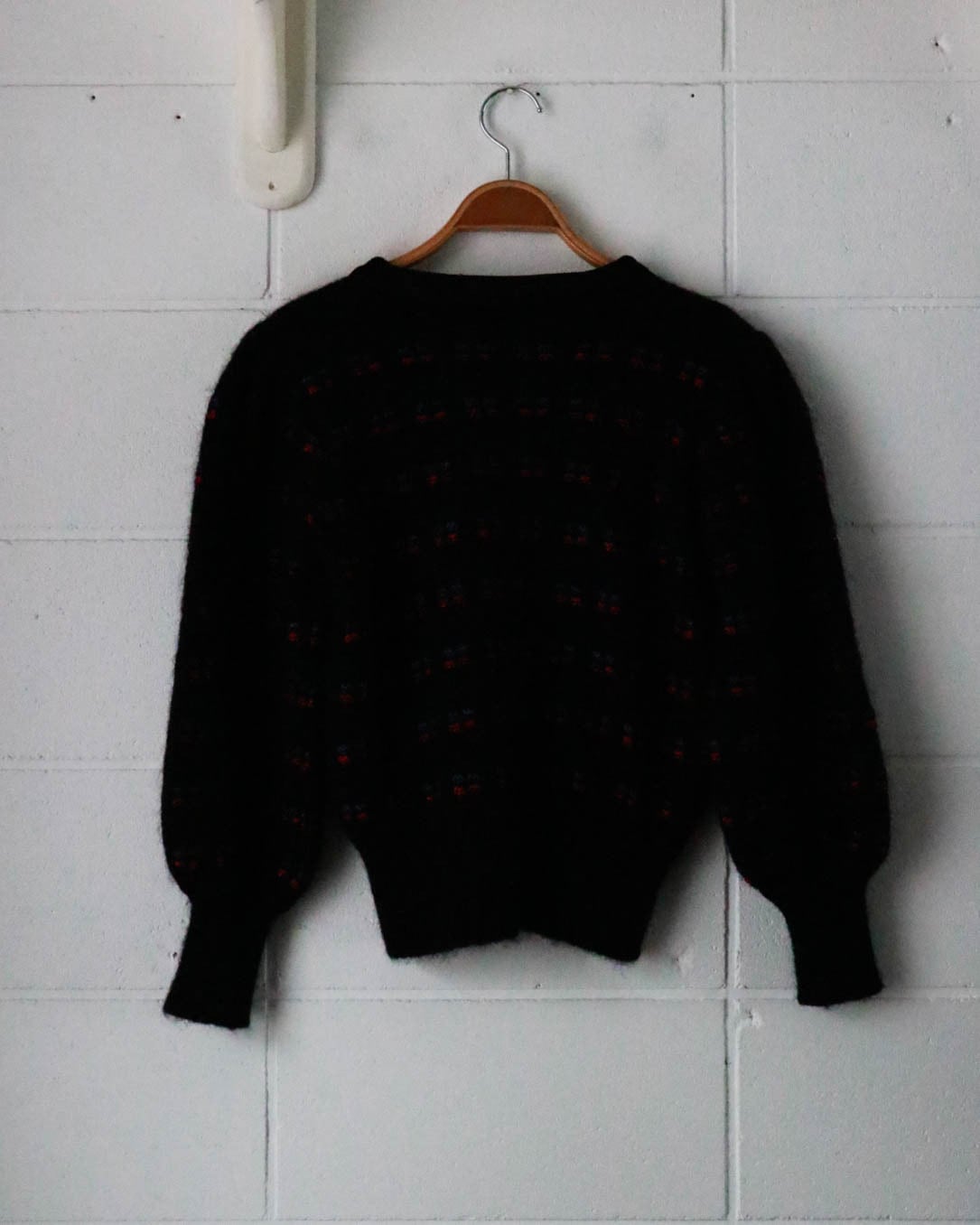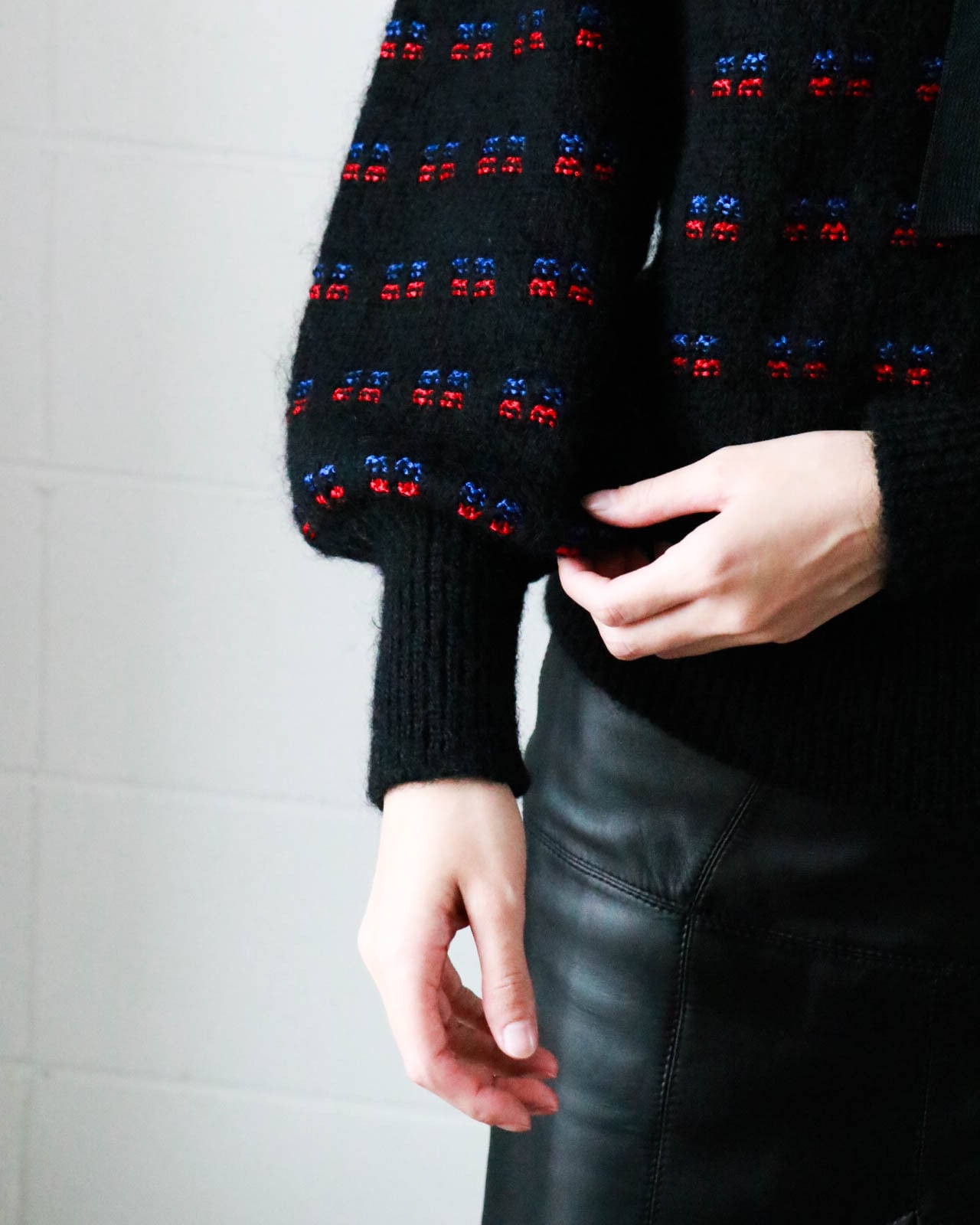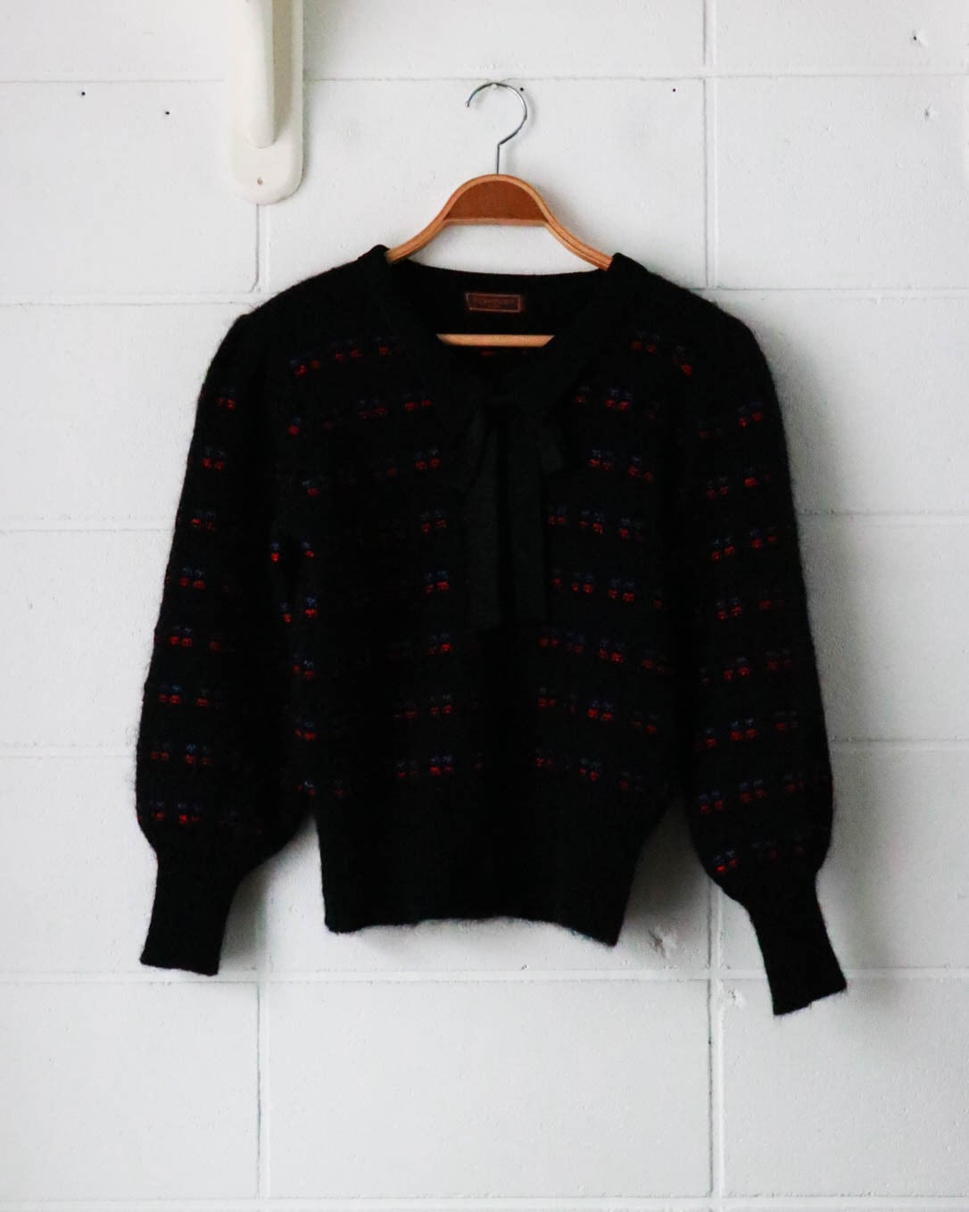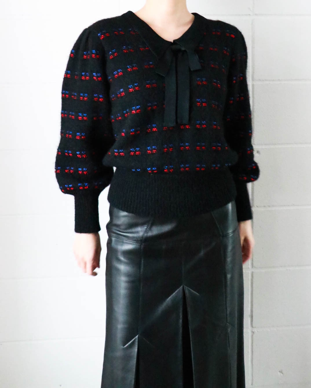 クラシカルな魅力が詰まったYves Saint Laurentのニットが入荷。ブラックニットに映えるレッドとブルーの編み模様が静かな存在感を放ちます。