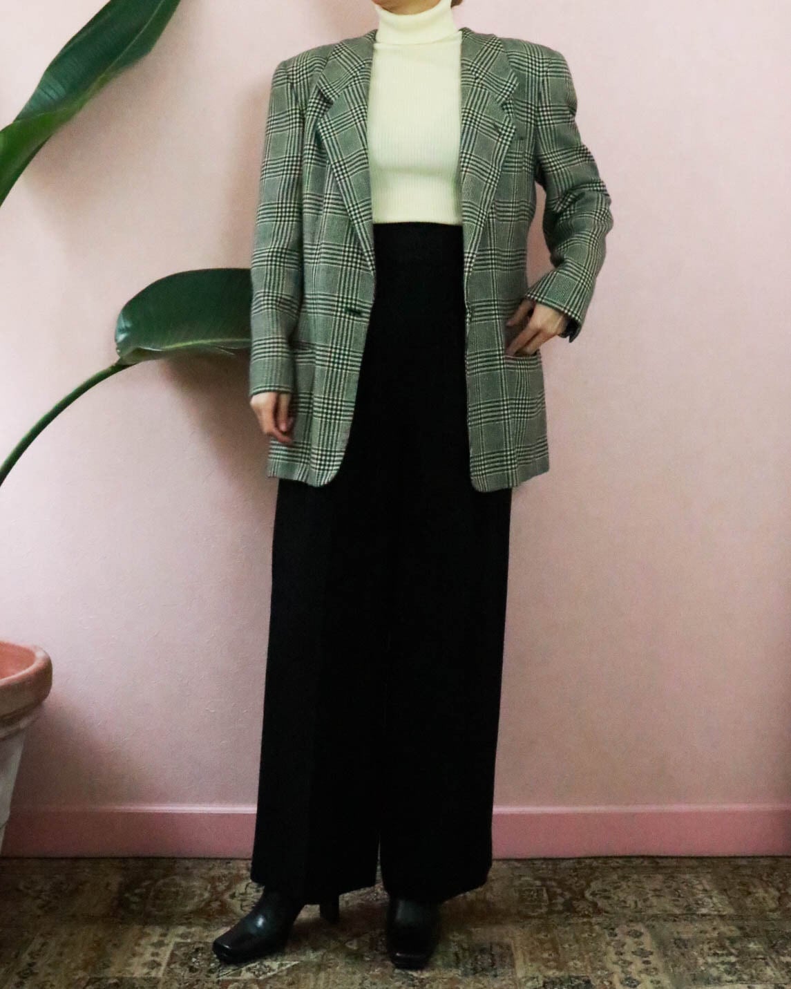 様々なチェックがミックスされていながら、シックにまとまる不思議。
