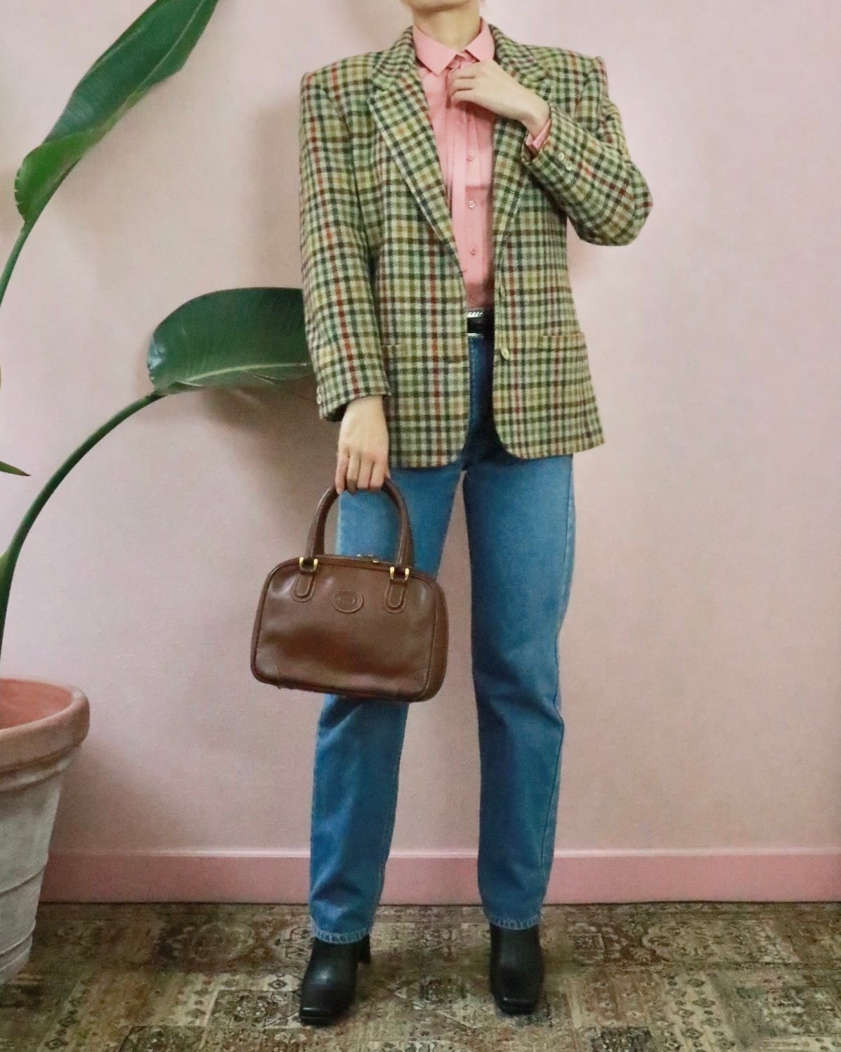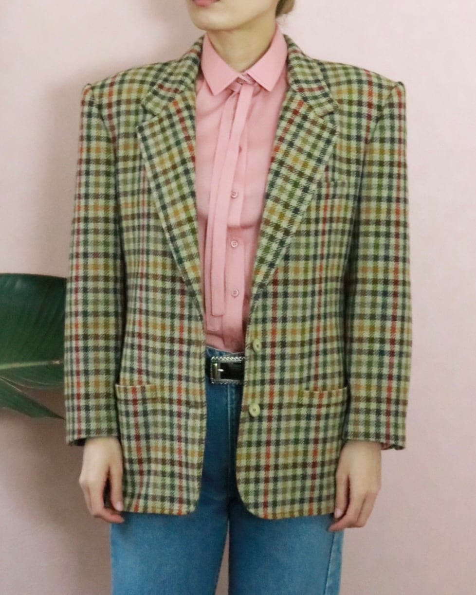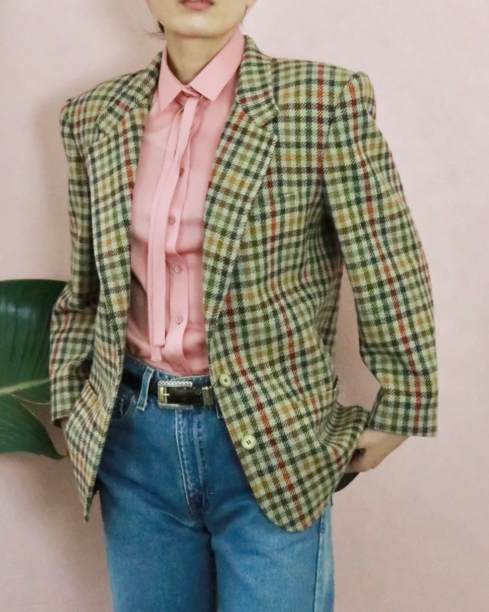 80s GUCCI block check jacket