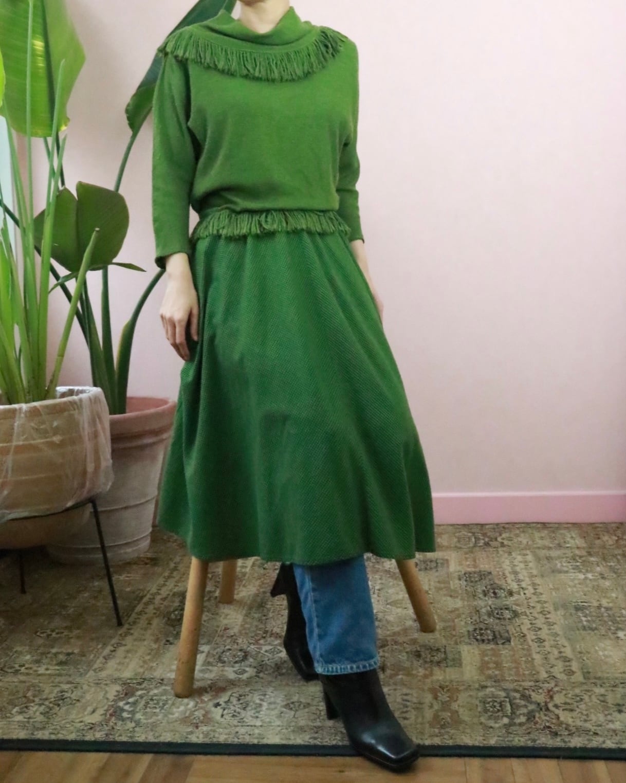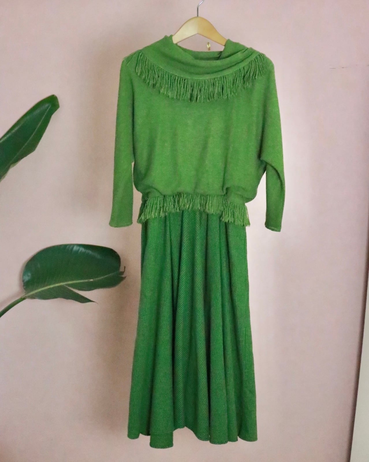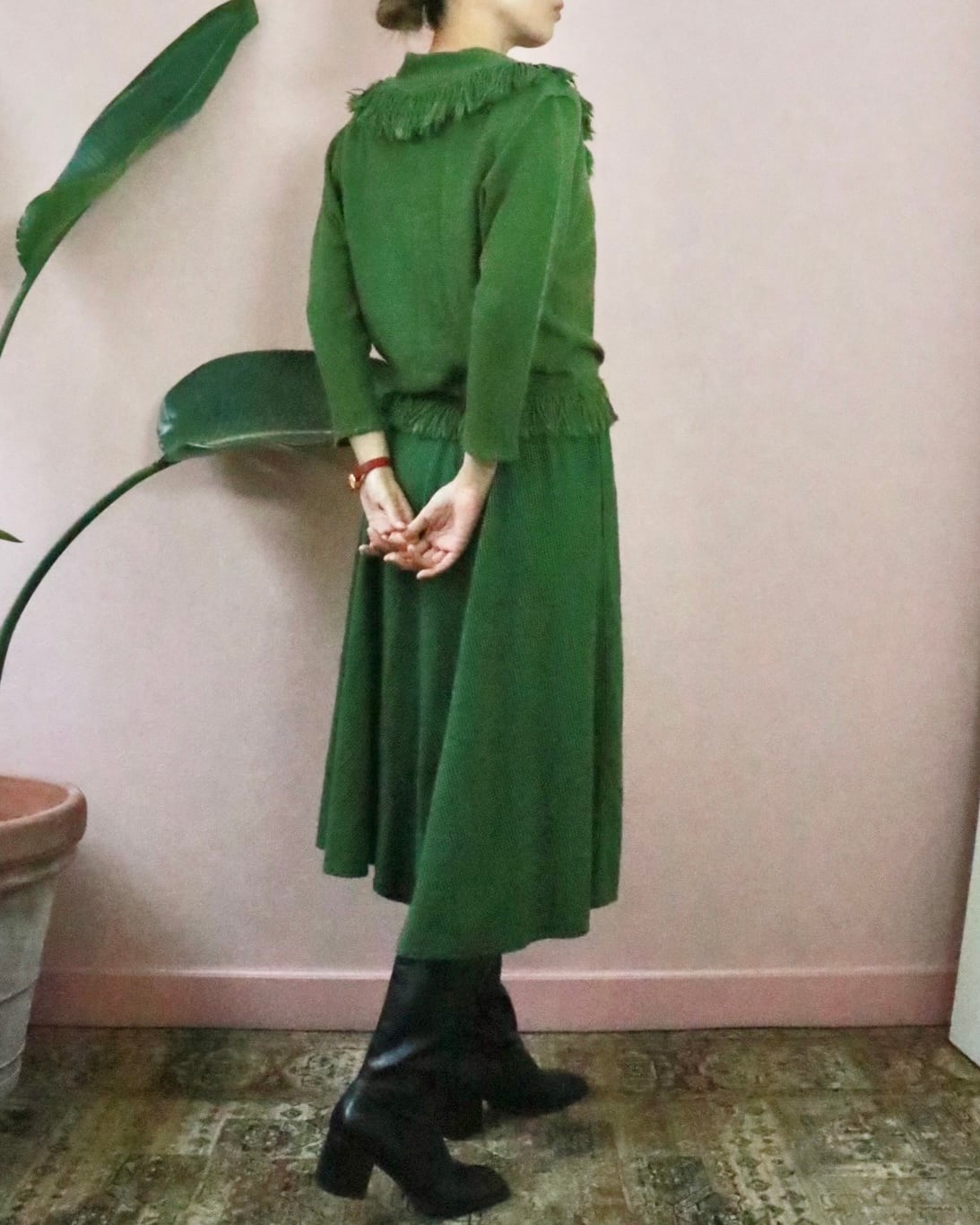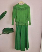 まるでレイヤードコーデをしてるいるかのように見える、異素材の組み合わせがユニークなヴィンテージドレス。
