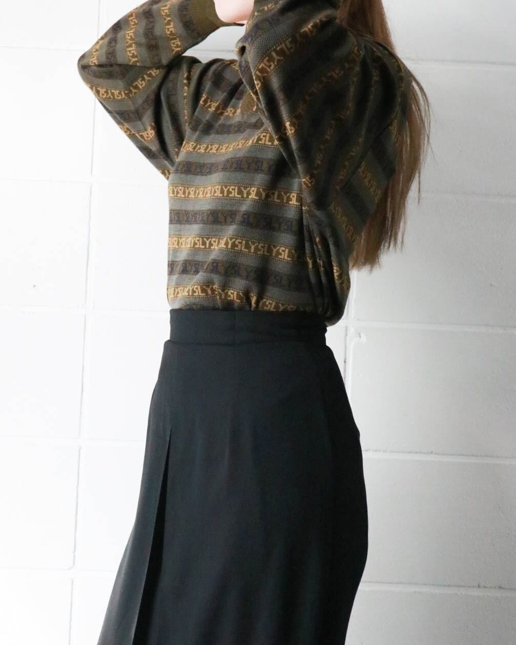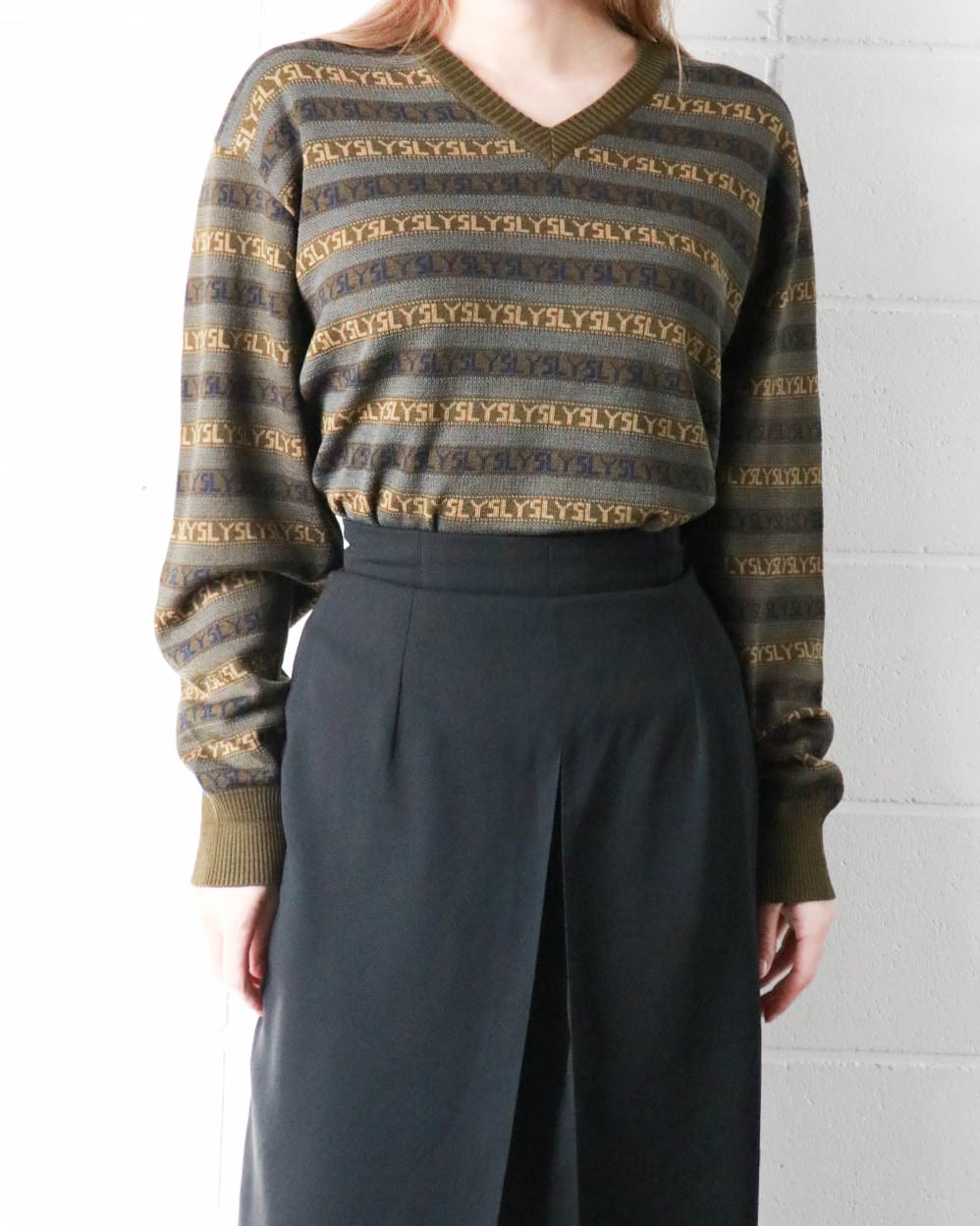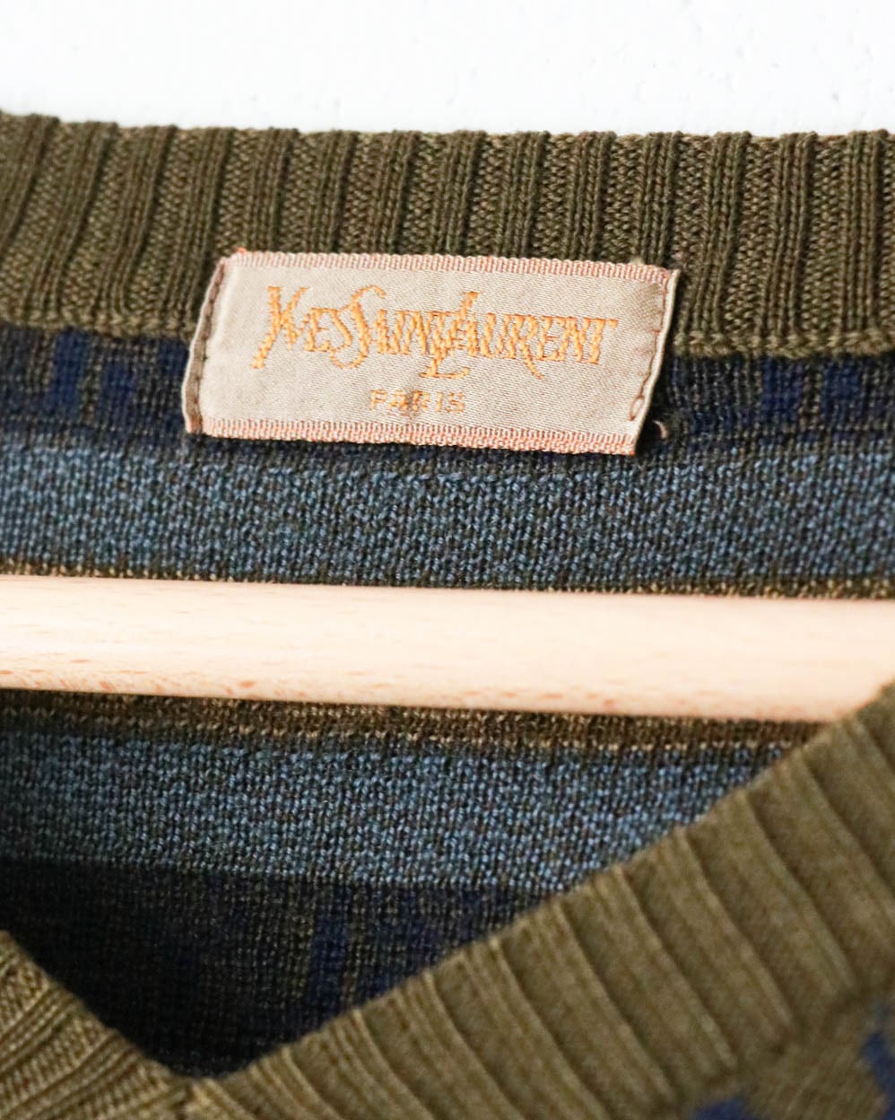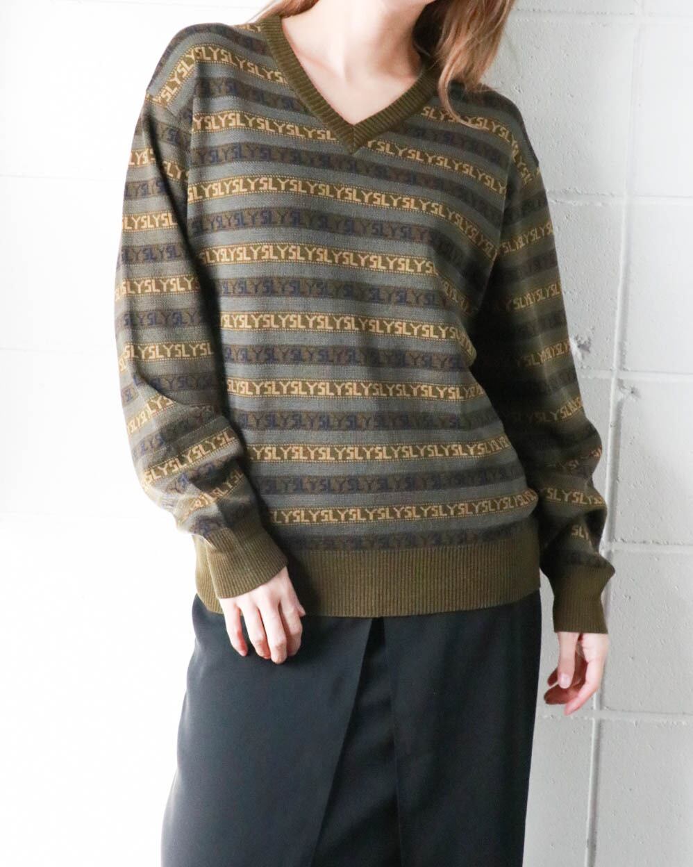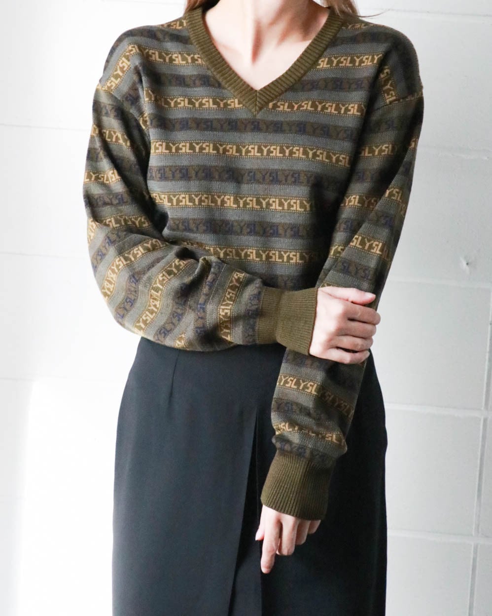 寒い季節に欲しいのはラフに着られるニット。ボーダーベースのYSLモノグラムデザインが特徴的なこちらのニットは、Yves Saint Laurentのヴィンテージ。ゆったりとしたサイズ感にVネックが全体をスッキリとまとめ大人の色香が漂います。モノグラムをいかして、シンプルなボトムに合わせるのがおすすめです。