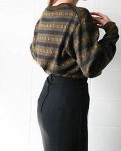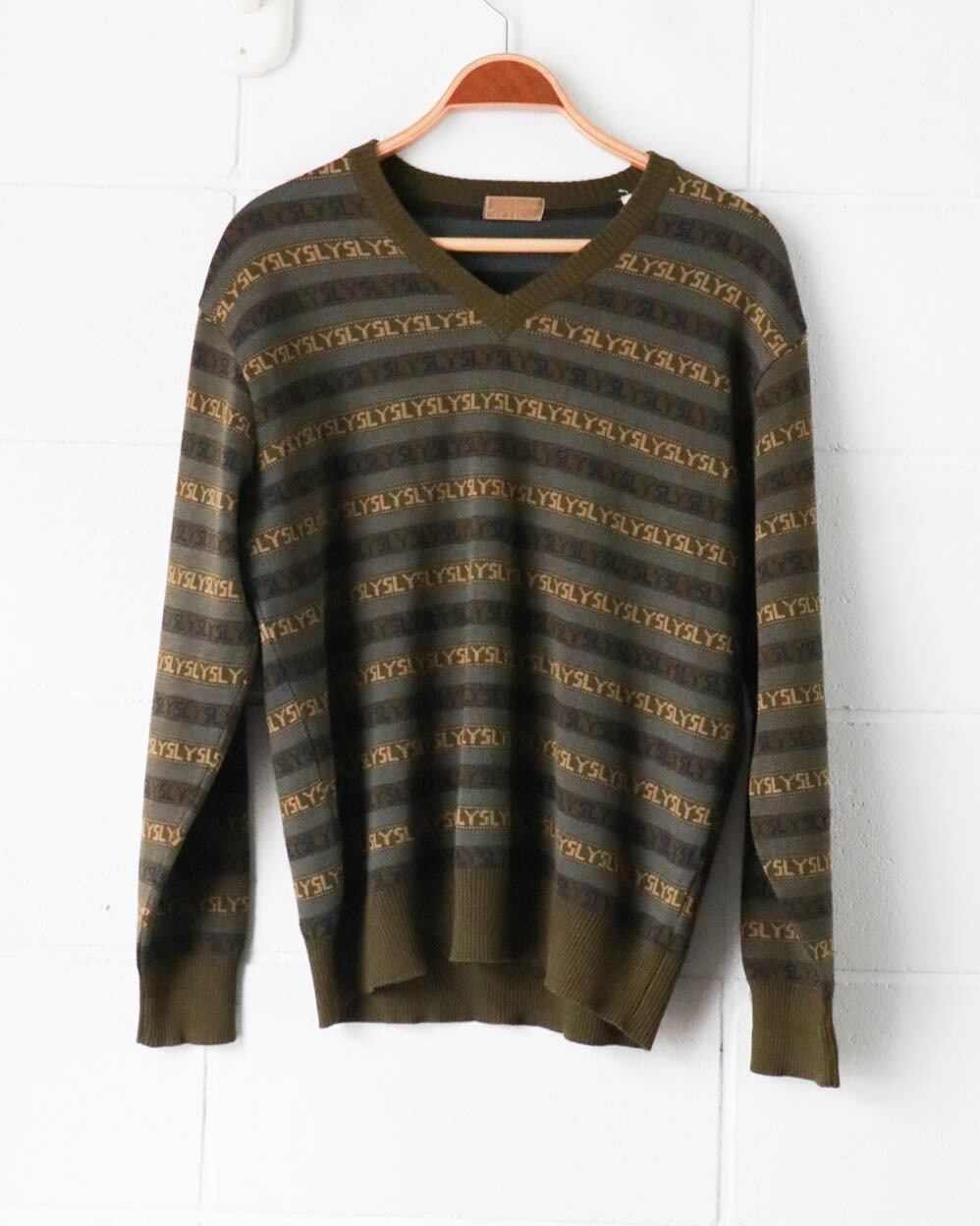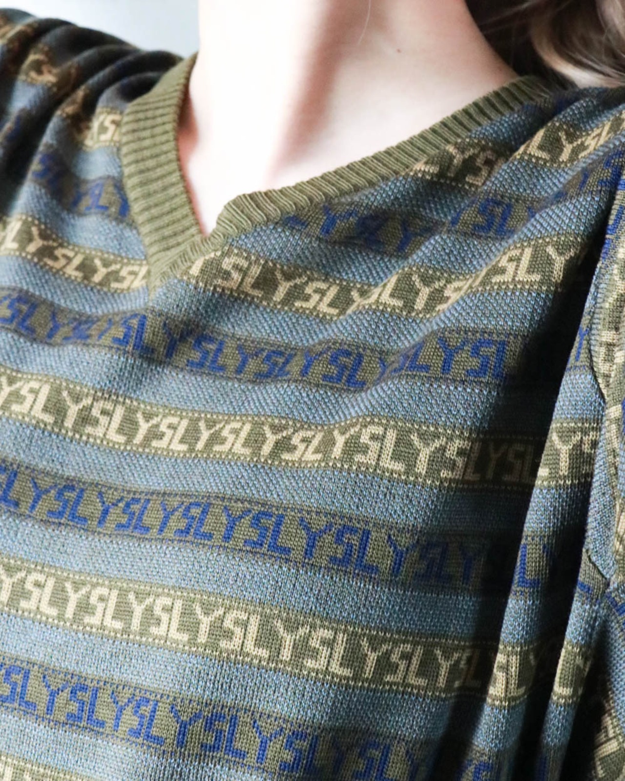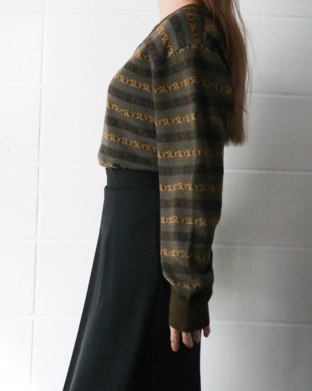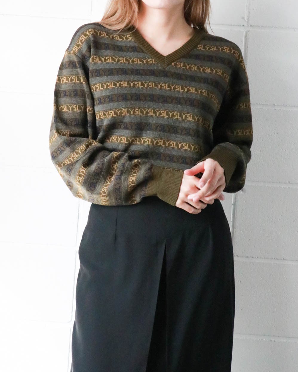 寒い季節に欲しいのはラフに着られるニット。ボーダーベースのYSLモノグラムデザインが特徴的なこちらのニットは、Yves Saint Laurentのヴィンテージ。ゆったりとしたサイズ感にVネックが全体をスッキリとまとめ大人の色香が漂います。モノグラムをいかして、シンプルなボトムに合わせるのがおすすめです。