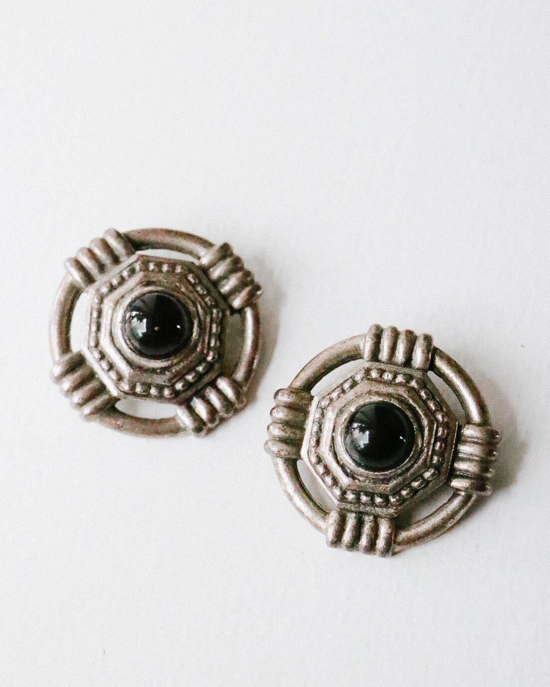 無骨で古代的なデザインに心踊るシルバーカラーのデッドストックイヤリング。ヴィンテージ調の加工が施してあり、顔まわりにクールな印象をプラスしてくれる