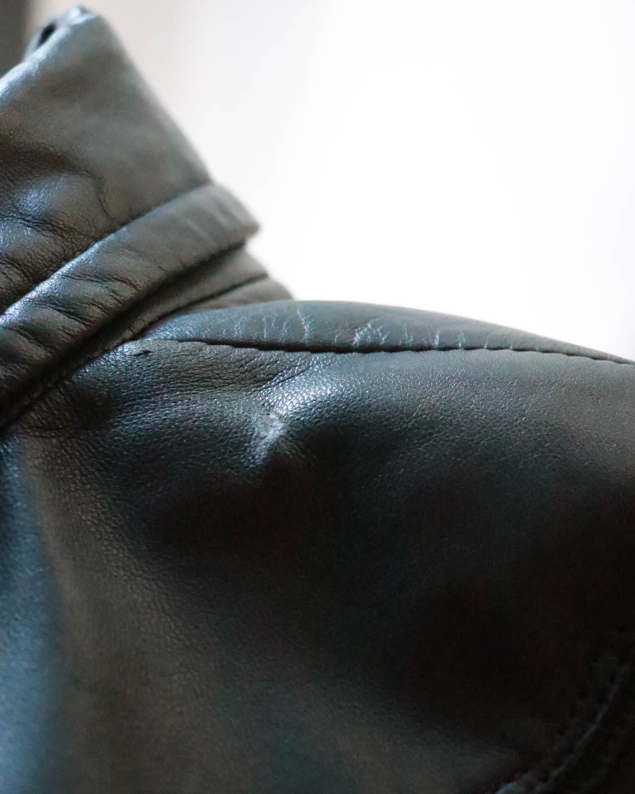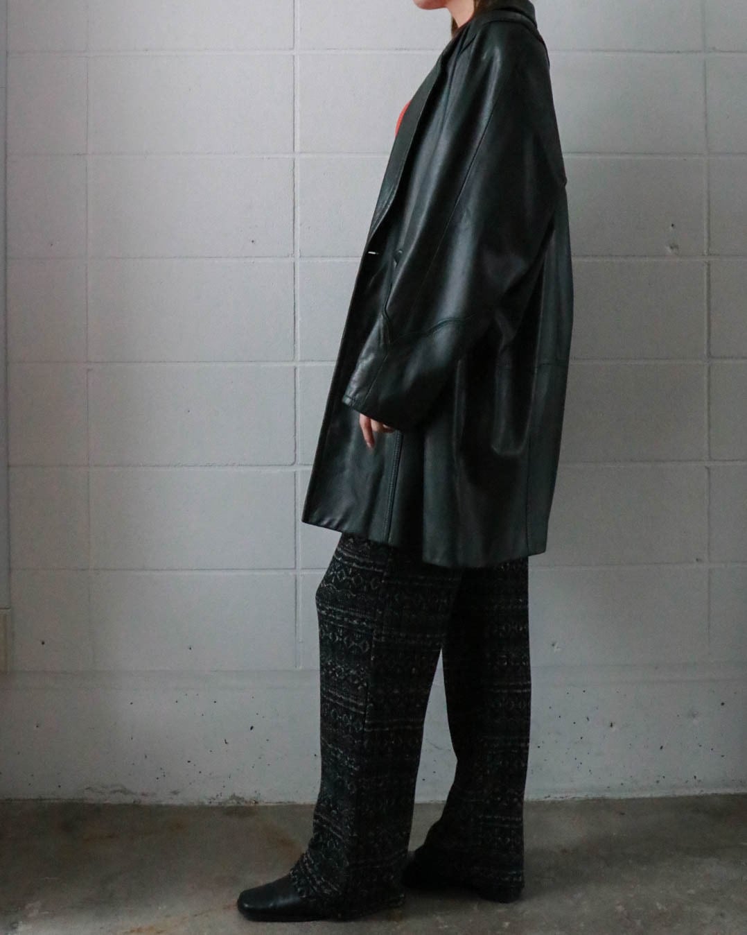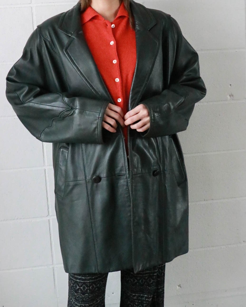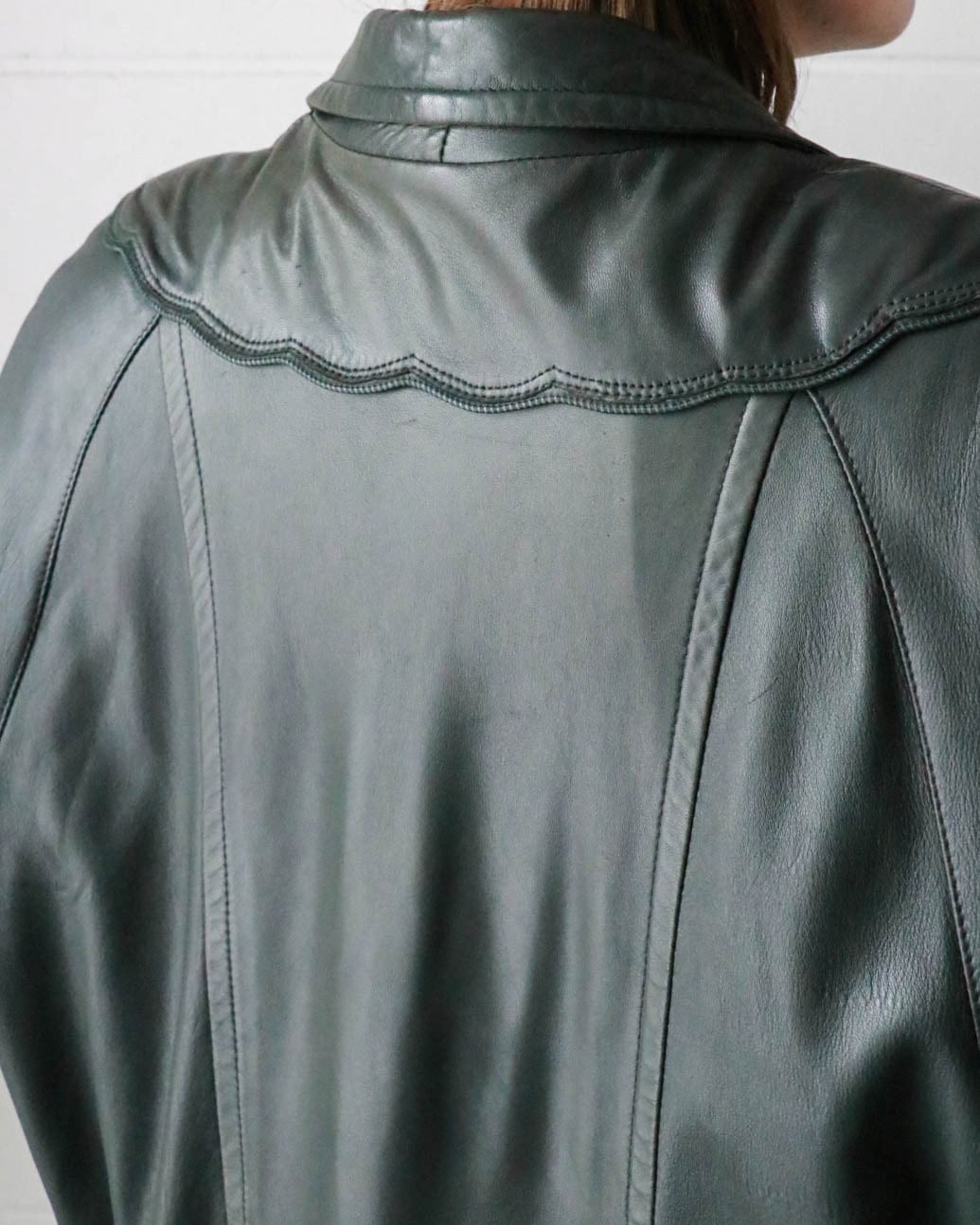 ダークグリーンのレザーコートはピエールバルマンのヴィンテージ。ゆったりとしたボディーがが洗練されたデザインで、どんなスタイルにもエッジをプラスしてくれます。肌寒い季節大活躍するアウター、お早めにどうぞ。