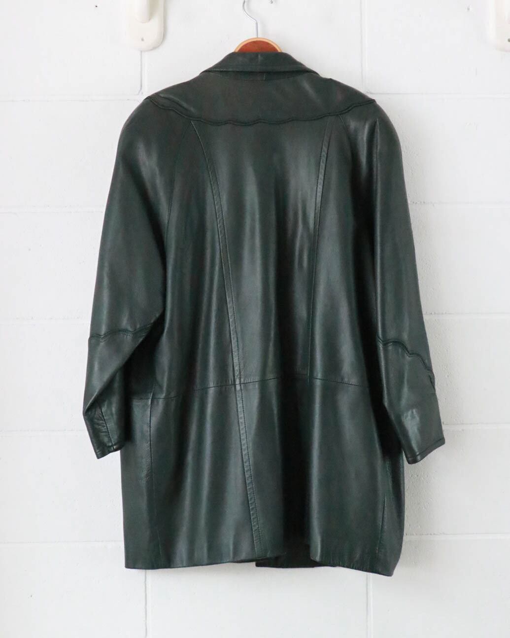 PIERRE BALMAIN dark green leather coat