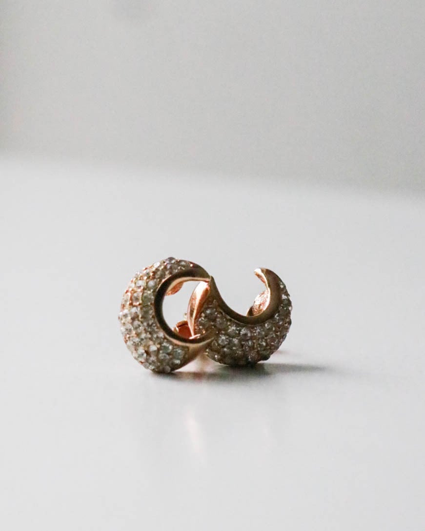 丸みのある立体的なデザイン。ラインストーンが敷き詰められ華やかな印象をもたらします。