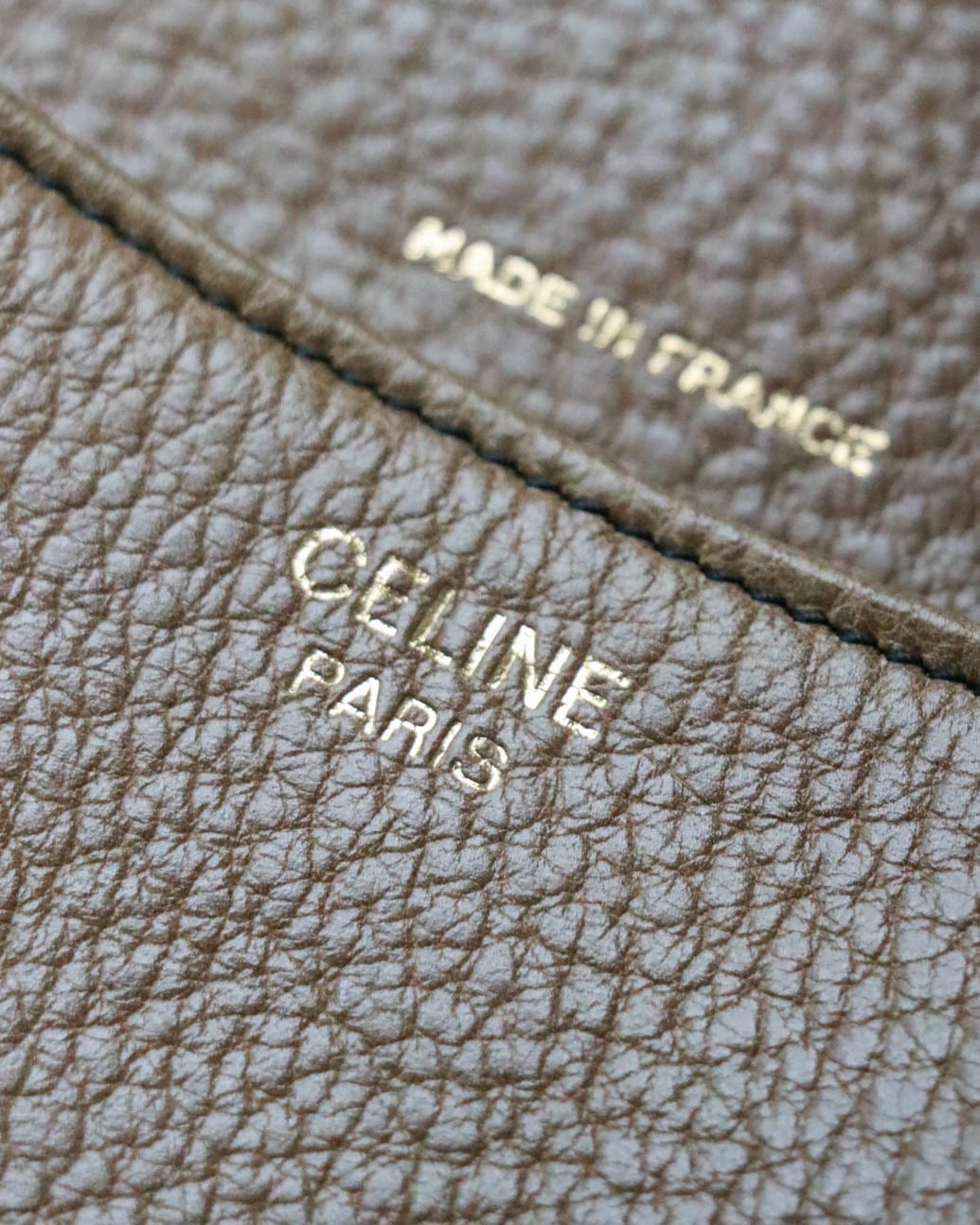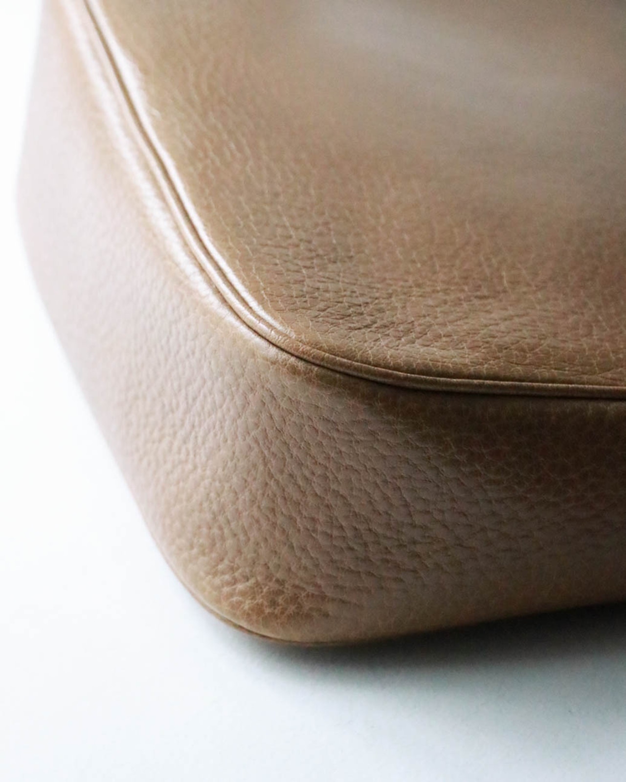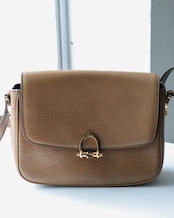 型押しレザーの箱型でマチがしっかりあり収納に優れています。