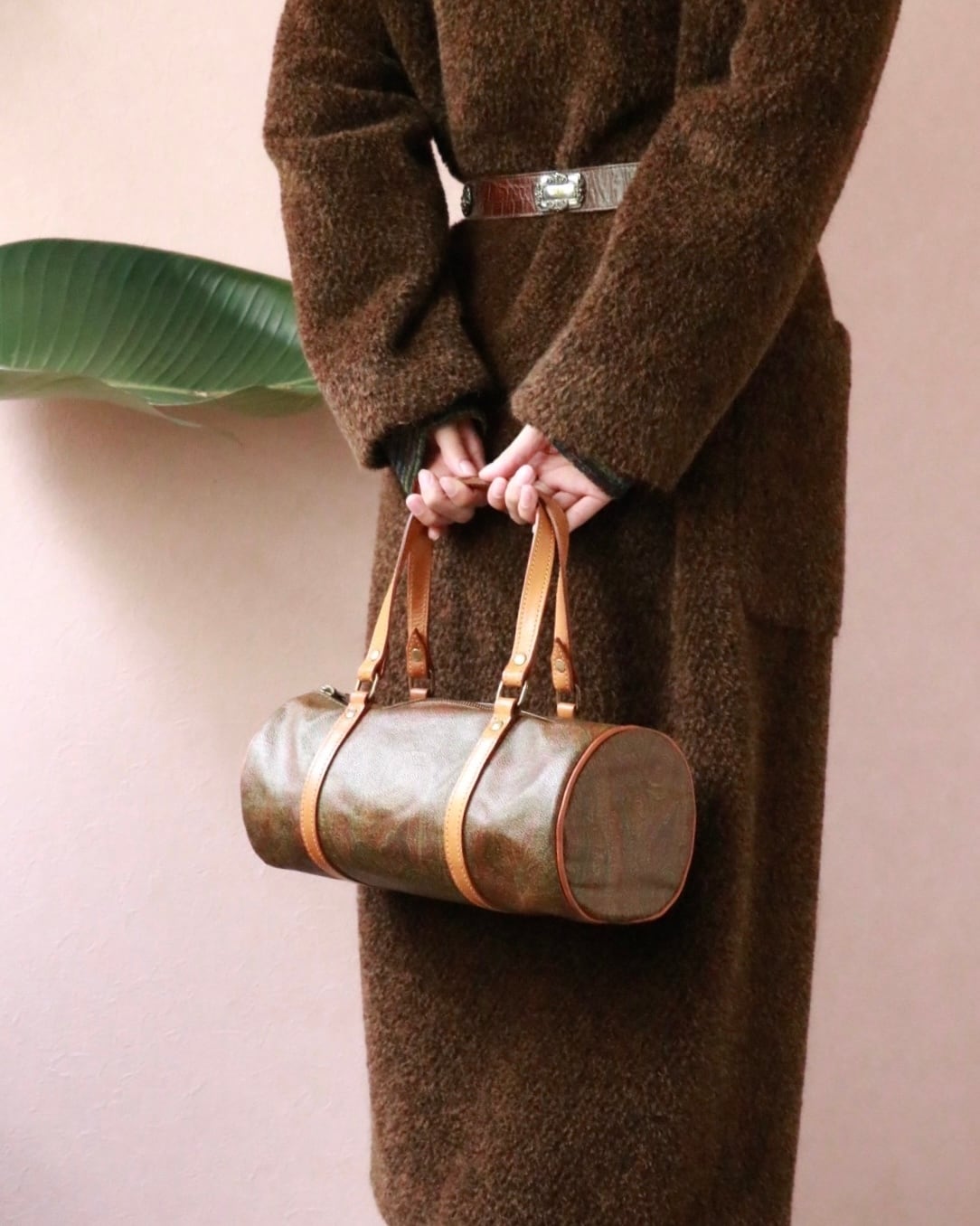 単色バッグも良いけれど、柄バッグはアクセントとして持つとコーディネートが映えます。