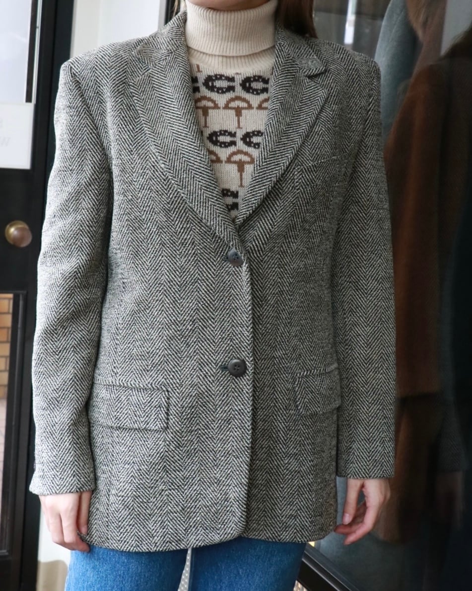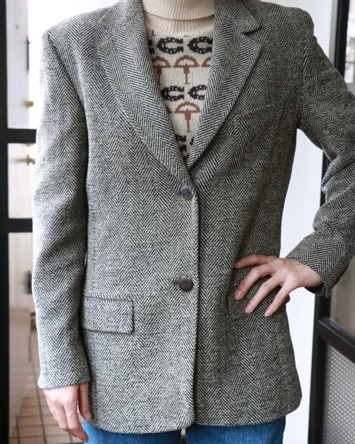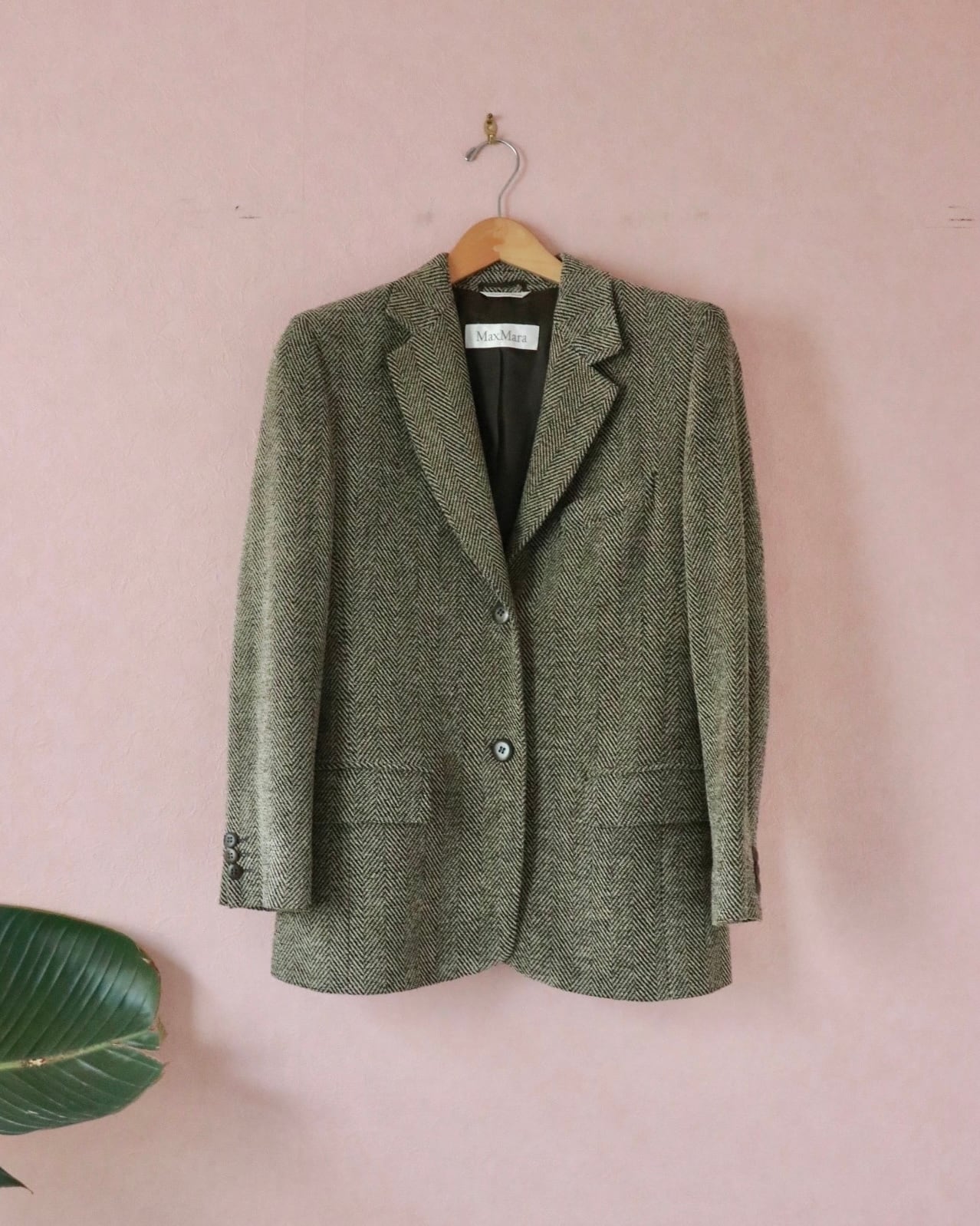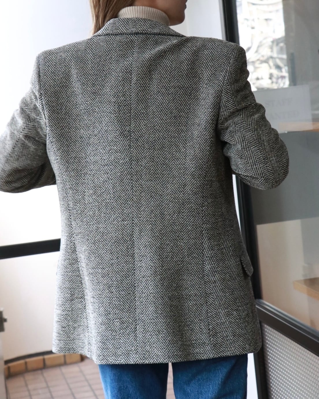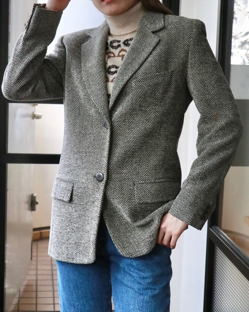 クラシックなヘリンボーン柄が印象的なMaxMaraのテーラードジャケット。美しいウエストラインと程よく構築的なシルエットが羽織るだけで凛とした女性らしさを引き立てます。上質な素材感と丁寧な仕立てはさすがMaxMaraならではの1着です。流行に左右されず長くワードローブに寄り添ってくれるタイムレスなジャケットです。