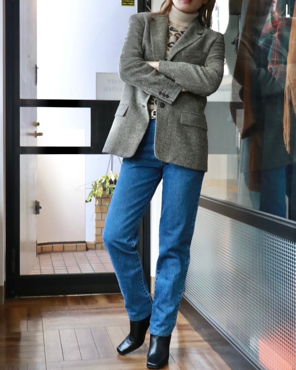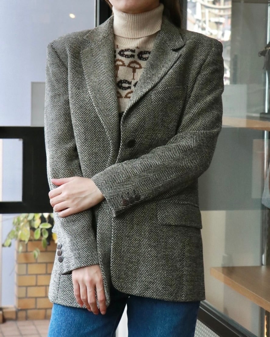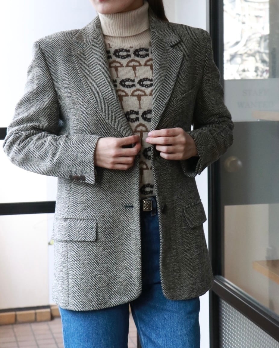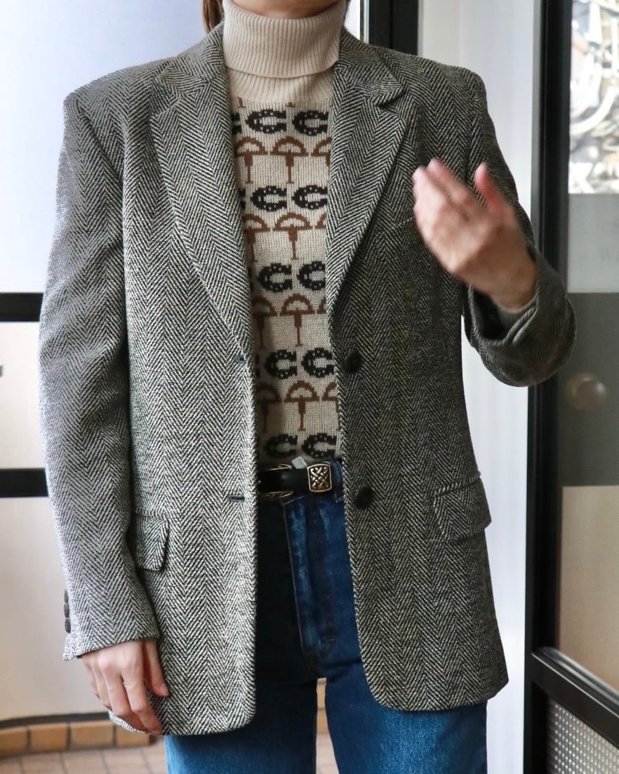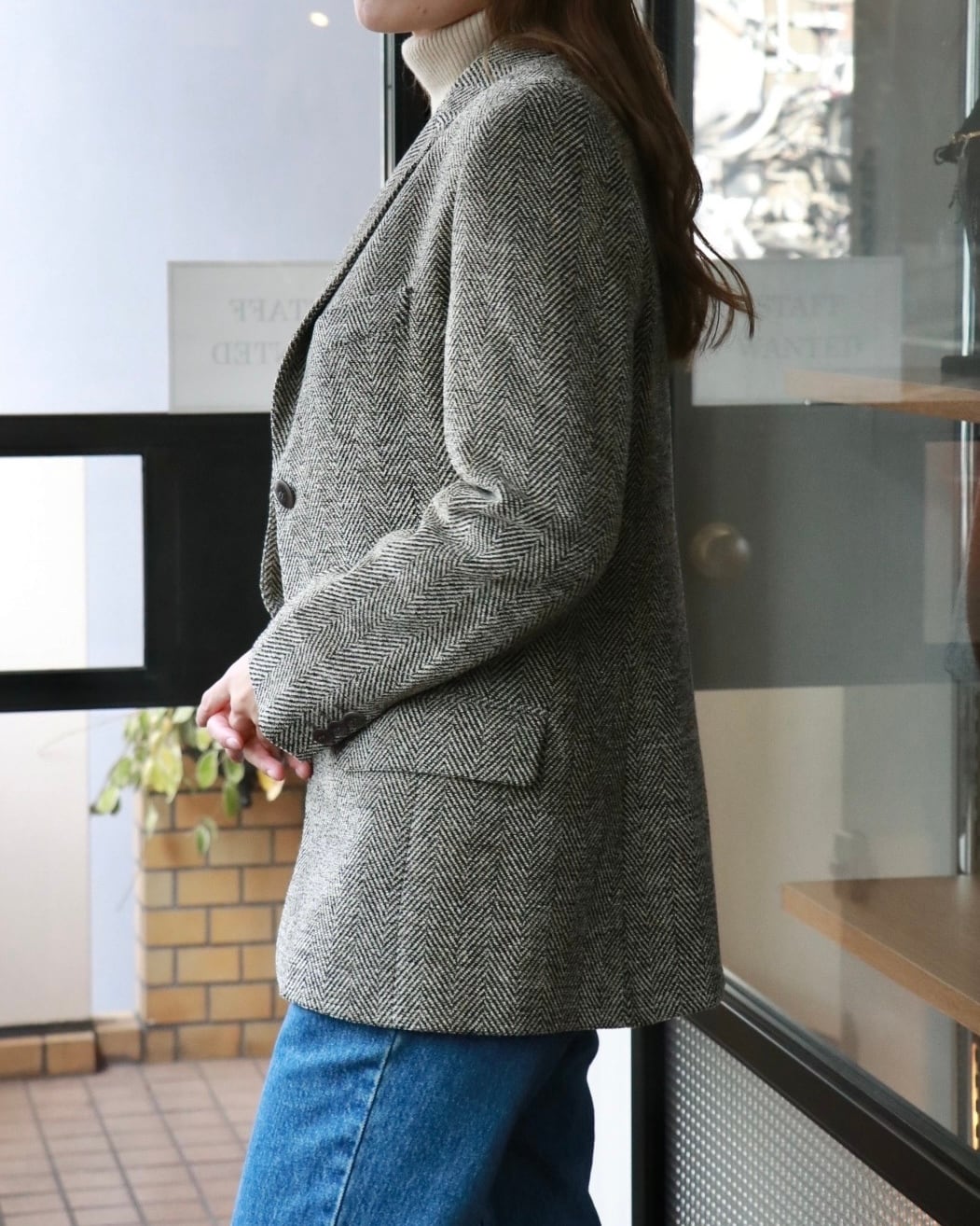 クラシックなヘリンボーン柄が印象的なMaxMaraのテーラードジャケット。美しいウエストラインと程よく構築的なシルエットが羽織るだけで凛とした女性らしさを引き立てます。上質な素材感と丁寧な仕立てはさすがMaxMaraならではの1着です。流行に左右されず長くワードローブに寄り添ってくれるタイムレスなジャケットです。