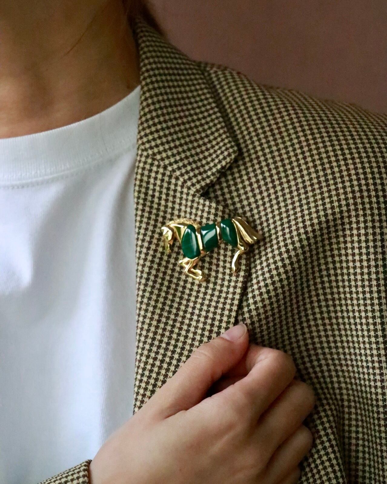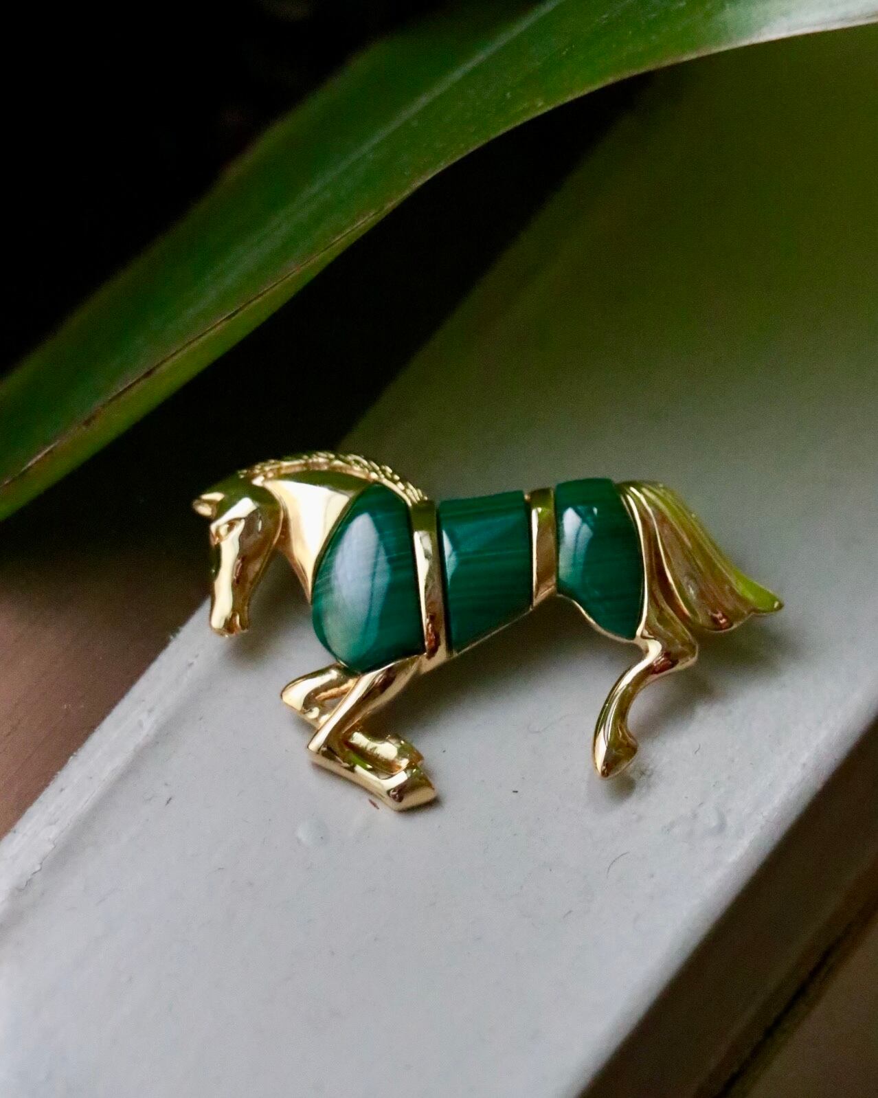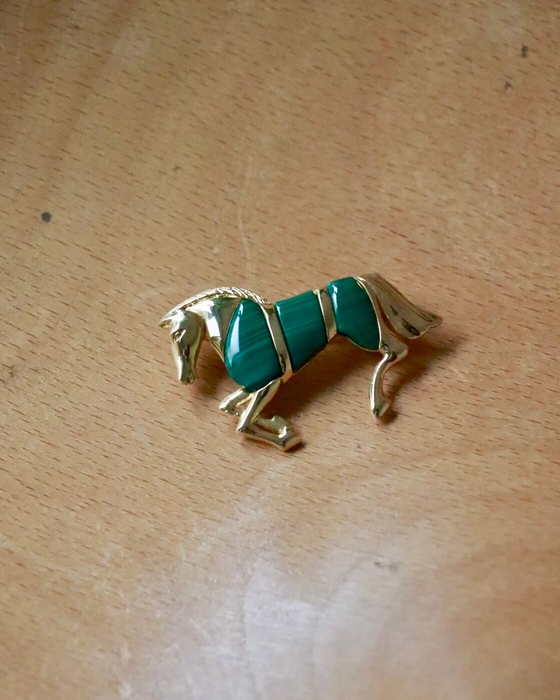 horse motif malachite brooch