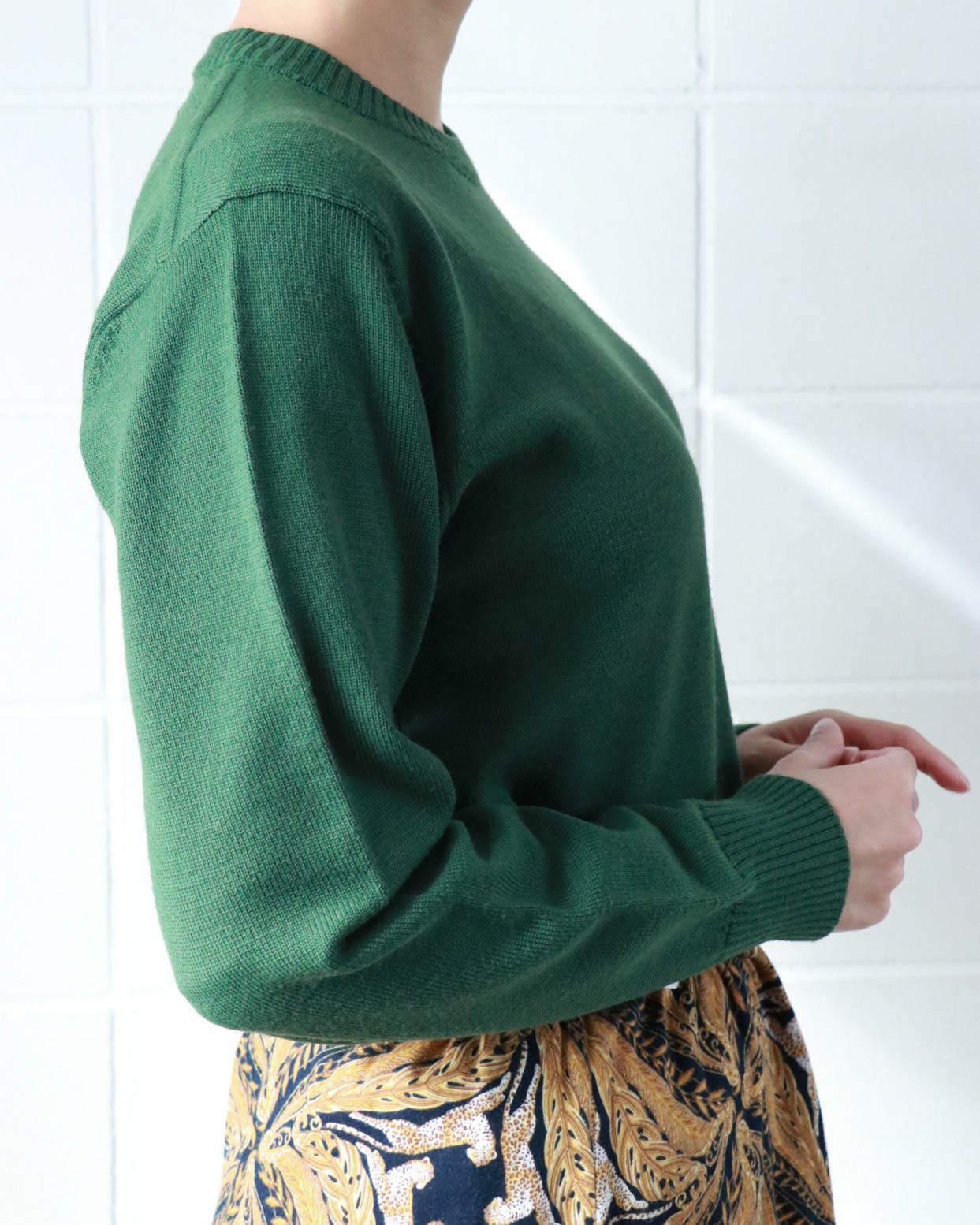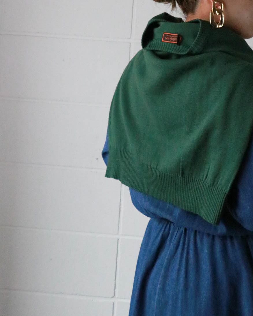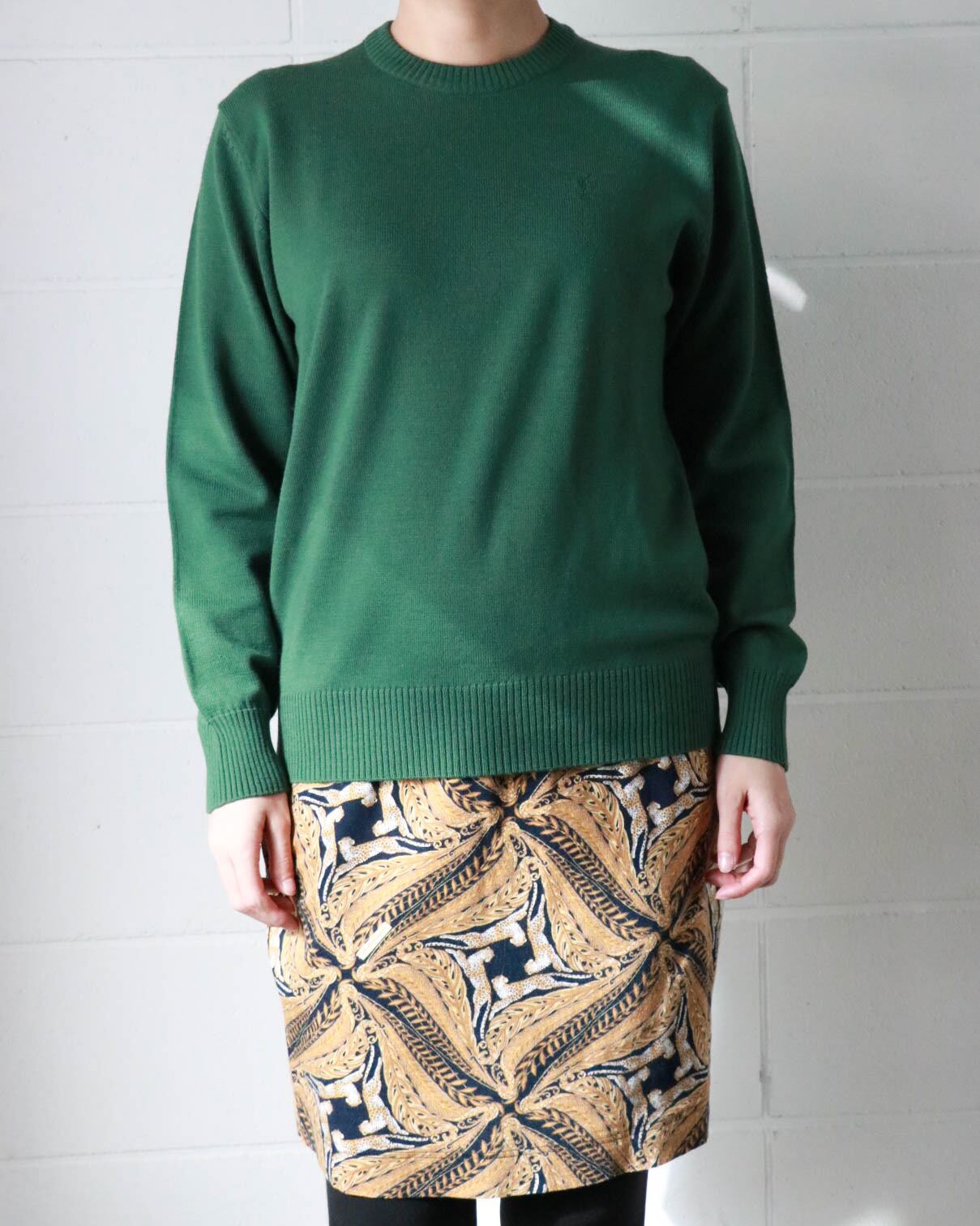 肌寒い季節に欲しいのはラフに着られるニット。こちらはグリーンベースにYSLロゴ刺繍がポイントのヴィンテージアイテム。ゆったりとしたサイズ感にモックネックが全体をスッキリとまとめ大人の色香が漂います。シンプルなボトムスに合わせるのがおすすめです。