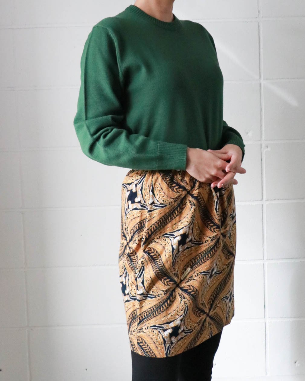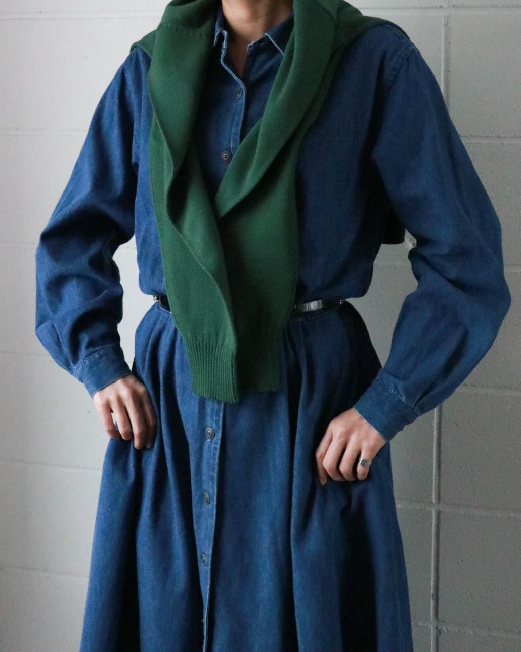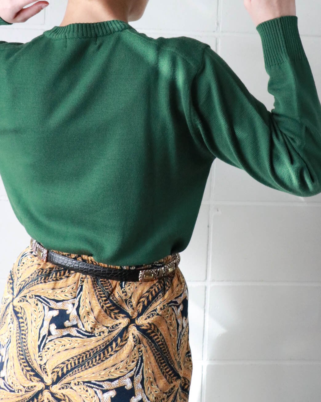肌寒い季節に欲しいのはラフに着られるニット。こちらはグリーンベースにYSLロゴ刺繍がポイントのヴィンテージアイテム。ゆったりとしたサイズ感にモックネックが全体をスッキリとまとめ大人の色香が漂います。シンプルなボトムスに合わせるのがおすすめです。