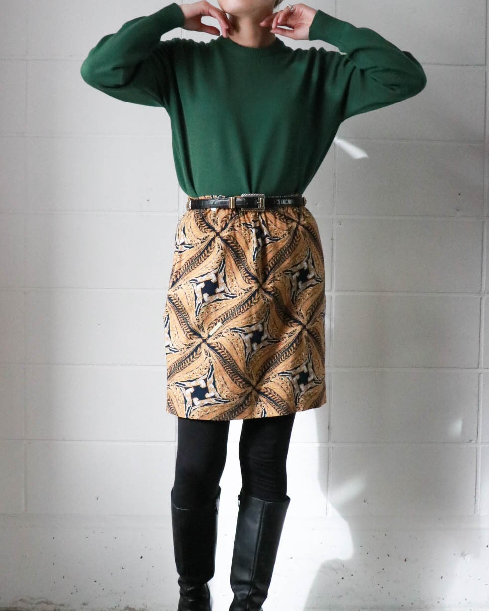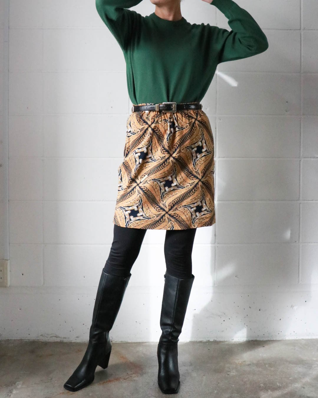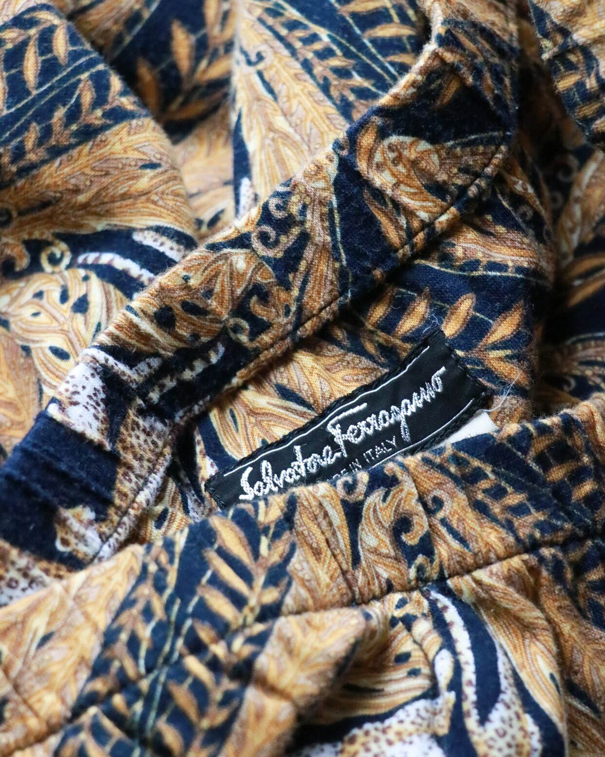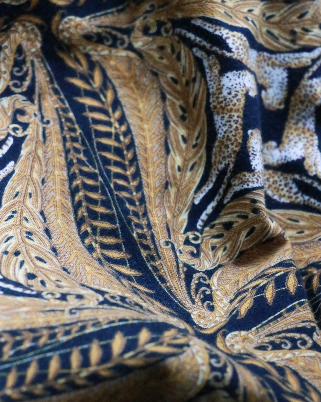 黒×ゴールドのコンビネーションでシンボリックな虎モチーフのプリントに目を奪われるスカートはフェラガモ。ボトムスに柄物を選ぶだけでぐっと春夏ムードになります。白Tや白シャツをさらっと合わせたコーディネートもおすすめです。