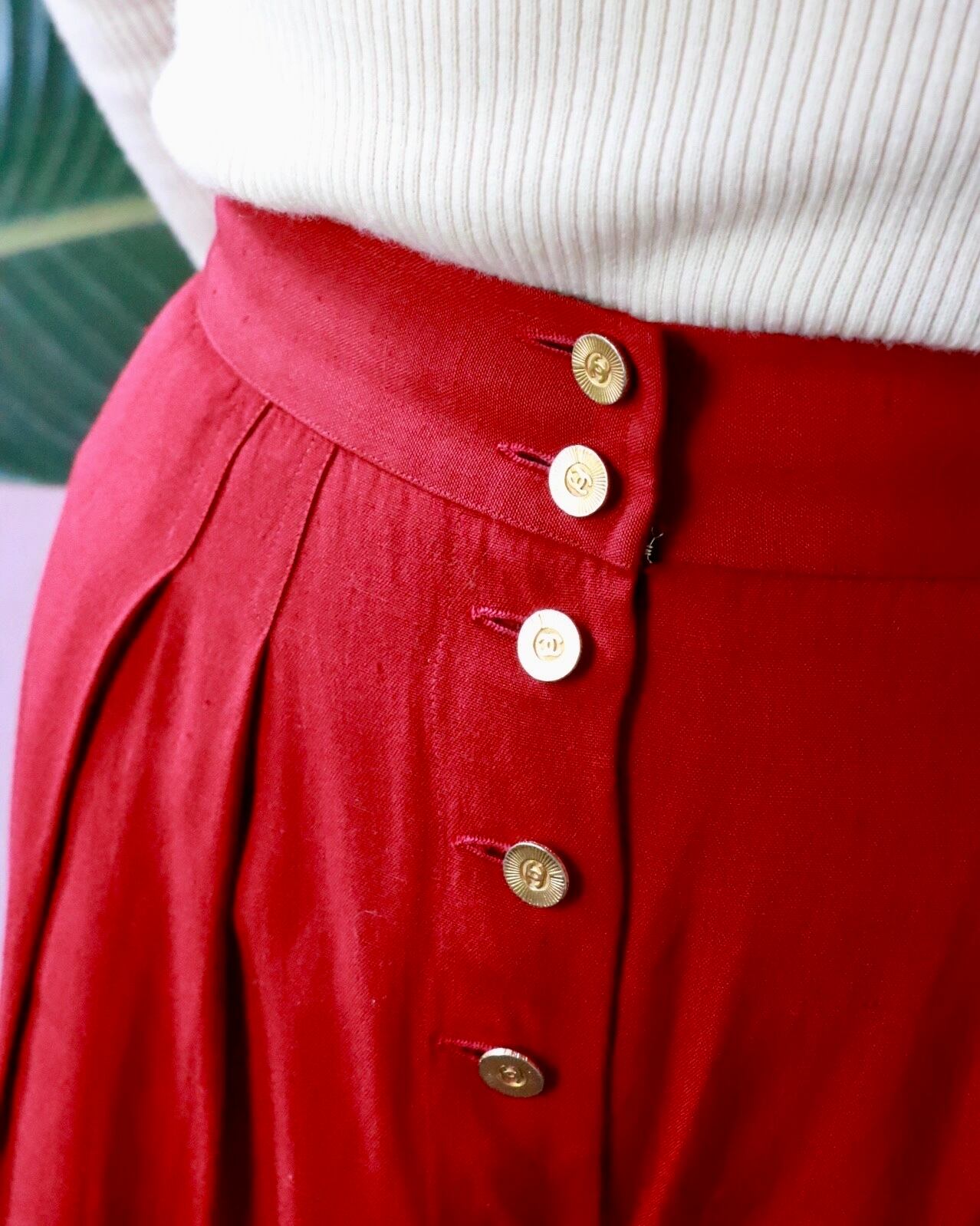 CHANEL red silk pants