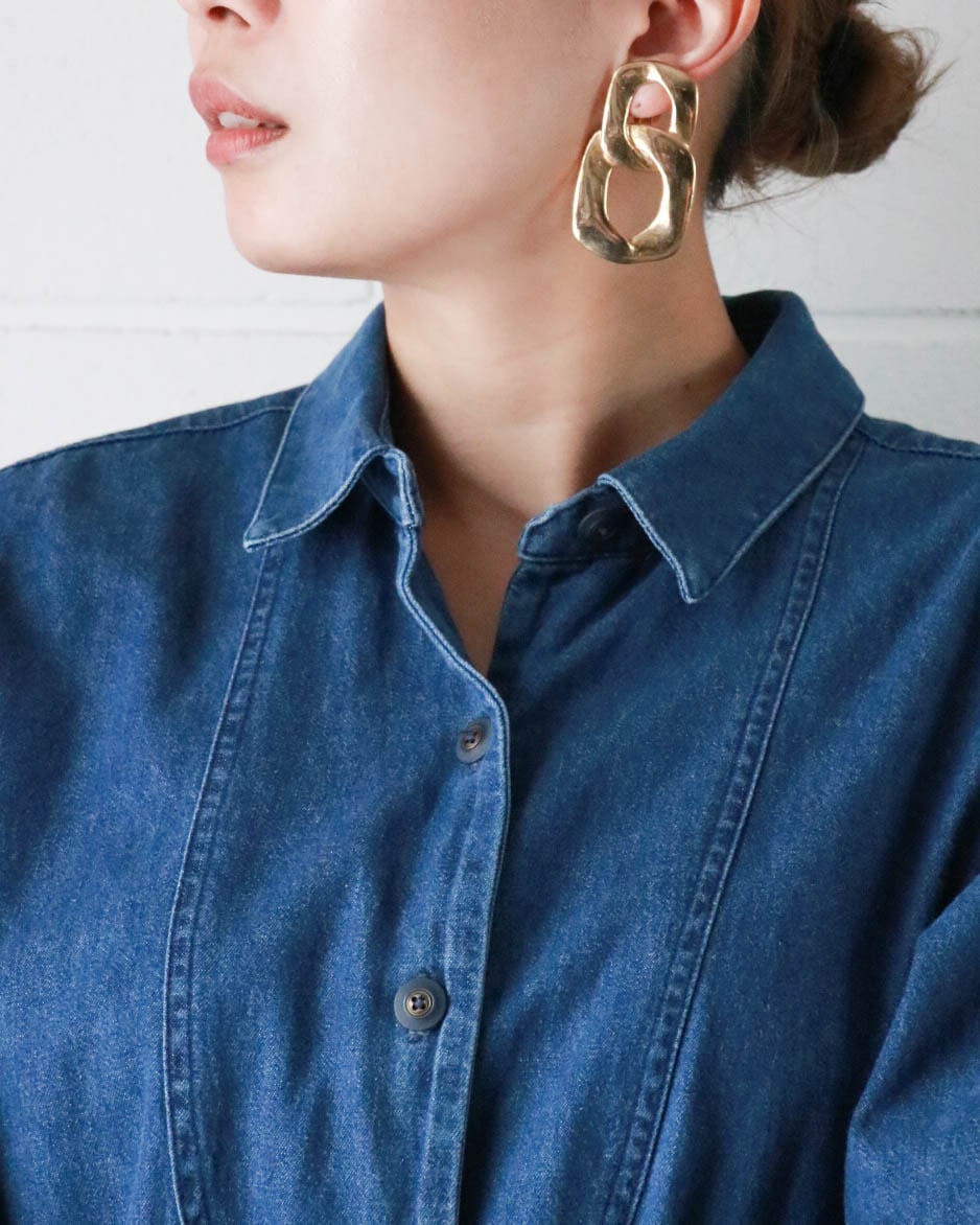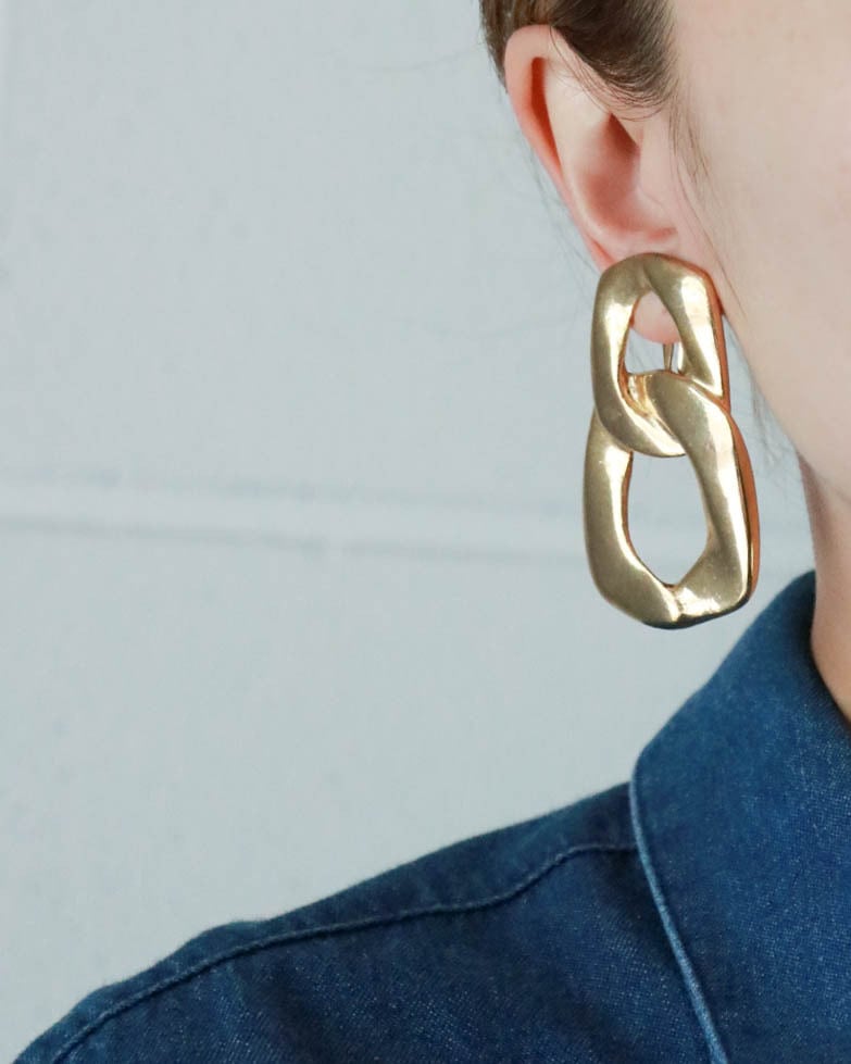 ゴールドのコンシャスなチェーン型。顔まわりを華やかに引き立てます。